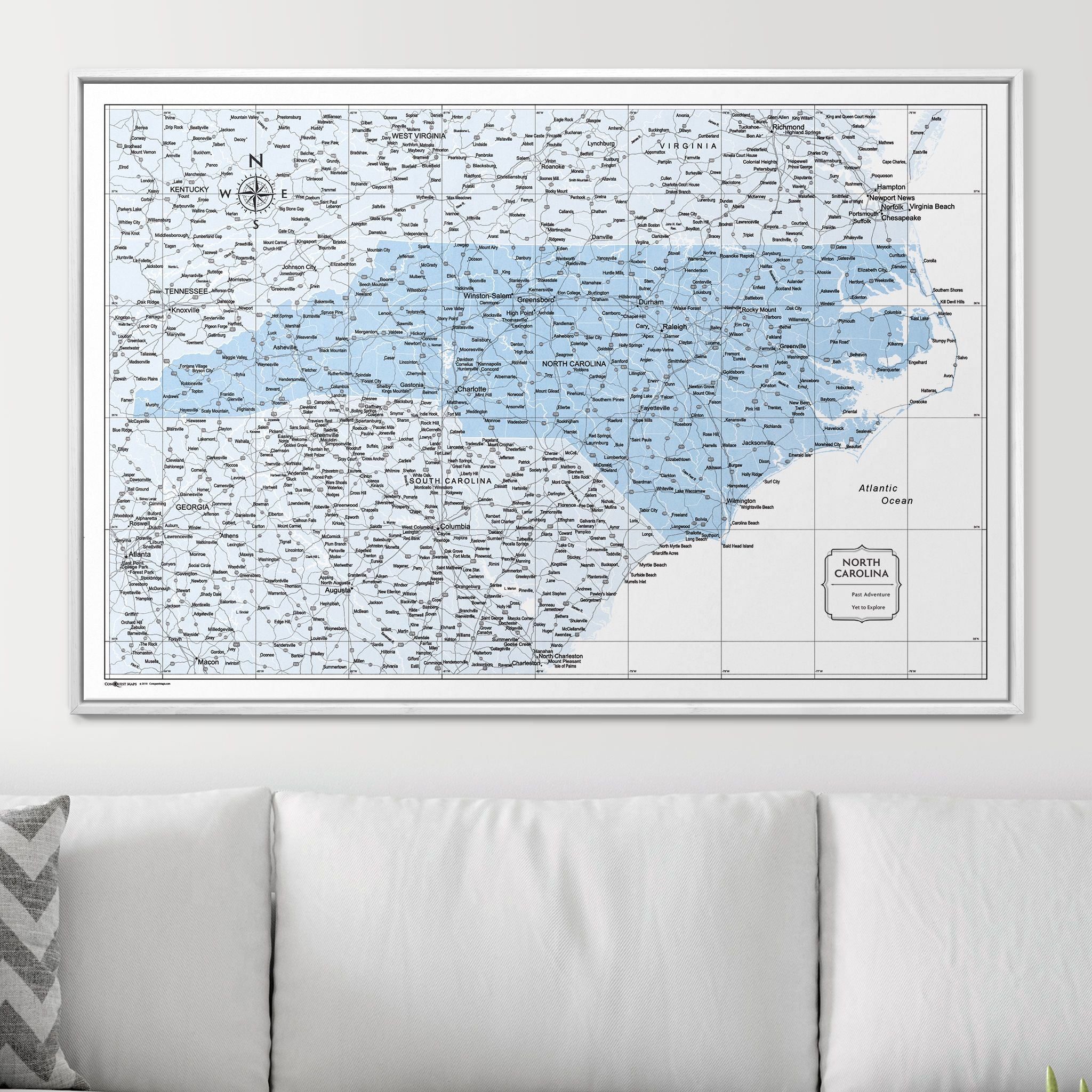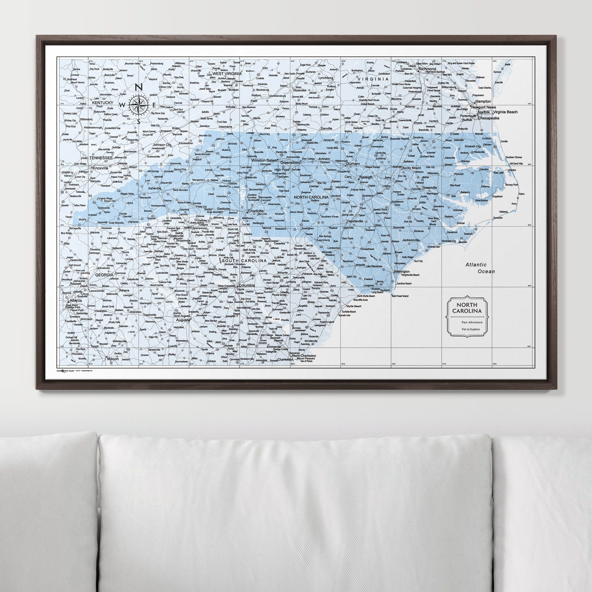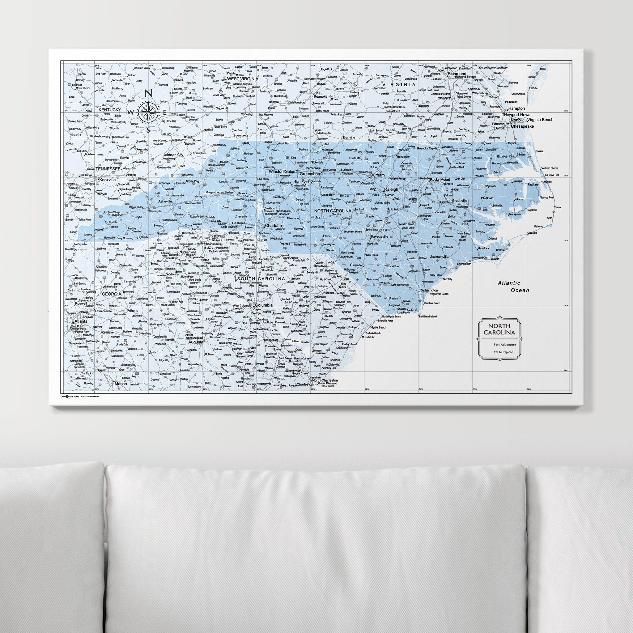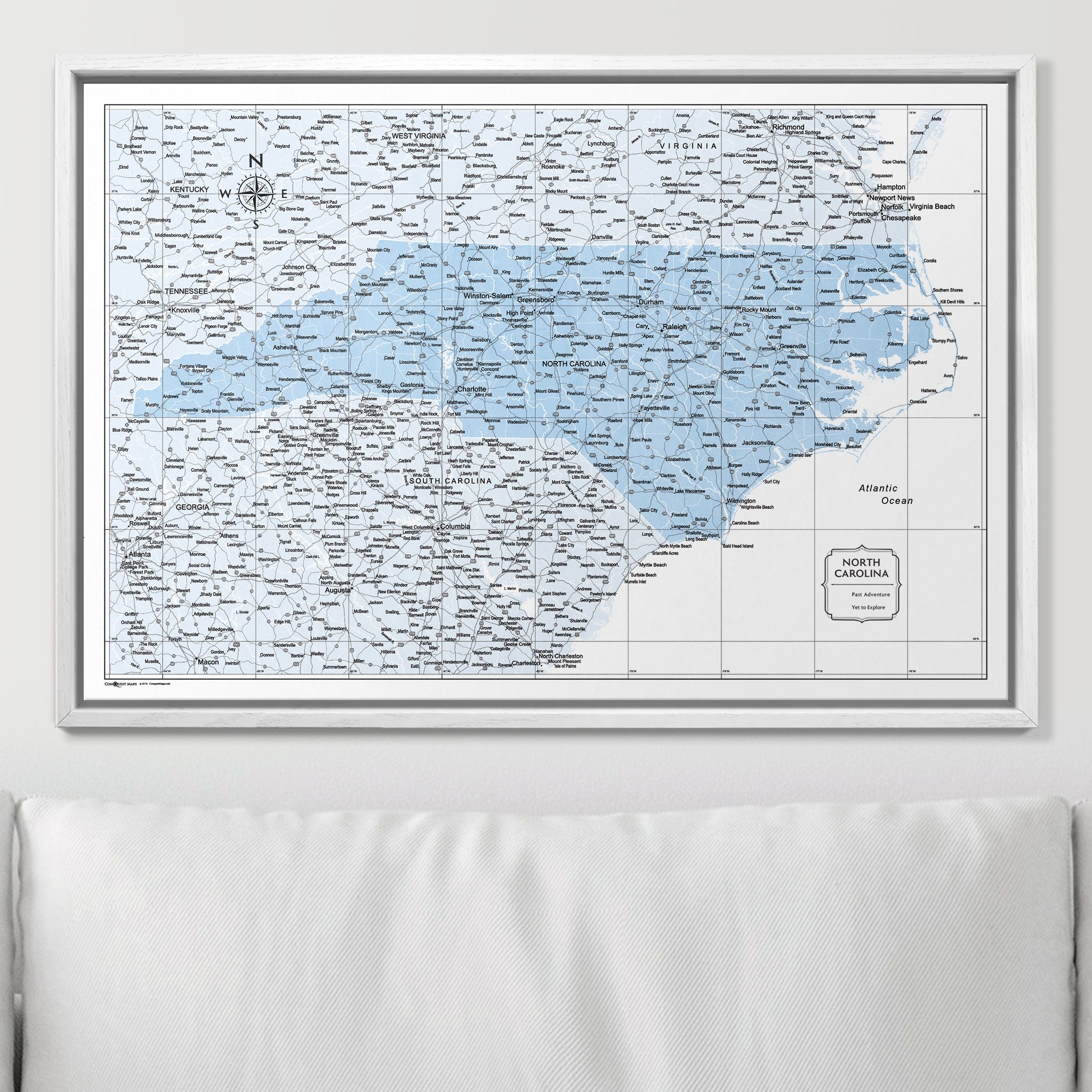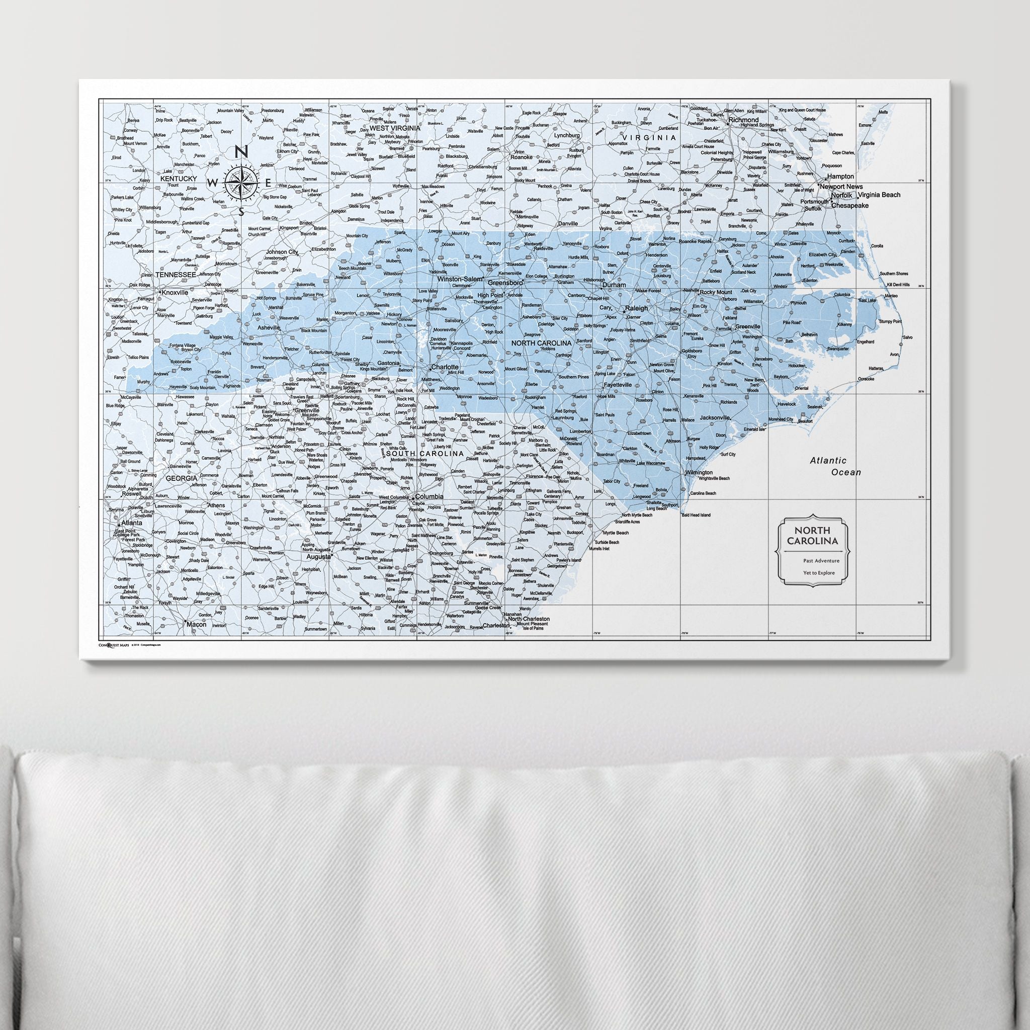 Push Pin North Carolina Map (Pin Board) - Light Blue Color Splash