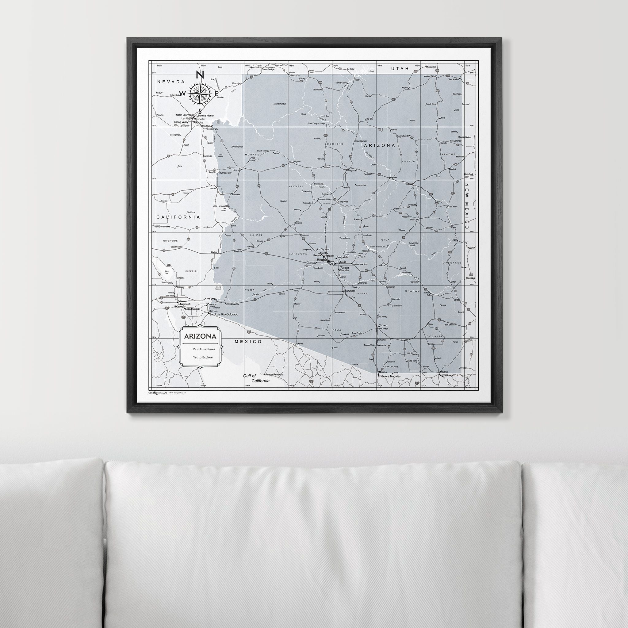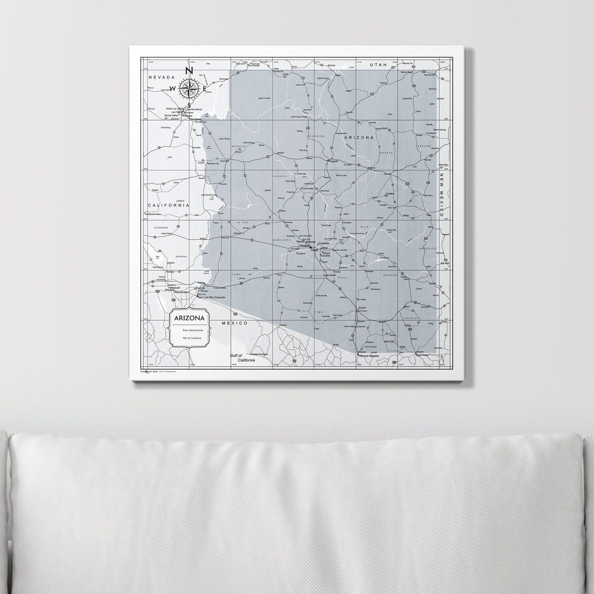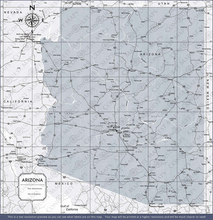 Push Pin Arizona Map (Pin Board) - Light Gray Color Splash