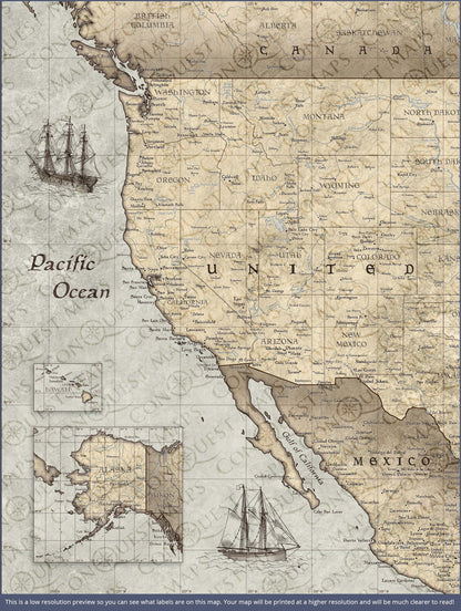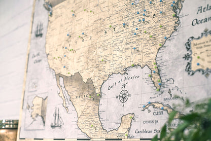 Follow the winding roads of America on our Vintage USA Map with pins! Bring a vintage character to your home while displaying a piece of art that can be personalized and made totally unique to you and your travels. Also available as a poster, this map of the United States will help you track your road trips across the country or pin each state as you visit it.