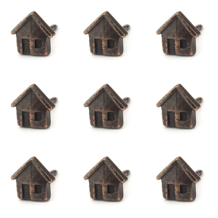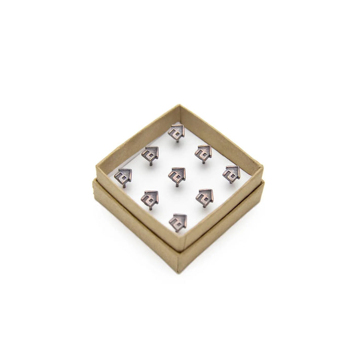 Each pin measures approximately 9/16" long and the home itself is roughly 3/8" tall and wide.