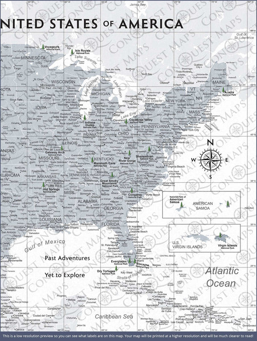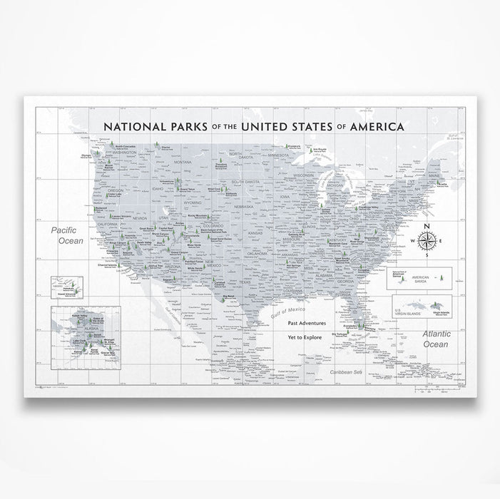 The Light Gray National Parks USA Map is the perfect companion for planning and tracking your trips around the USA and through the incredible parks that await you!