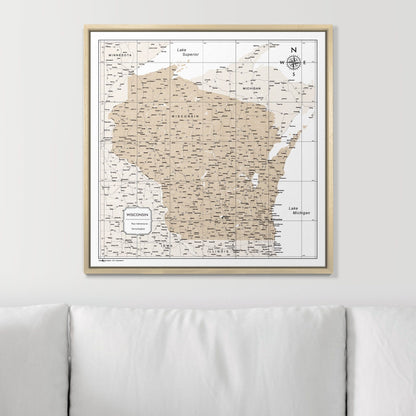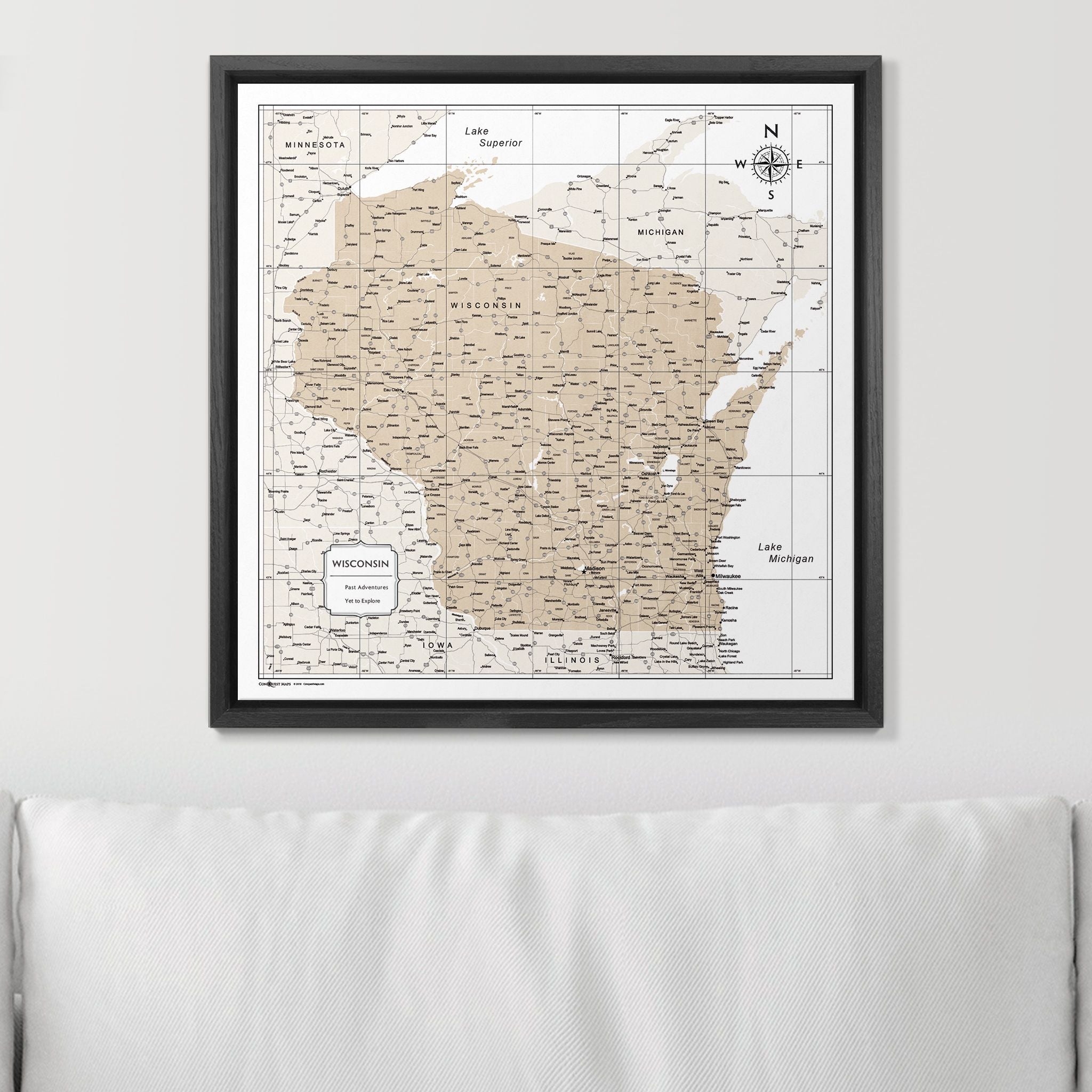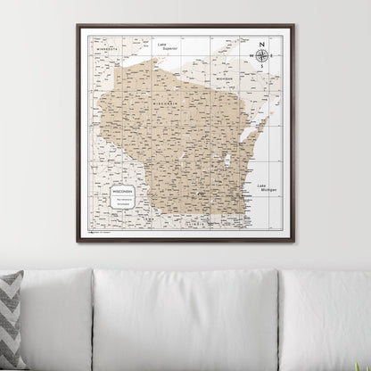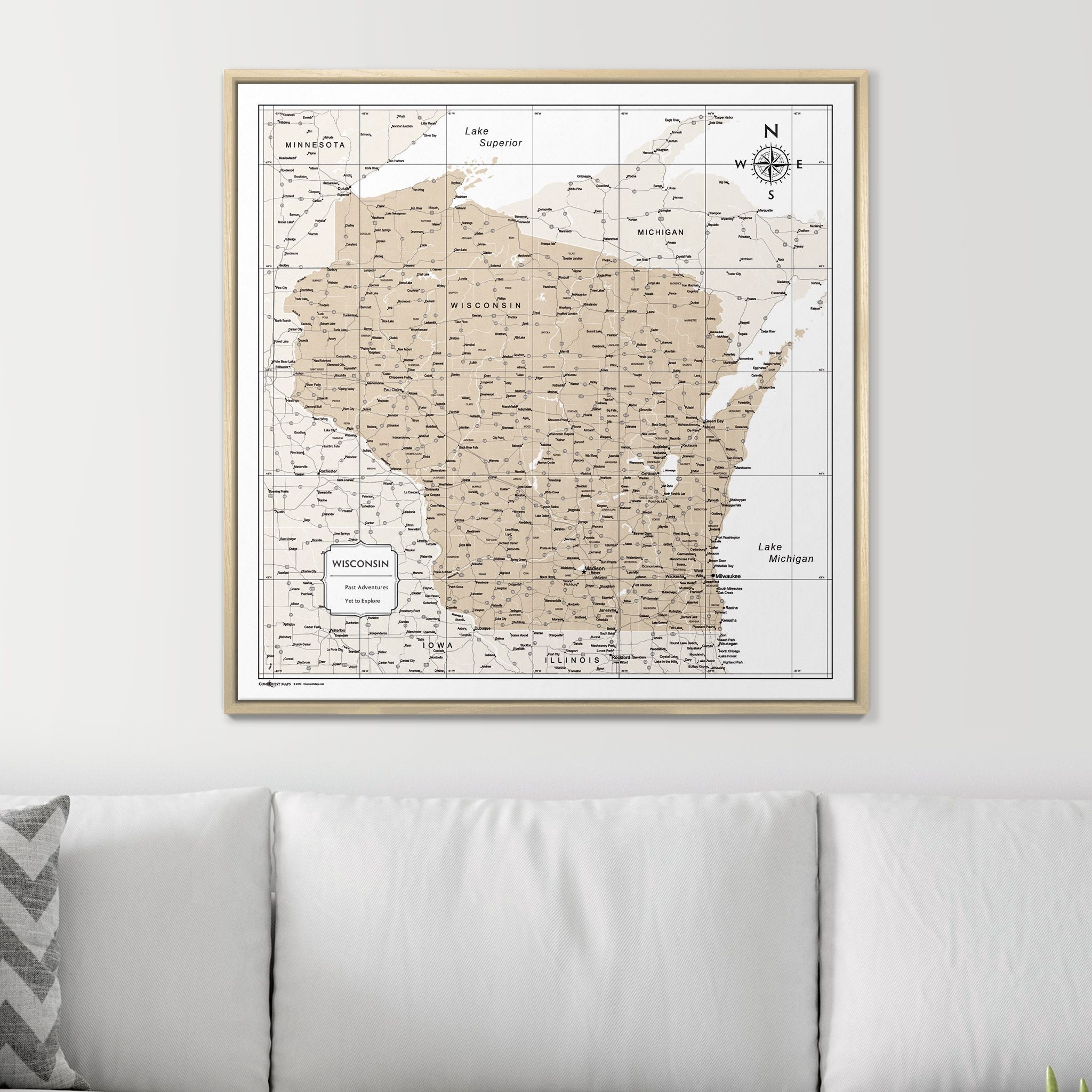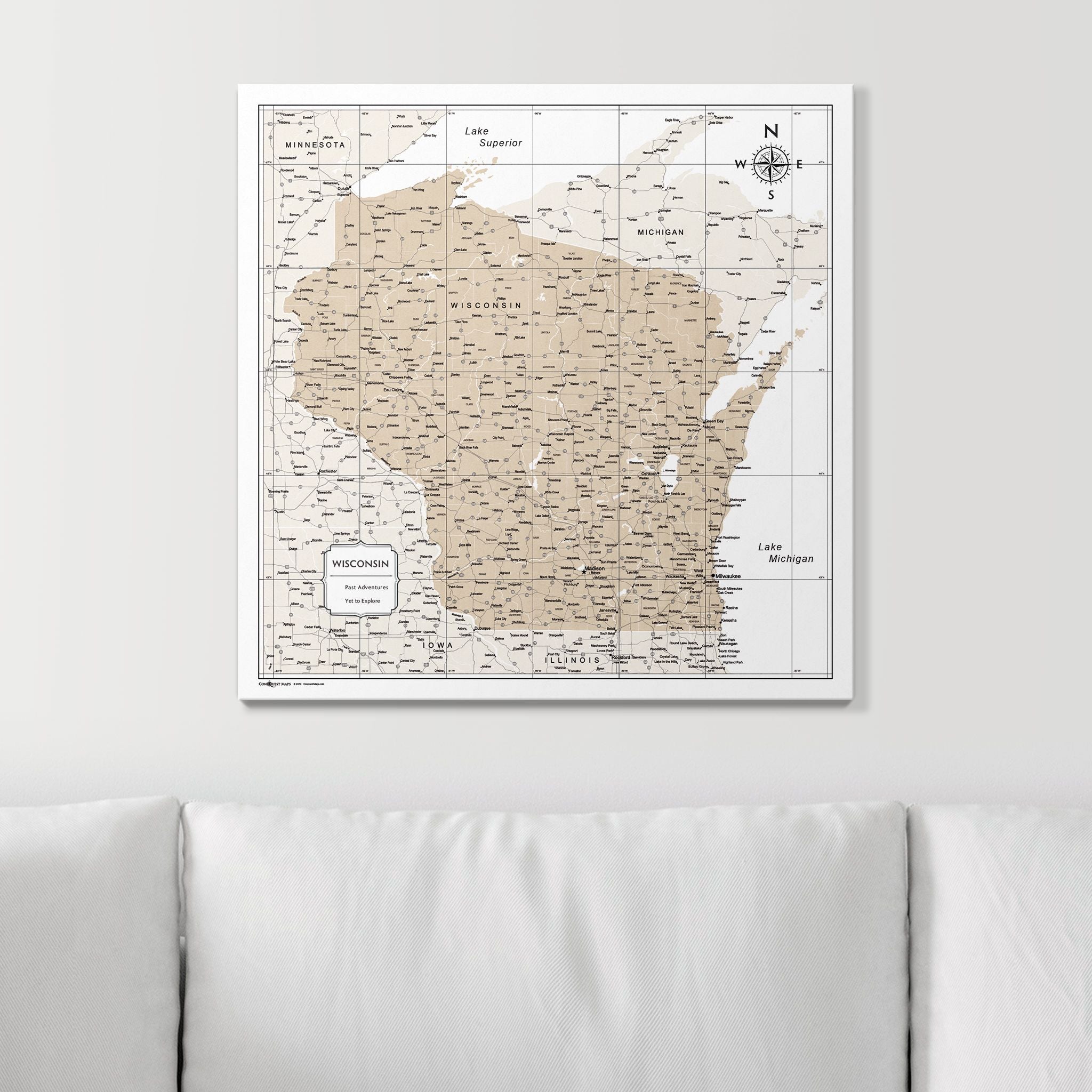 Push Pin Wisconsin Map (Pin Board) - Light Brown Color Splash