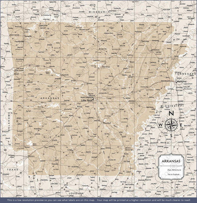 Push Pin Arkansas Map (Pin Board) - Light Brown Color Splash