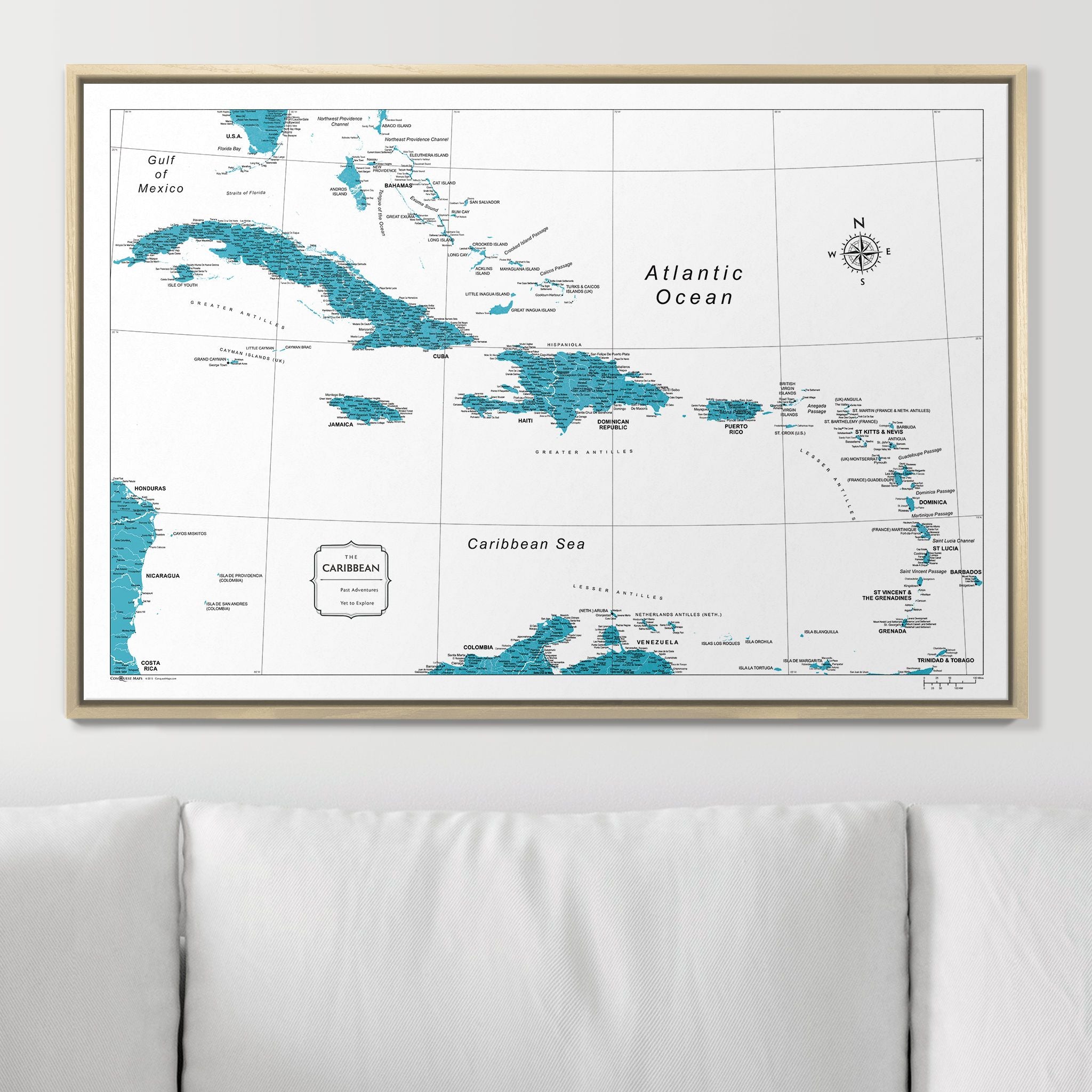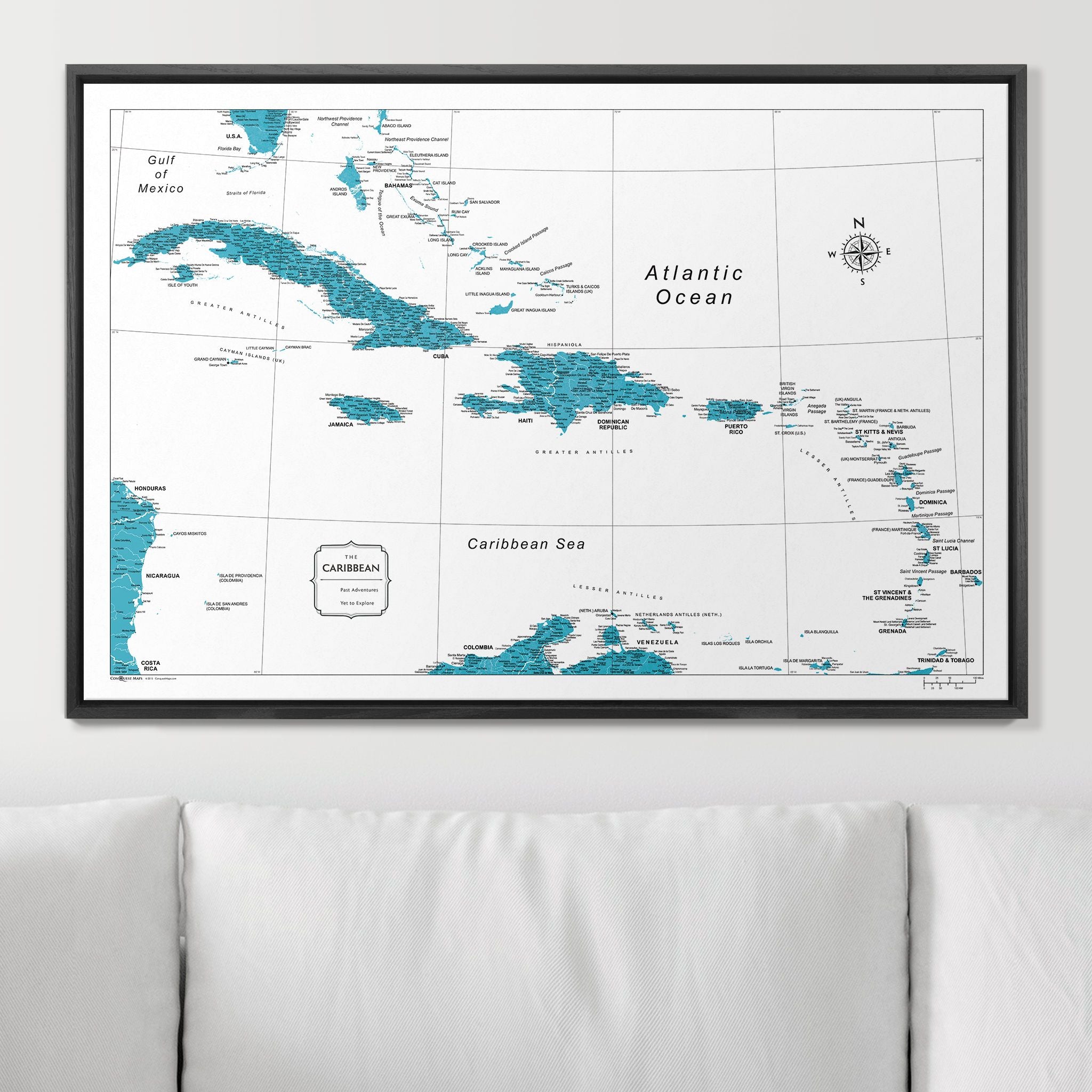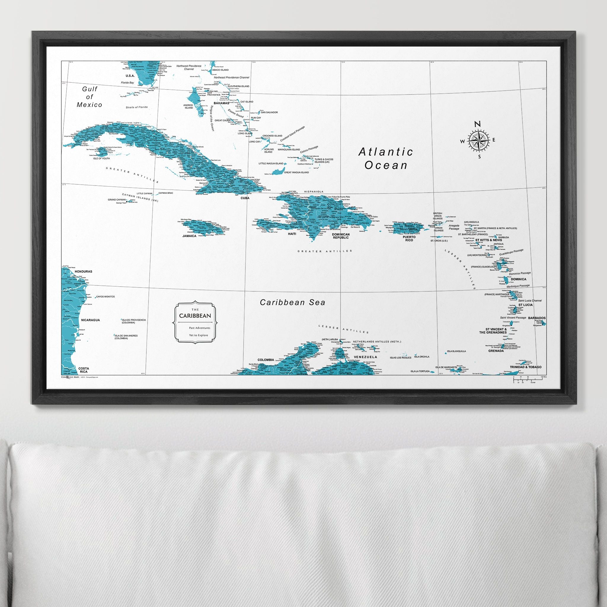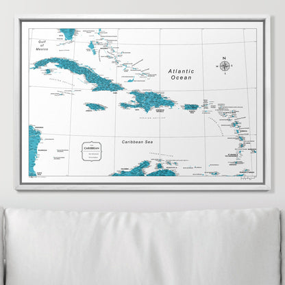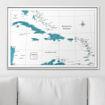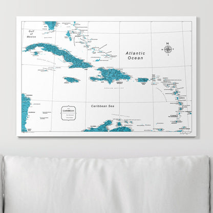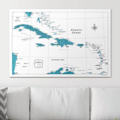 Push Pin Caribbean Map (Pin Board) - Teal Color Splash
