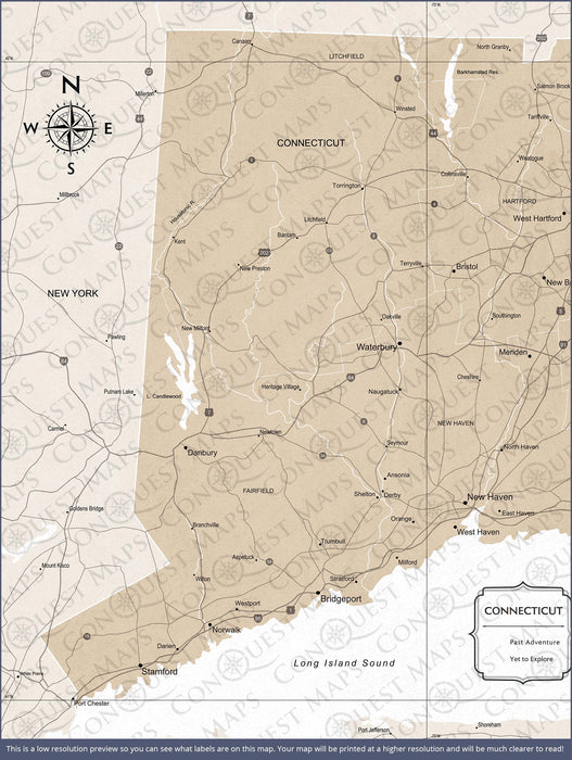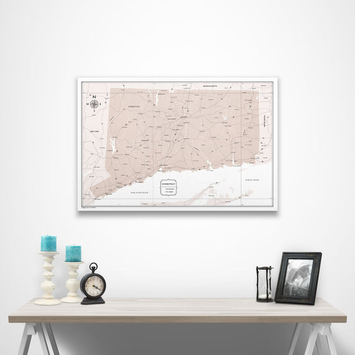 Push Pin Connecticut Map (Pin Board) - Light Brown Color Splash
