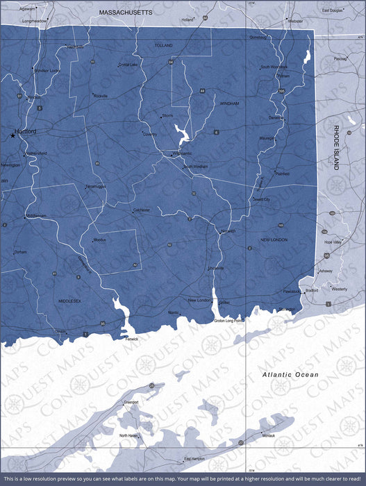 Push Pin Connecticut Map (Pin Board) - Navy Color Splash