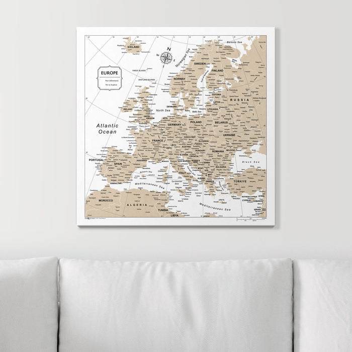 Push Pin Europe Map (Pin Board) - Light Brown Color Splash