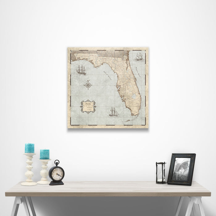 Push Pin Florida Map (Pin Board) - Rustic Vintage