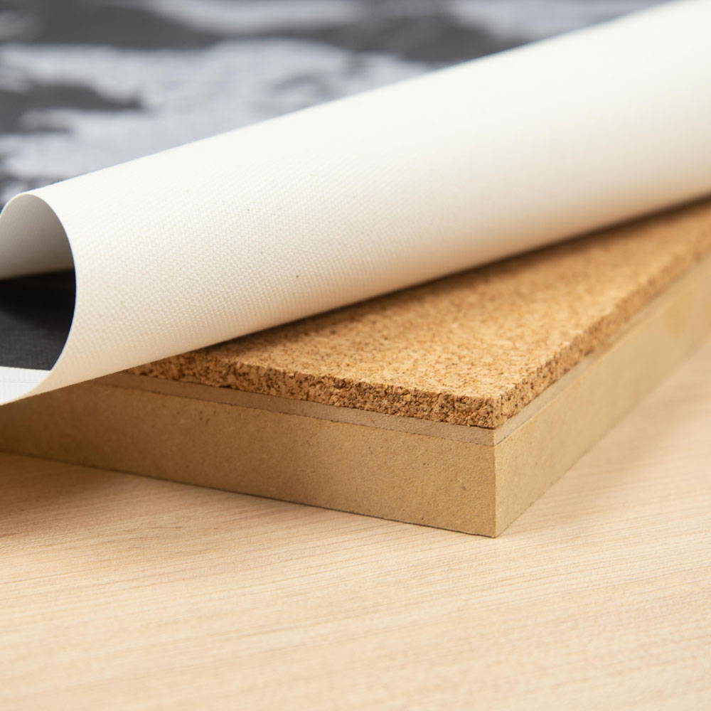 Our push pin travel maps are printed on premium stretched canvas and wrapped around an internal wood frame. There is a durable ½” layer of eco-friendly wood fiber pin board in between this internal piece and the canvas map print, so that when you place pins, they stay snugly in place.