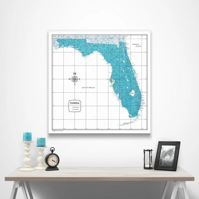 Push Pin Florida Map (Pin Board) - Teal Color Splash
