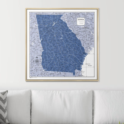 Push Pin Georgia Map (Pin Board) - Navy Color Splash