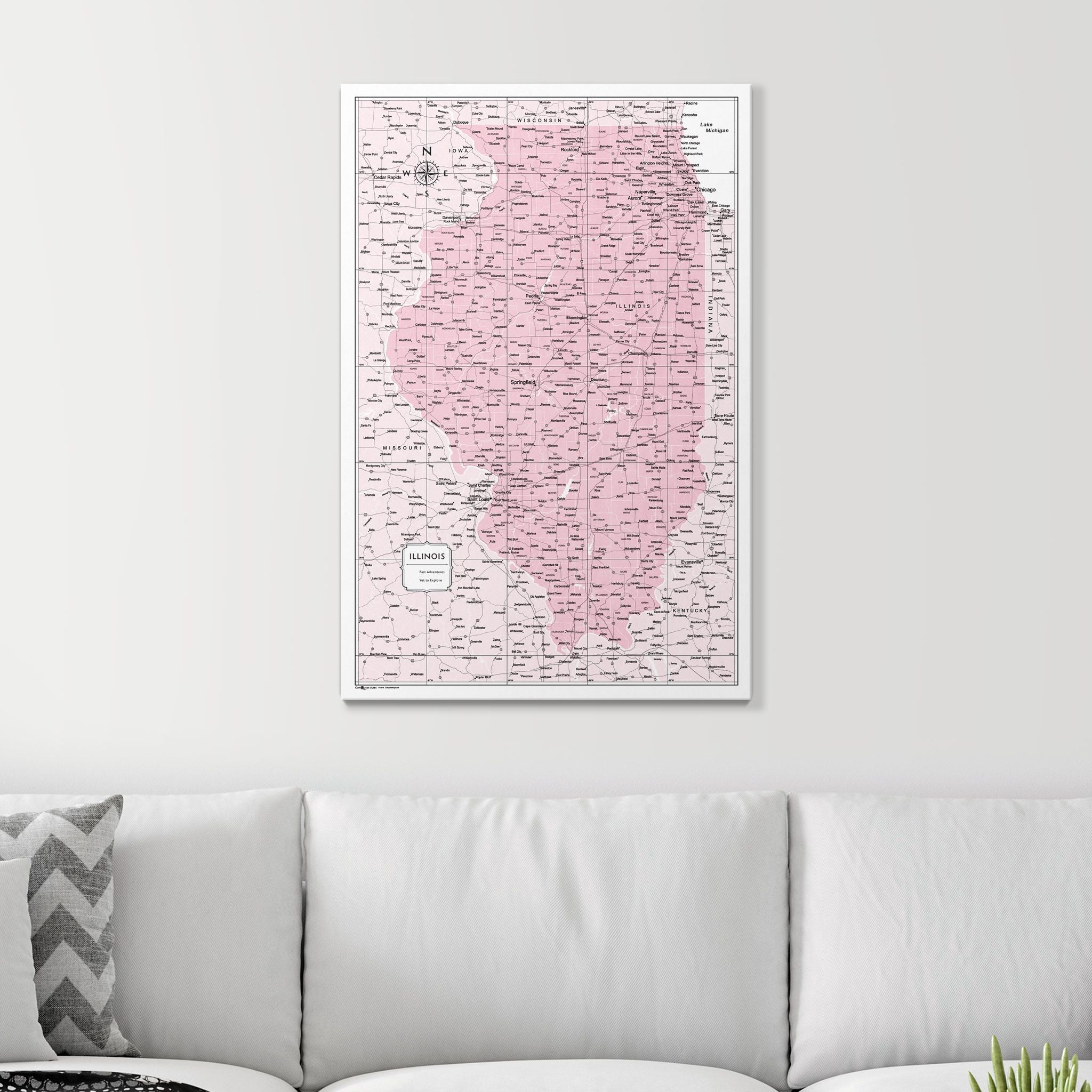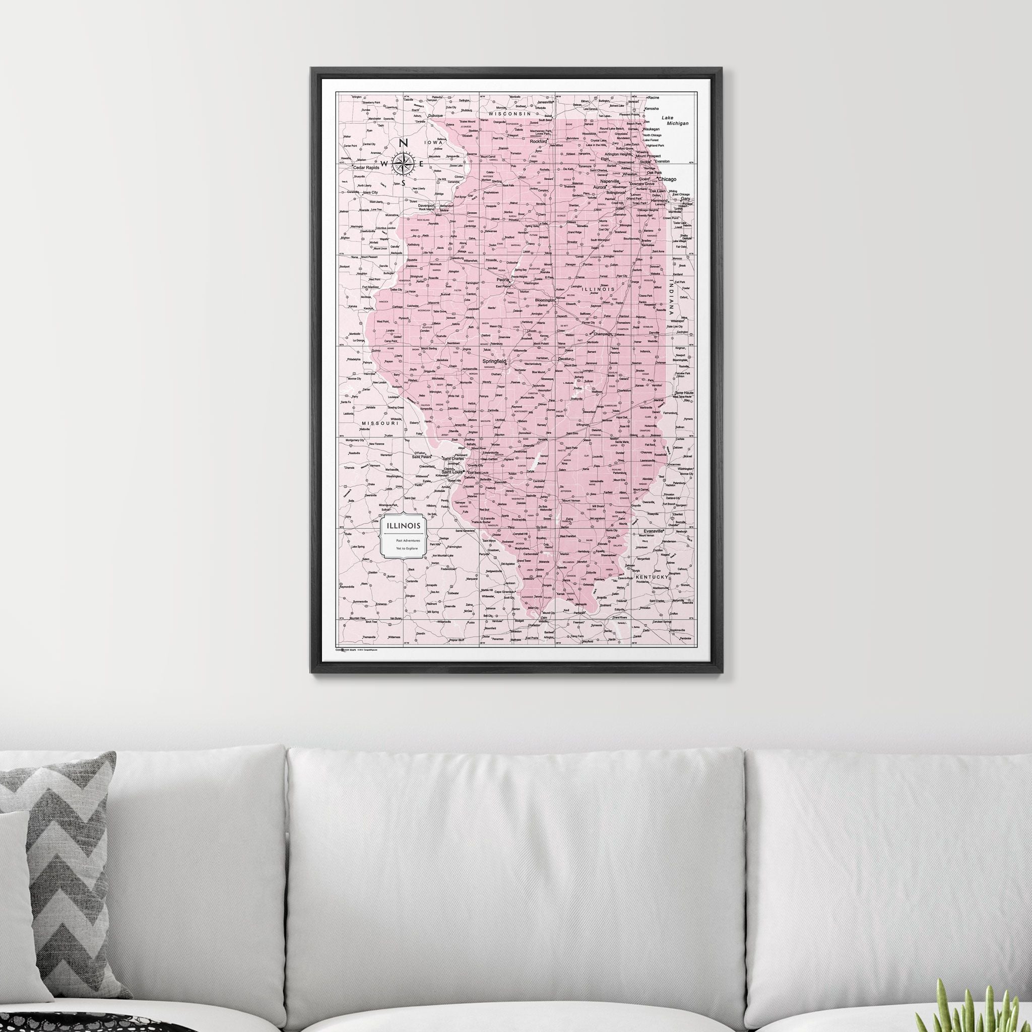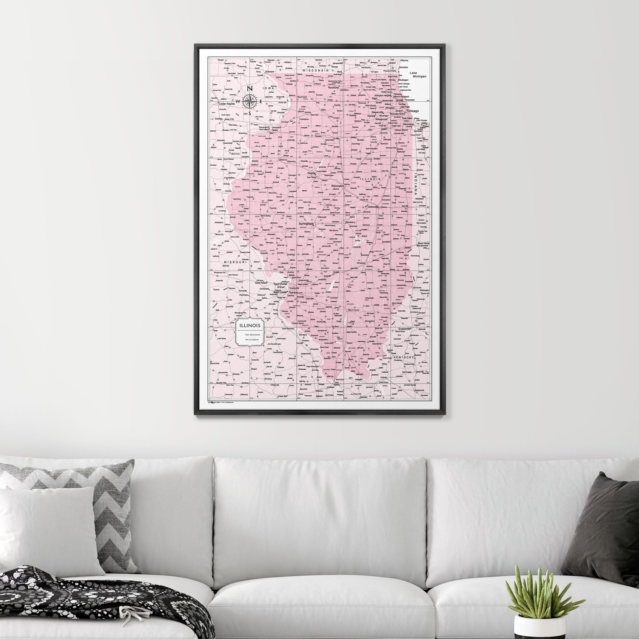 Push Pin Illinois Map (Pin Board) - Pink Color Splash