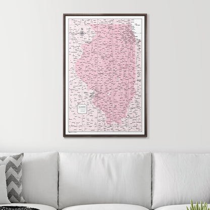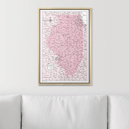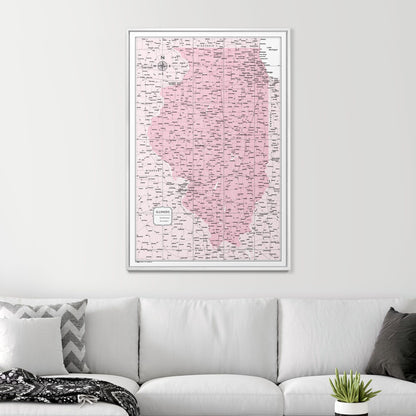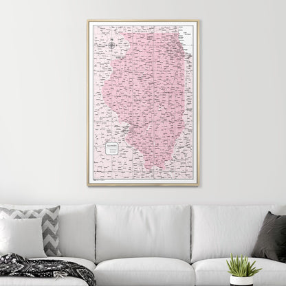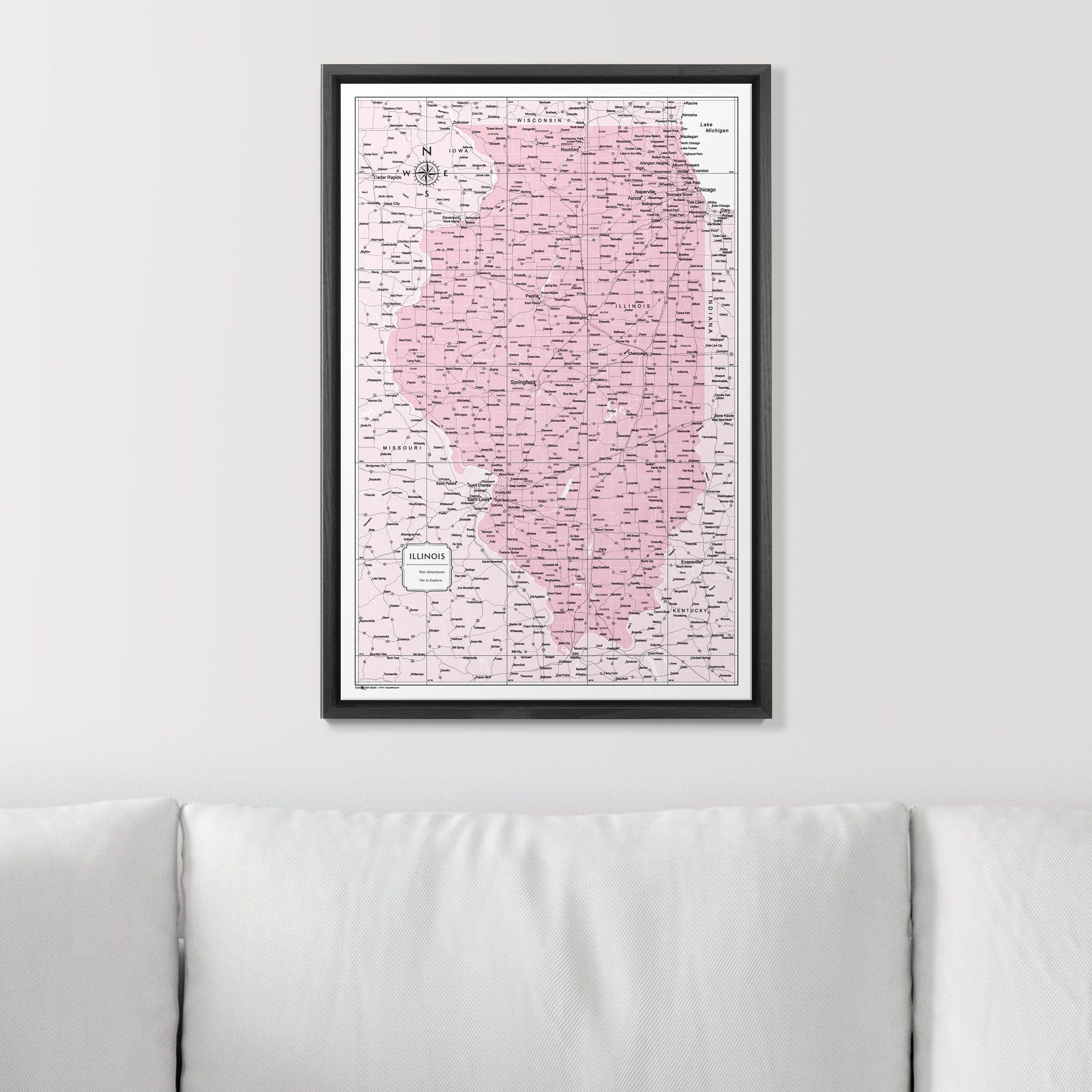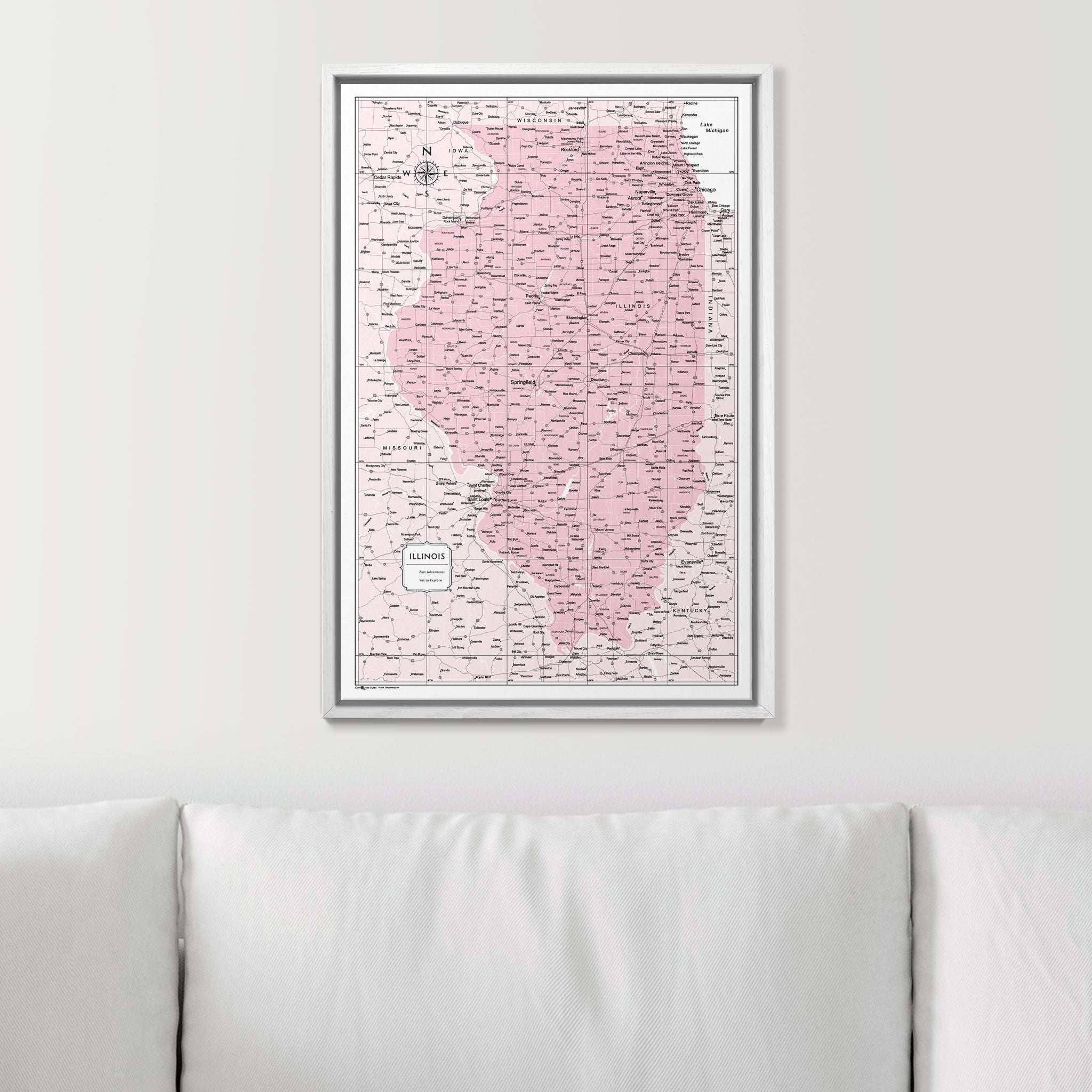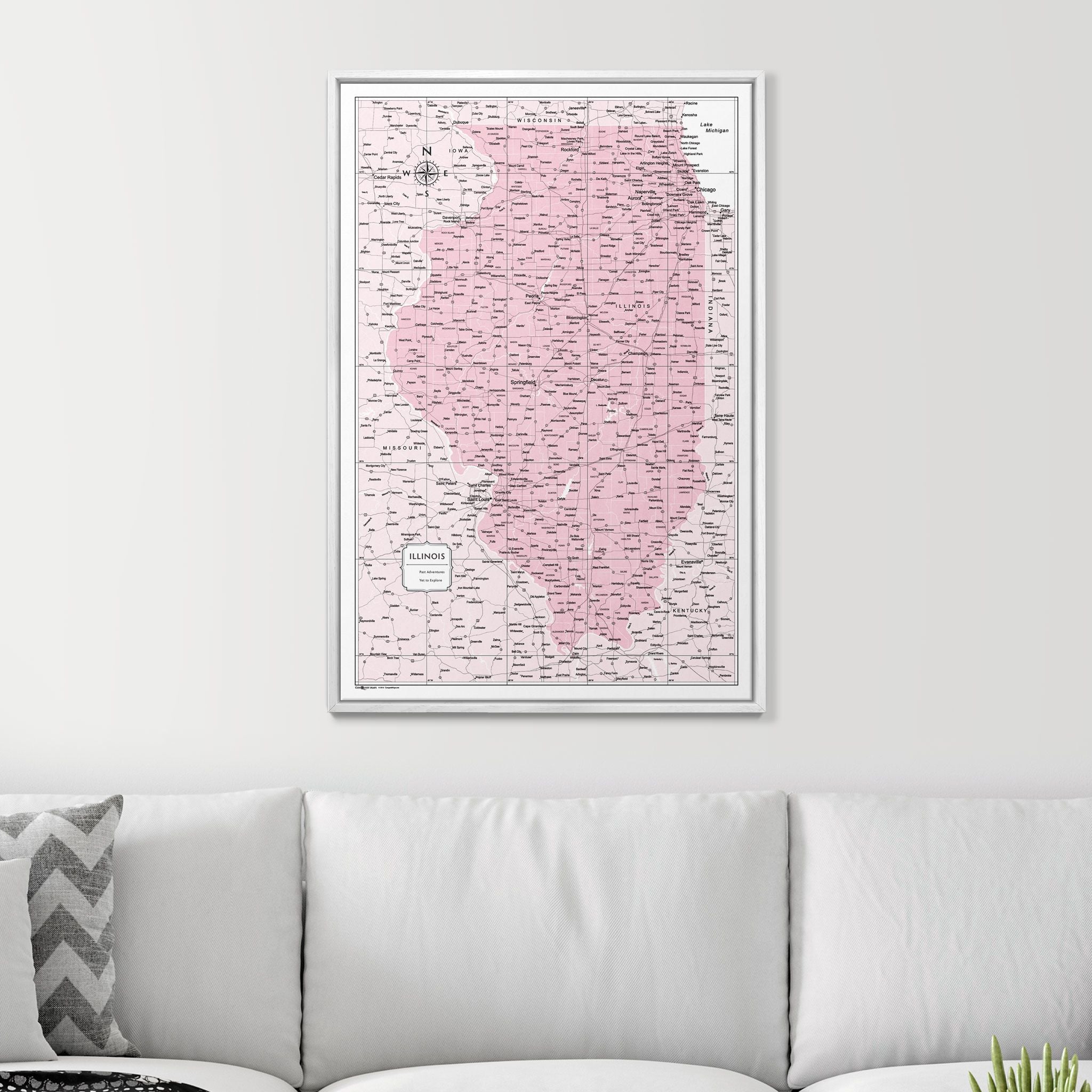 Push Pin Illinois Map (Pin Board) - Pink Color Splash