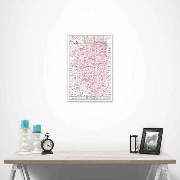 Push Pin Illinois Map (Pin Board) - Pink Color Splash