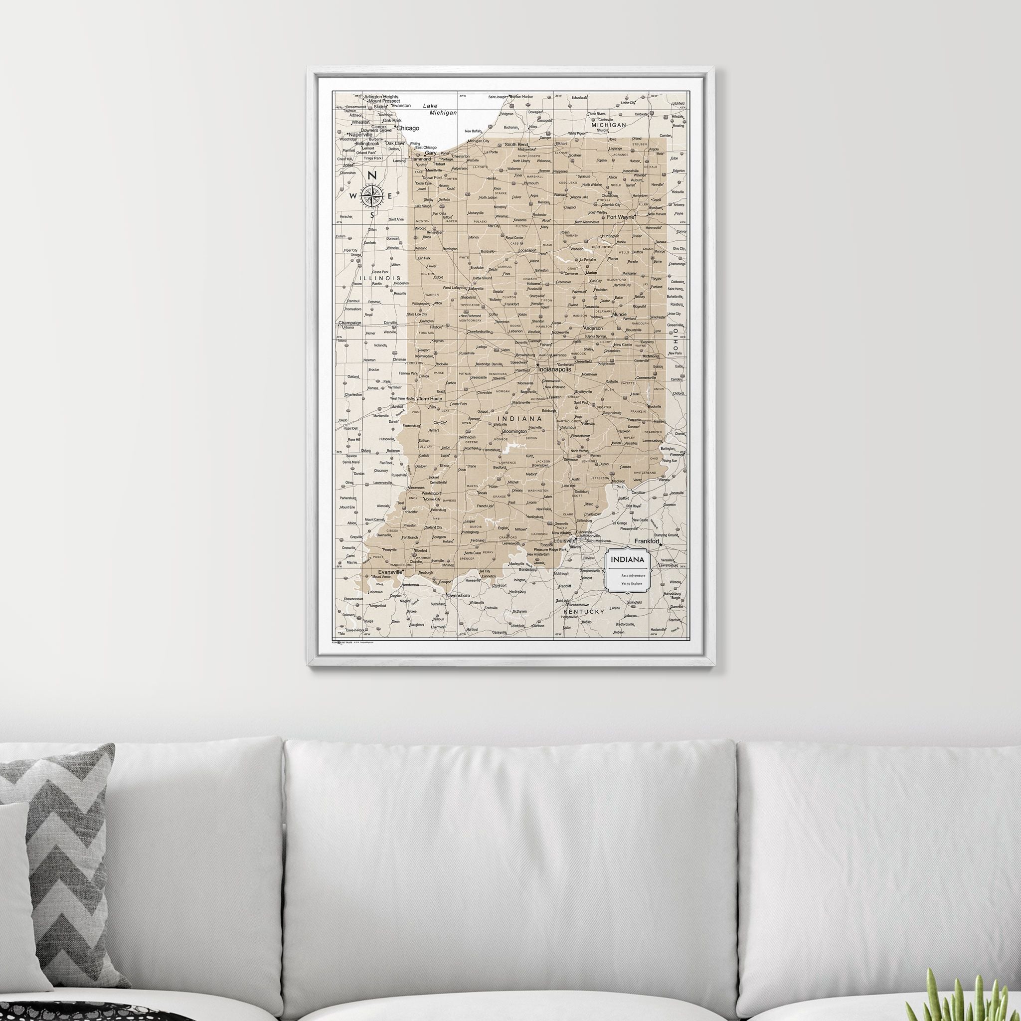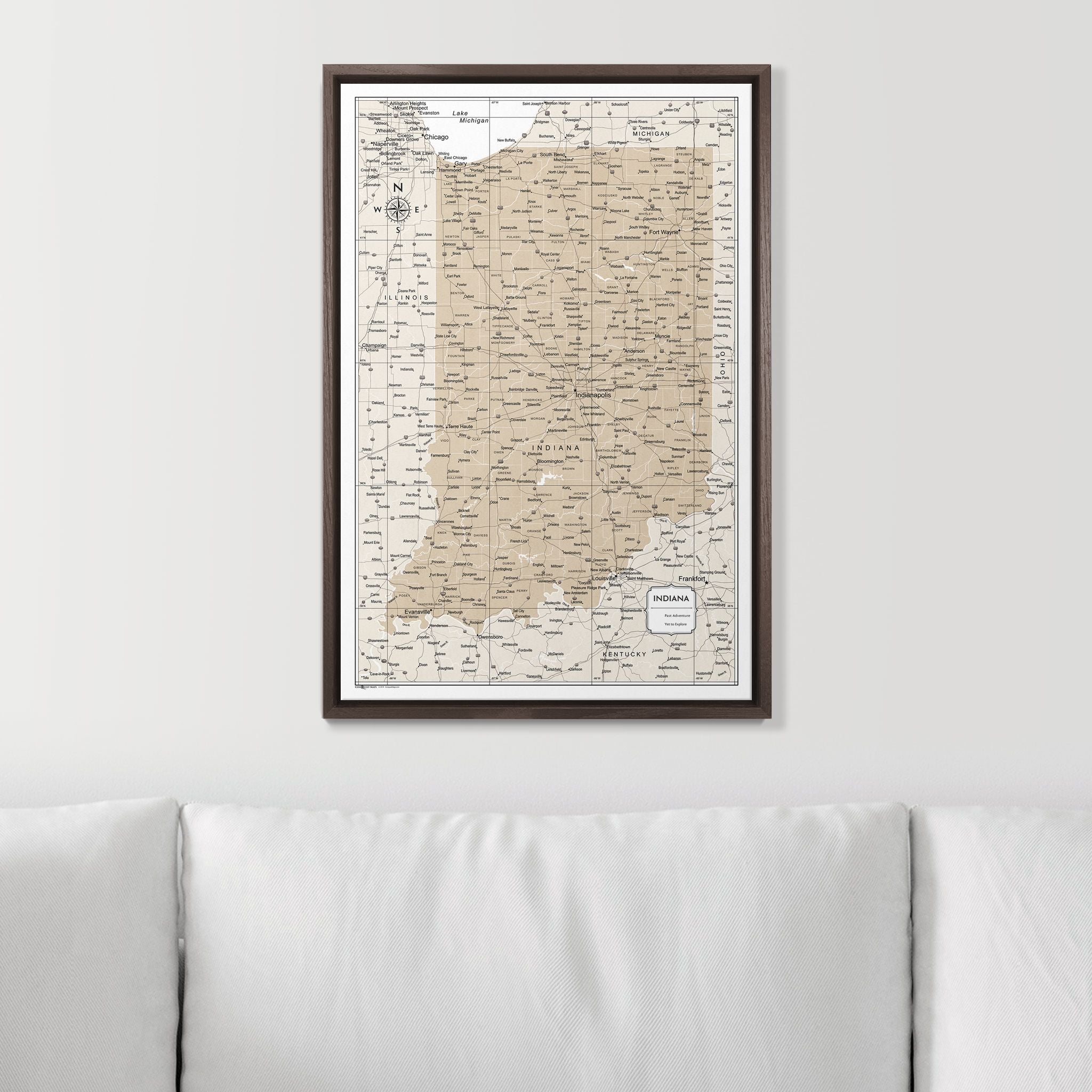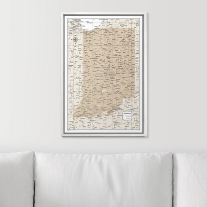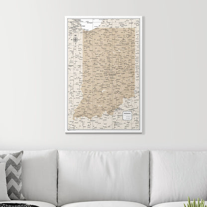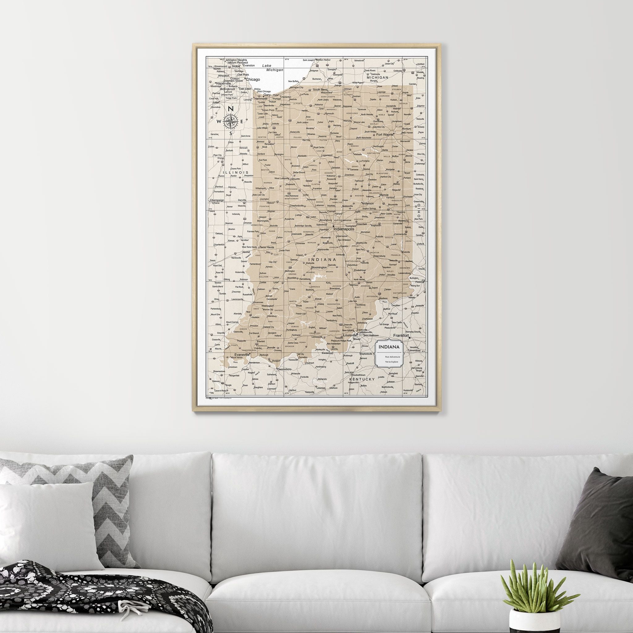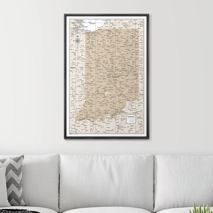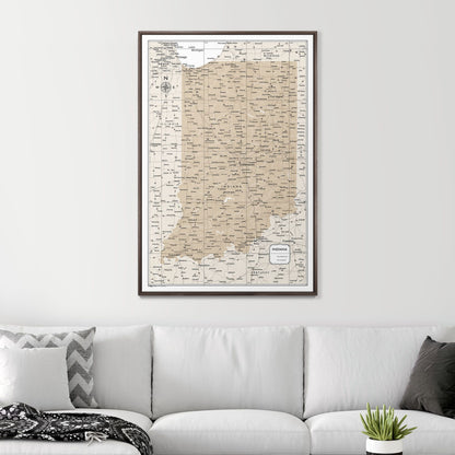 Push Pin Indiana Map (Pin Board) - Light Brown Color Splash