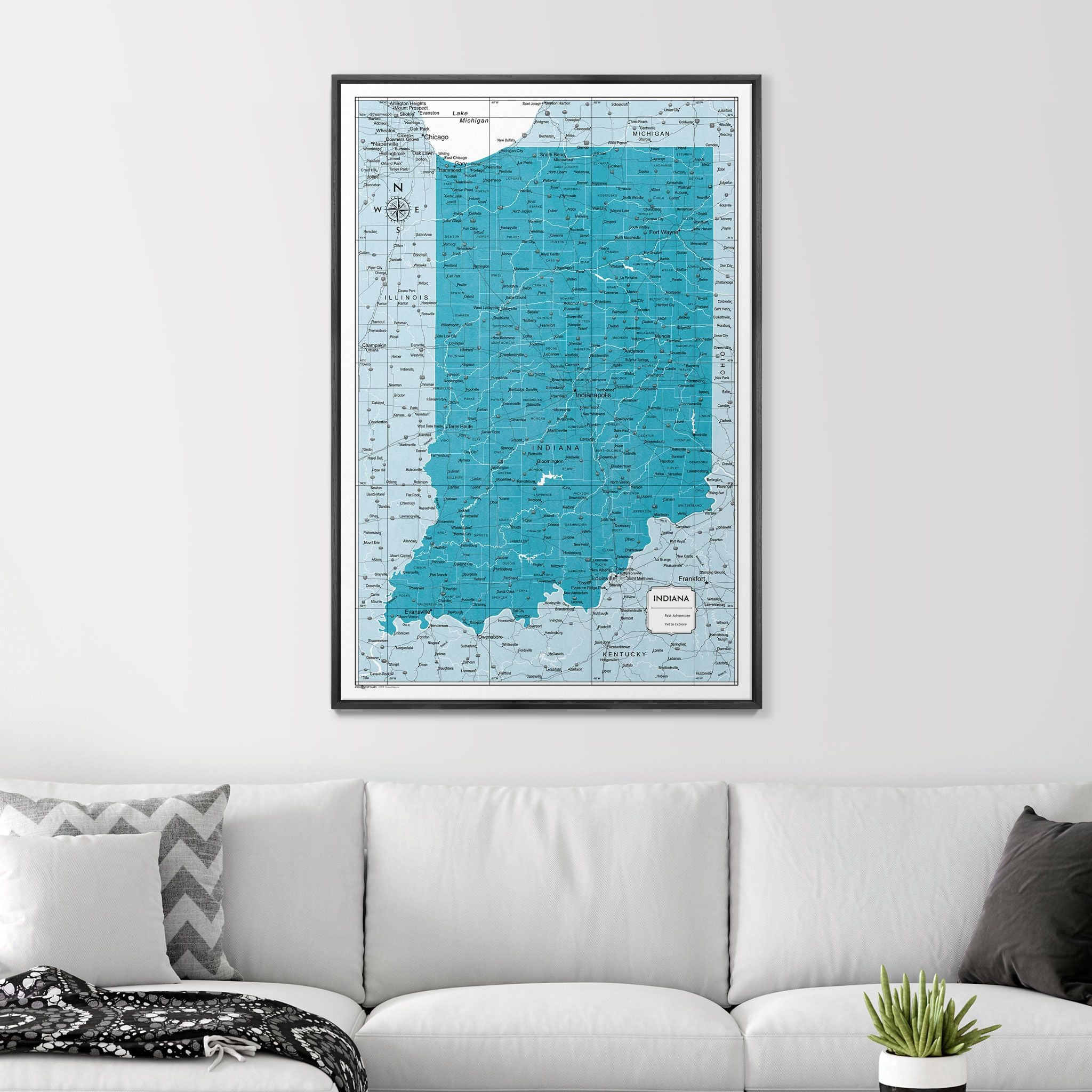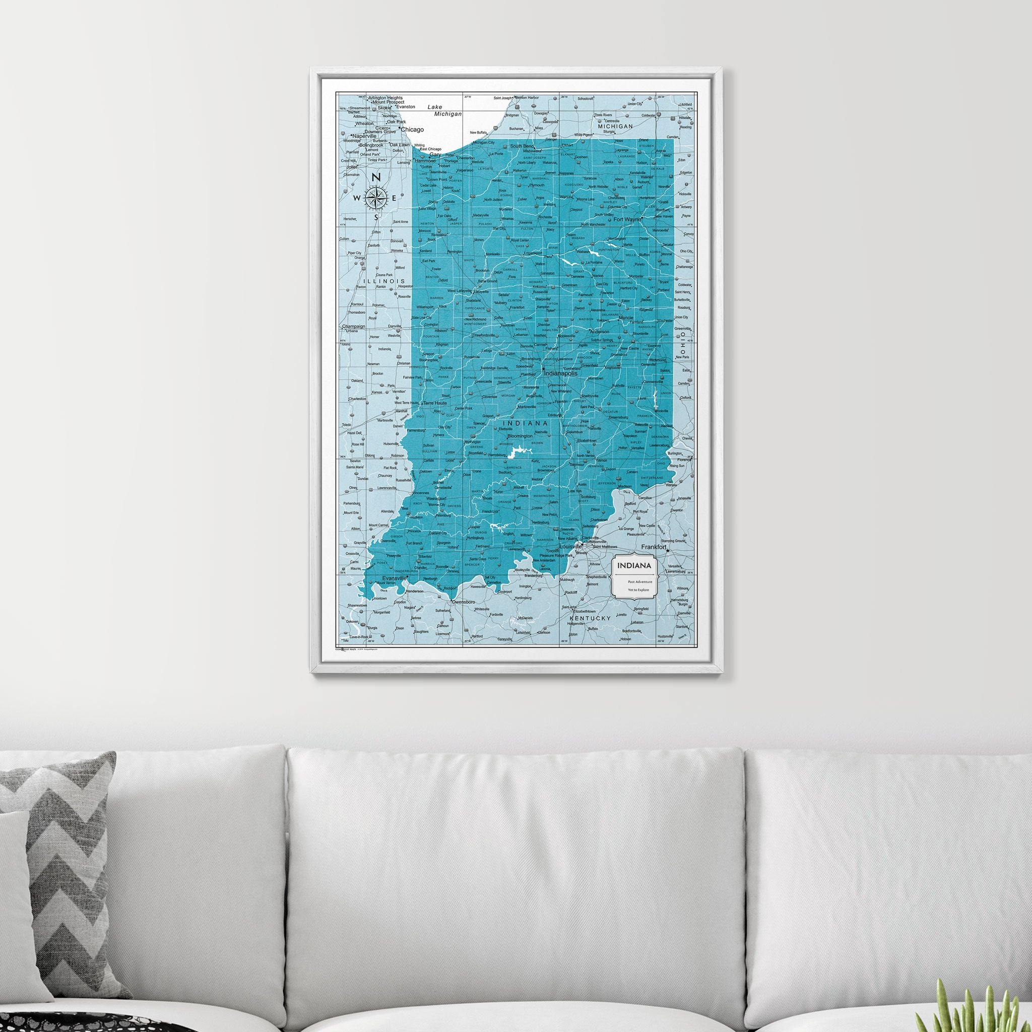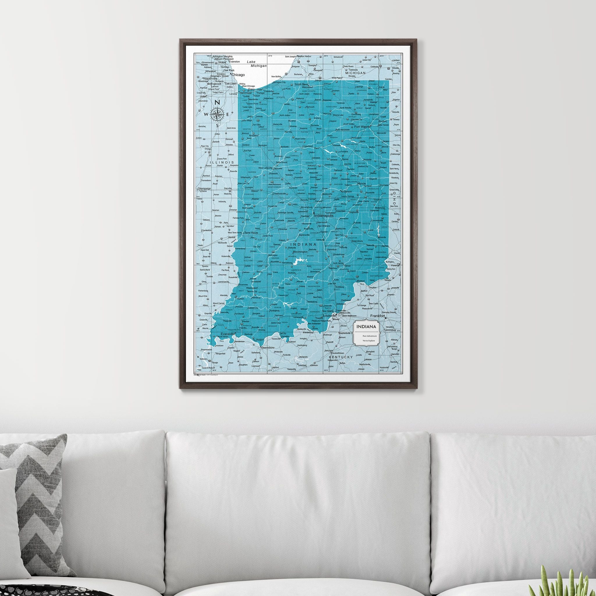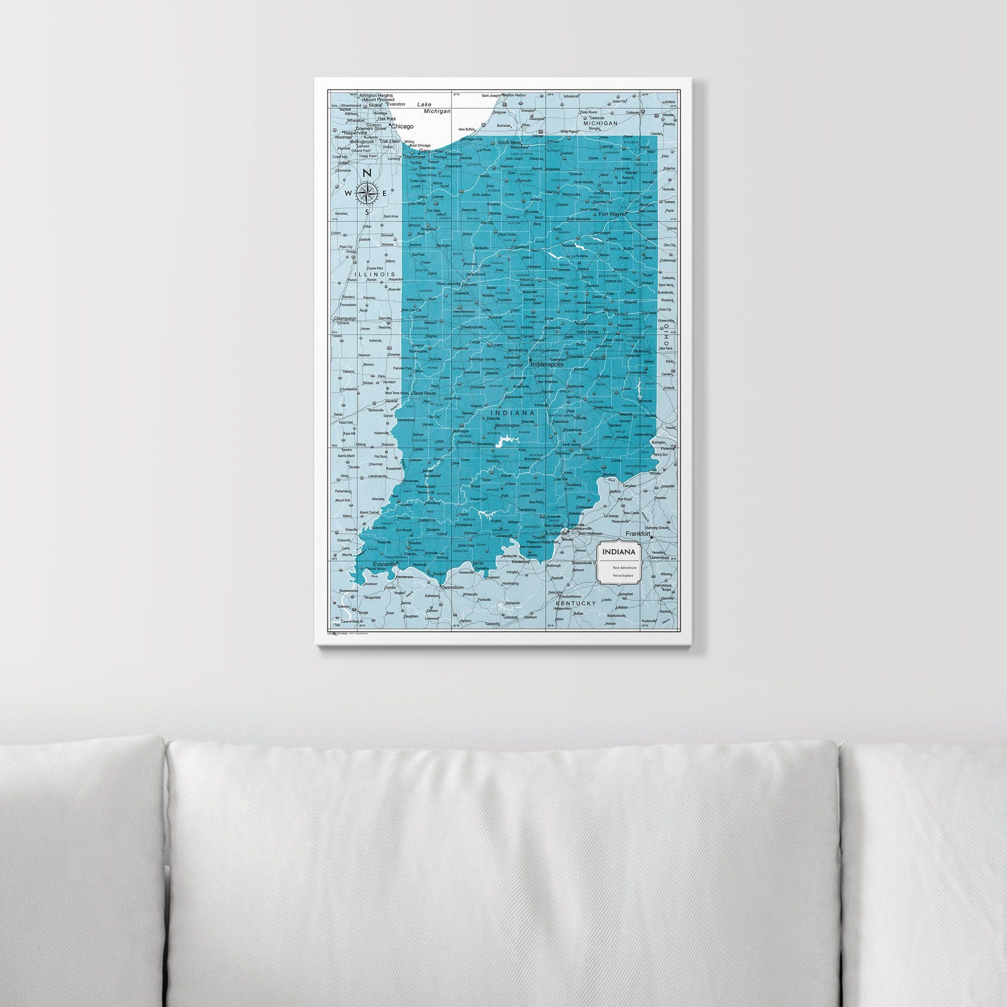Push Pin Indiana Map (Pin Board) - Teal Color Splash
