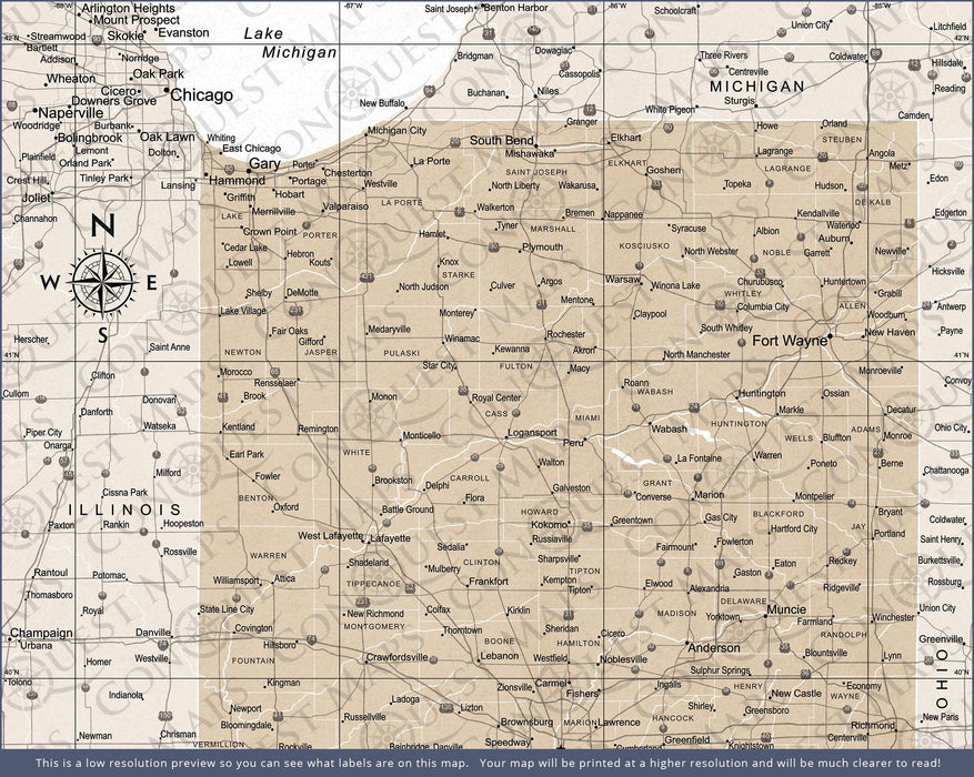 Push Pin Indiana Map (Pin Board) - Light Brown Color Splash