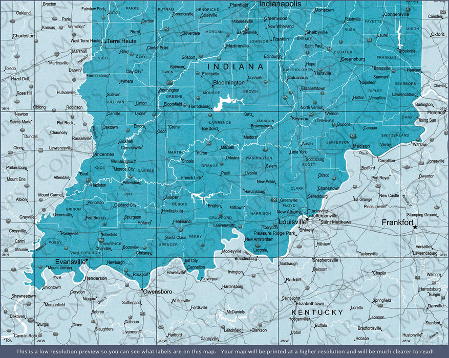 Push Pin Indiana Map (Pin Board) - Teal Color Splash