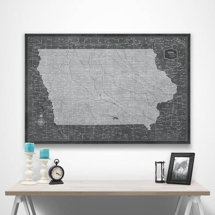 Push Pin Iowa Map (Pin Board) - Modern Slate