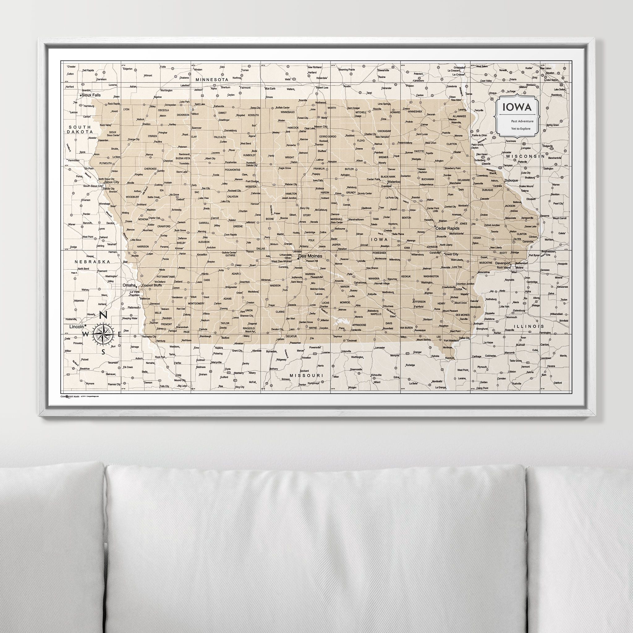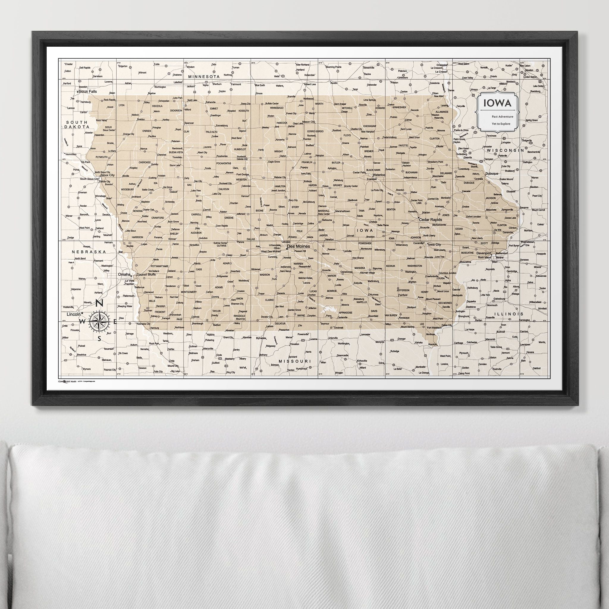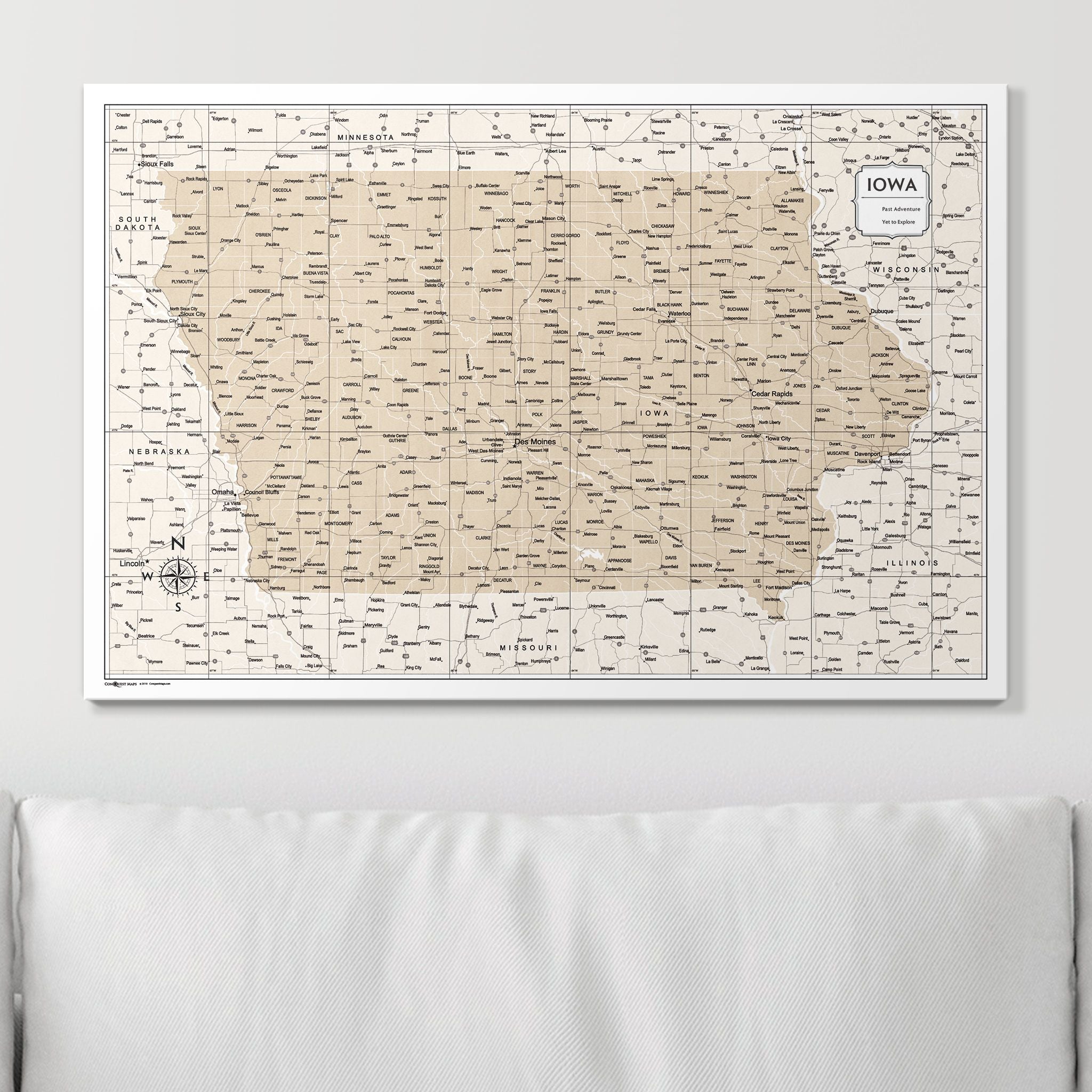 Push Pin Iowa Map (Pin Board) - Light Brown Color Splash