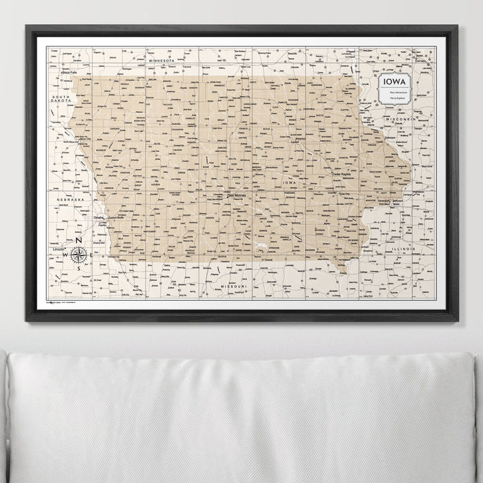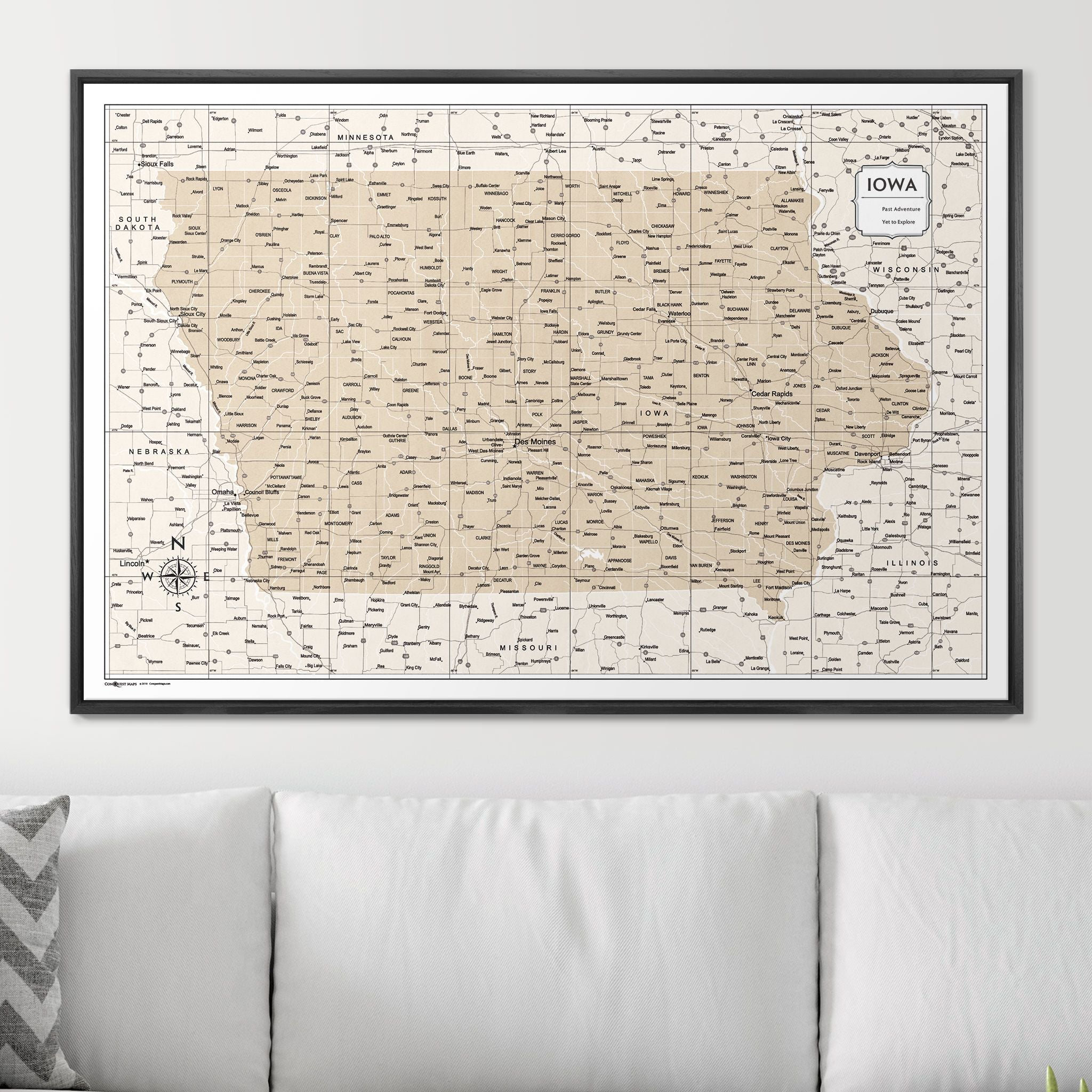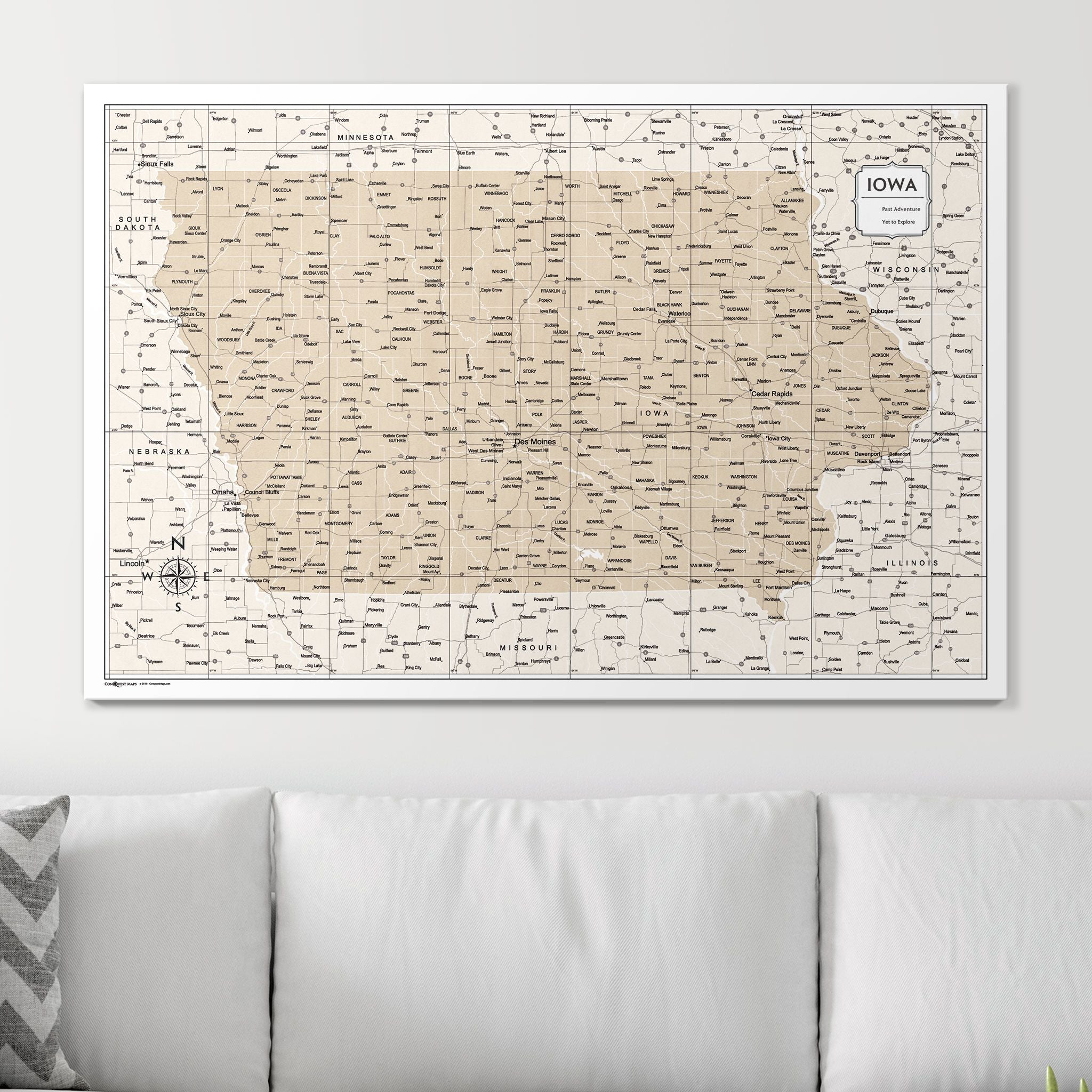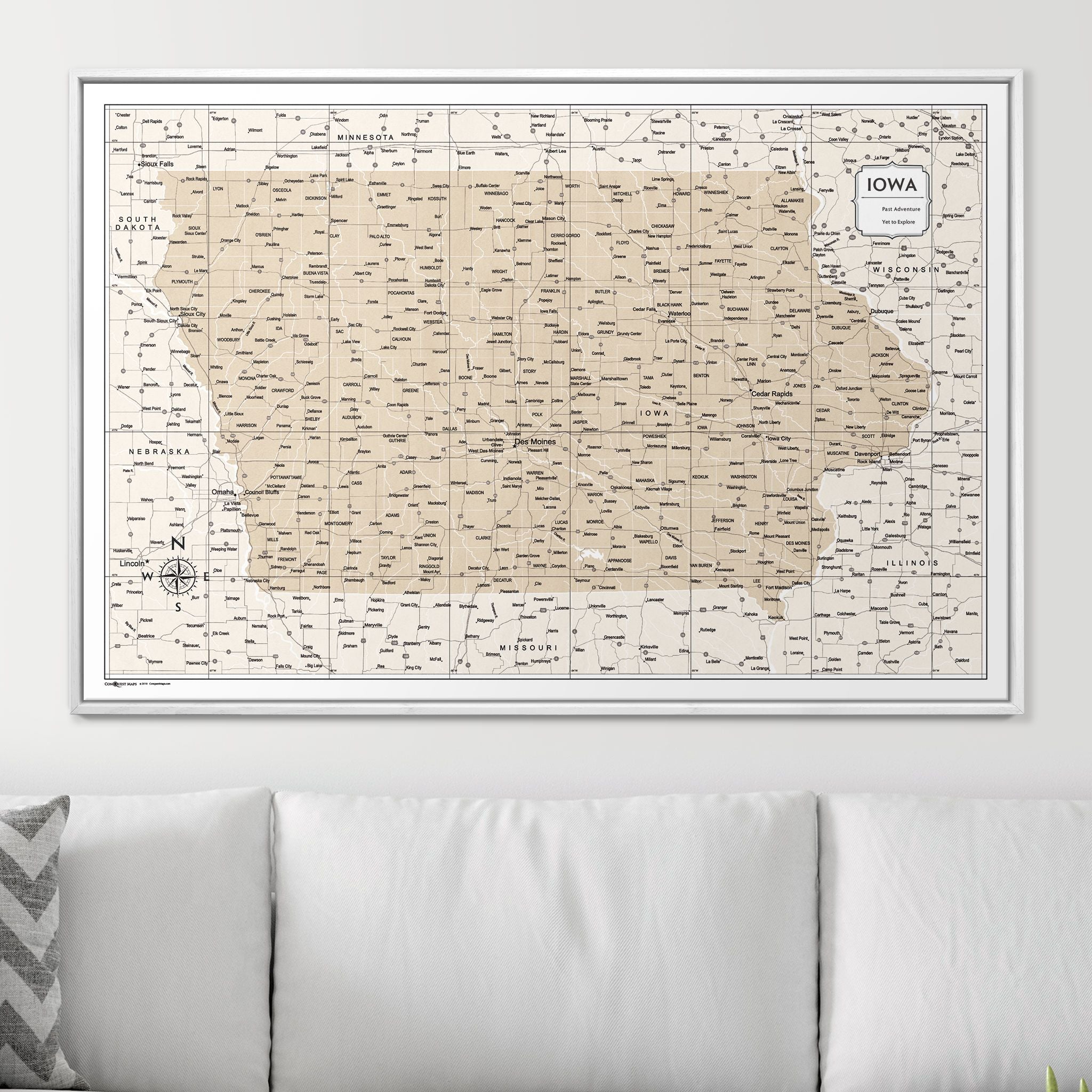 Push Pin Iowa Map (Pin Board) - Light Brown Color Splash