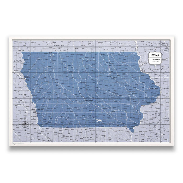 Push Pin Iowa Map (Pin Board) - Navy Color Splash