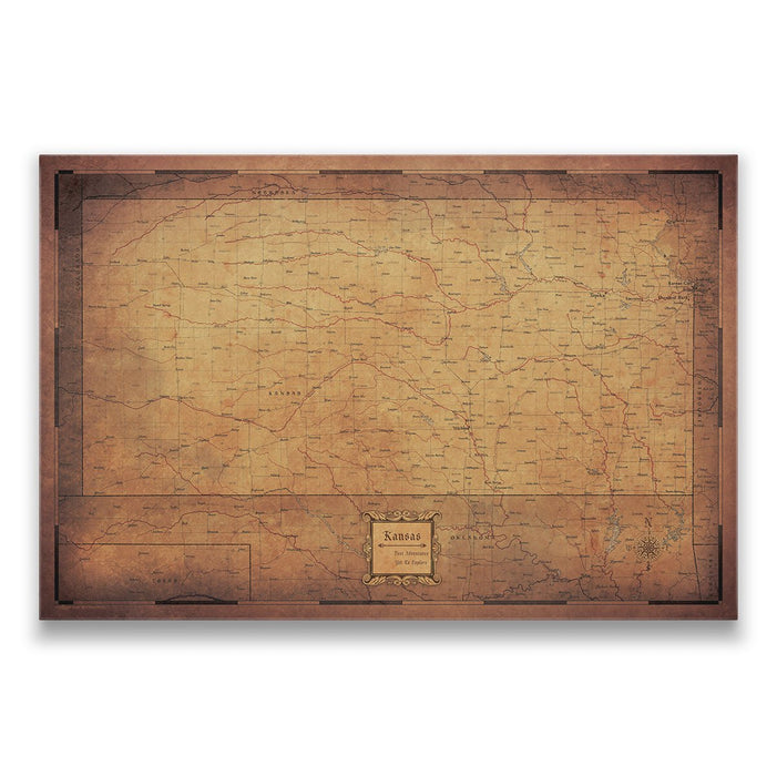 Push Pin Kansas Map (Pin Board) - Golden Aged