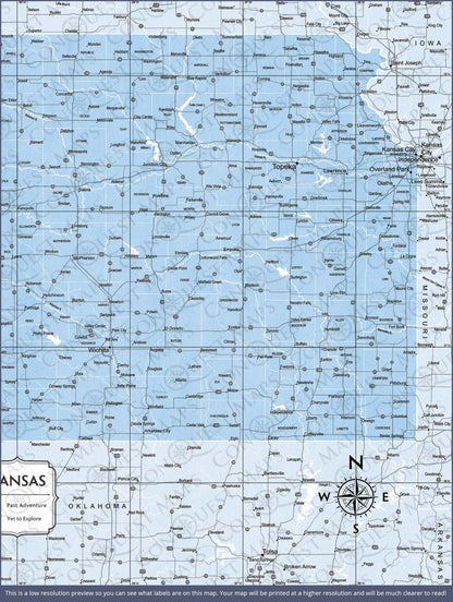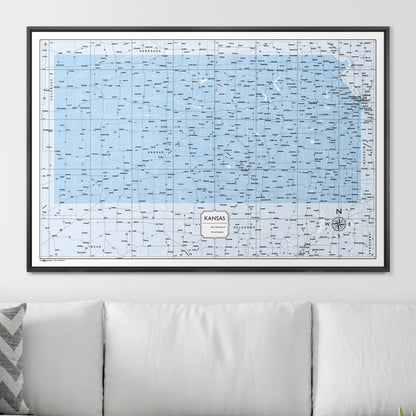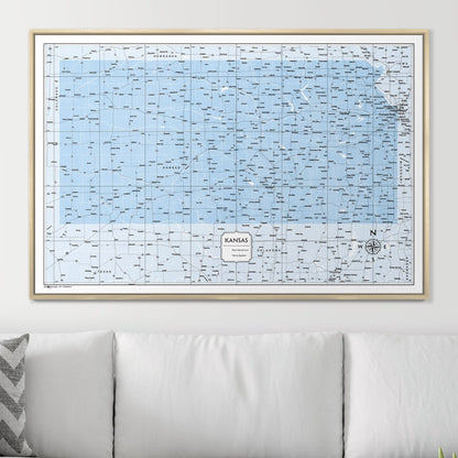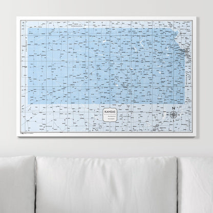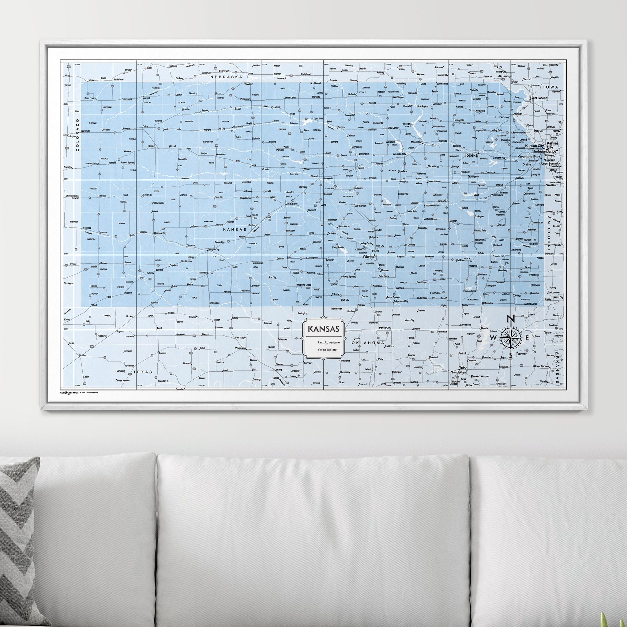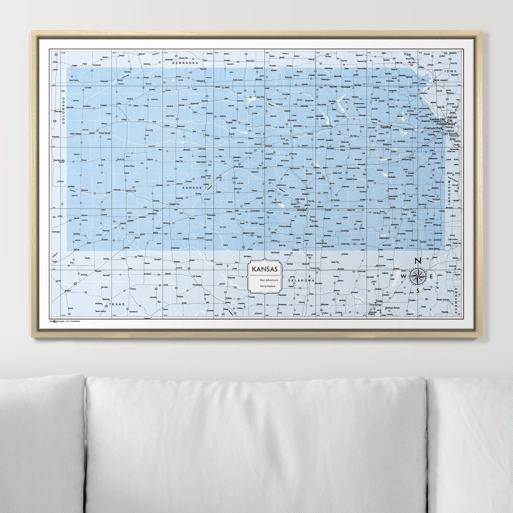 Push Pin Kansas Map (Pin Board) - Light Blue Color Splash