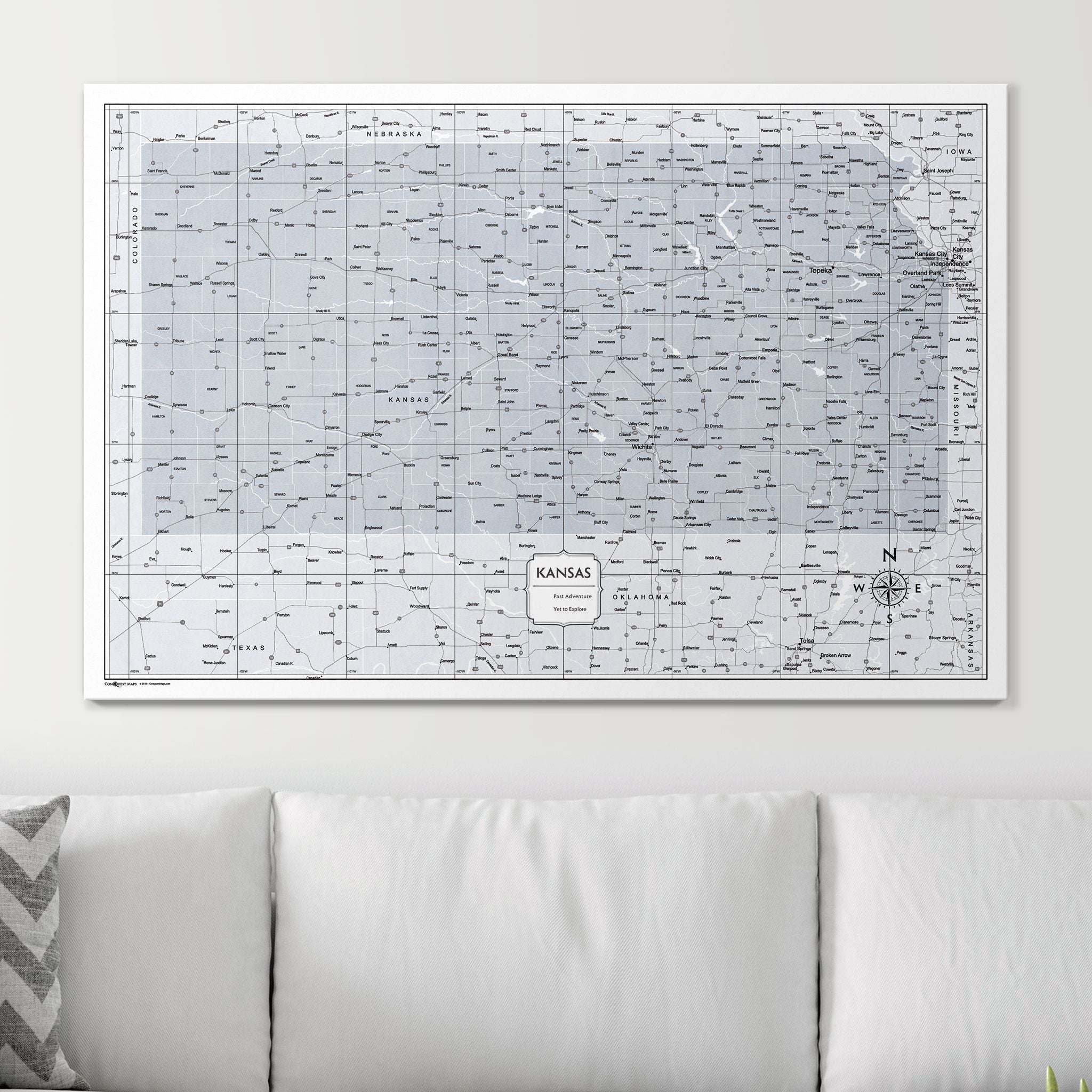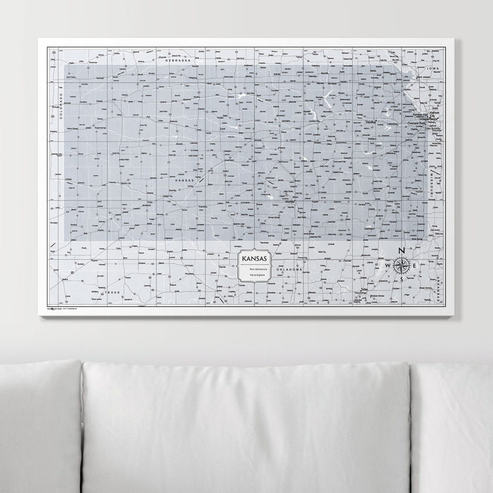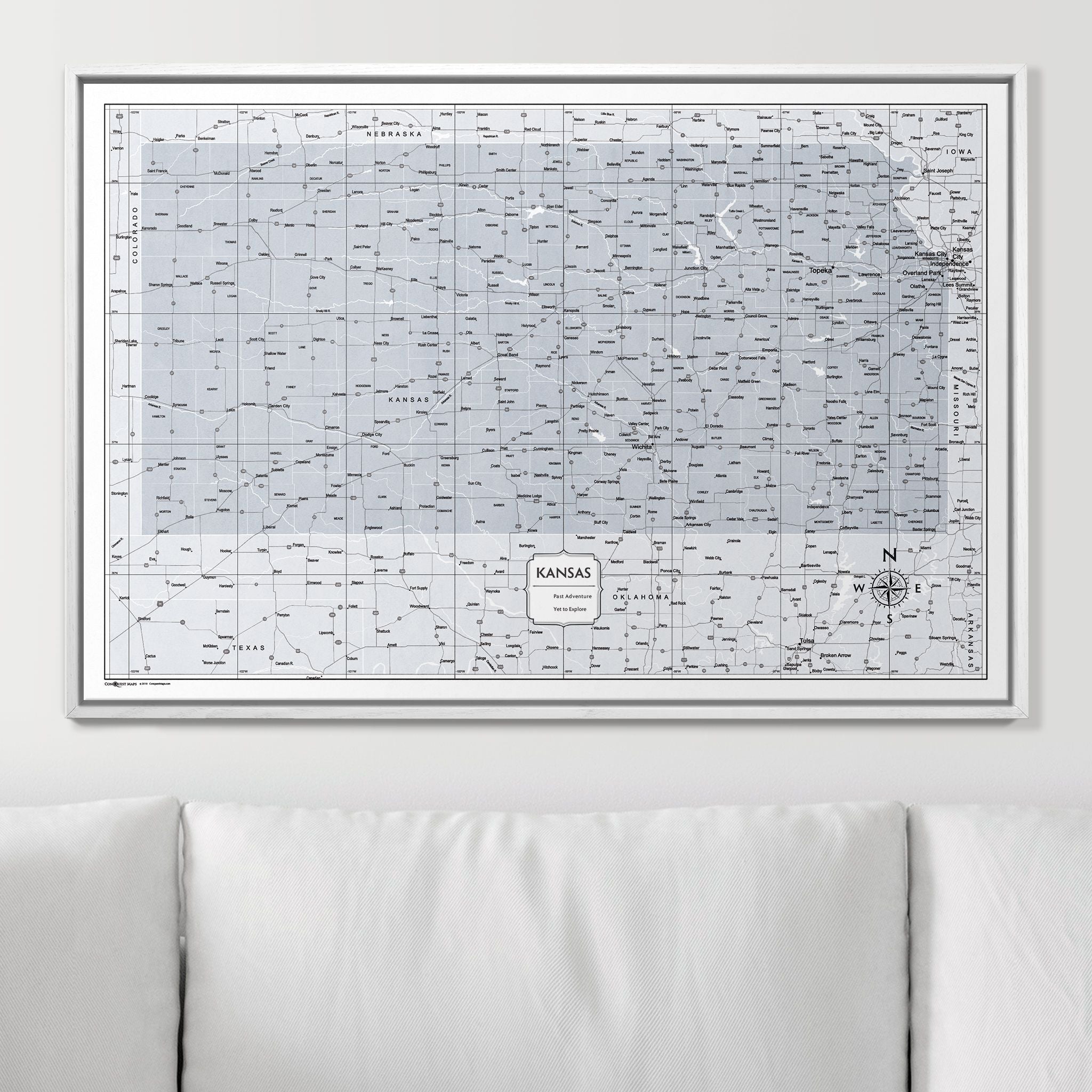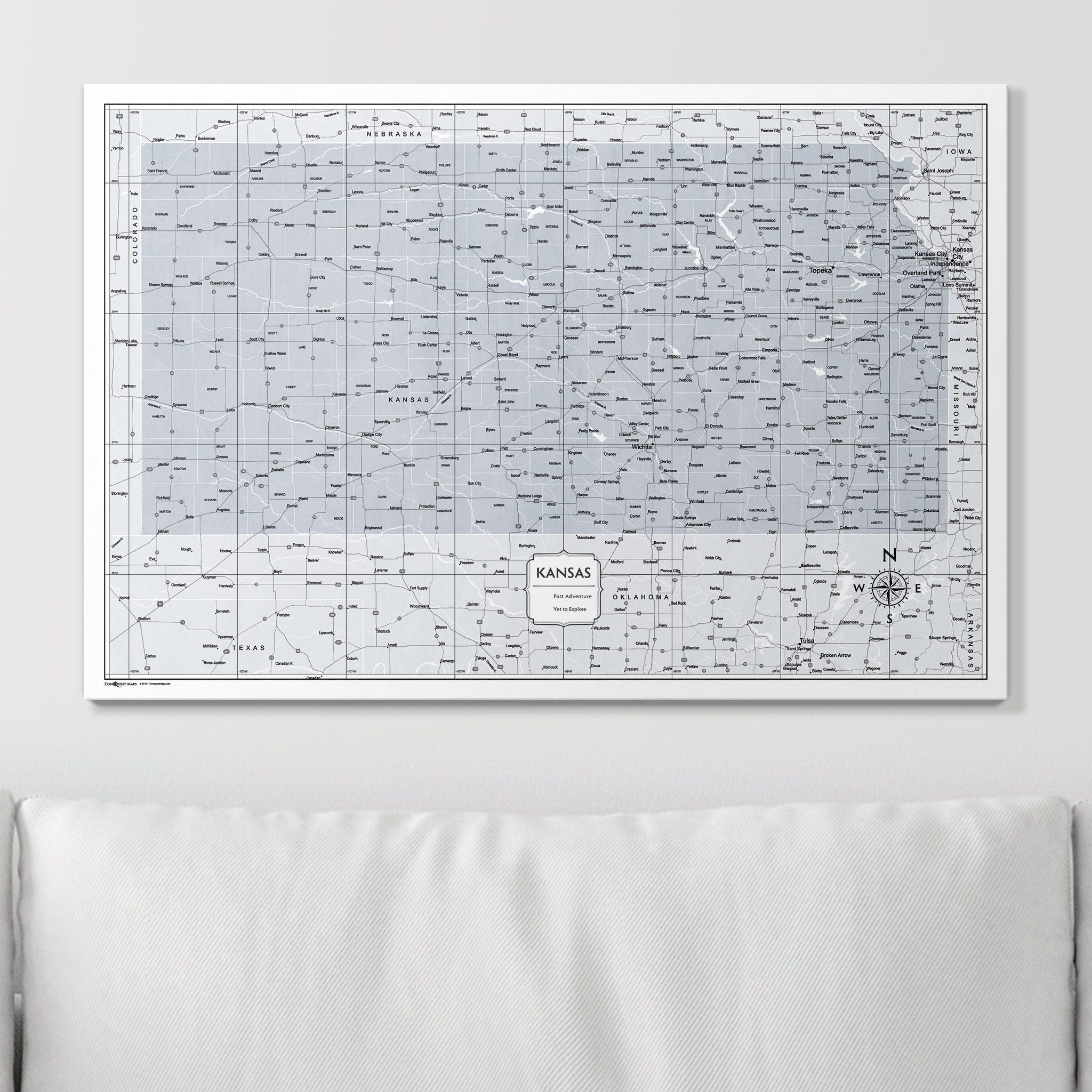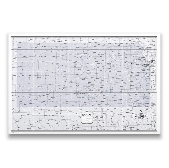 Push Pin Kansas Map (Pin Board) - Light Gray Color Splash