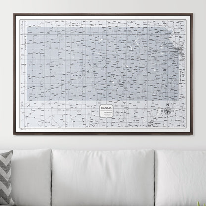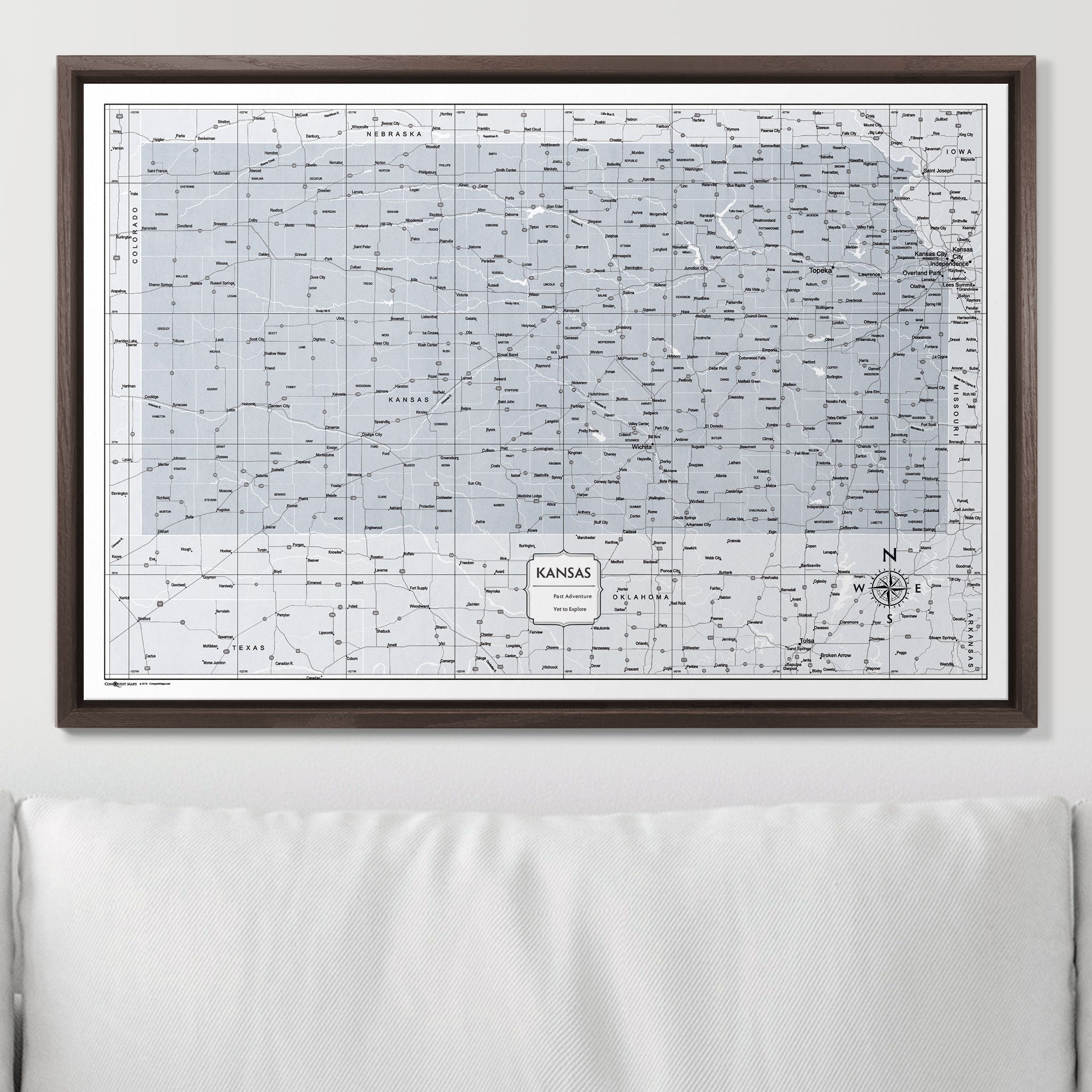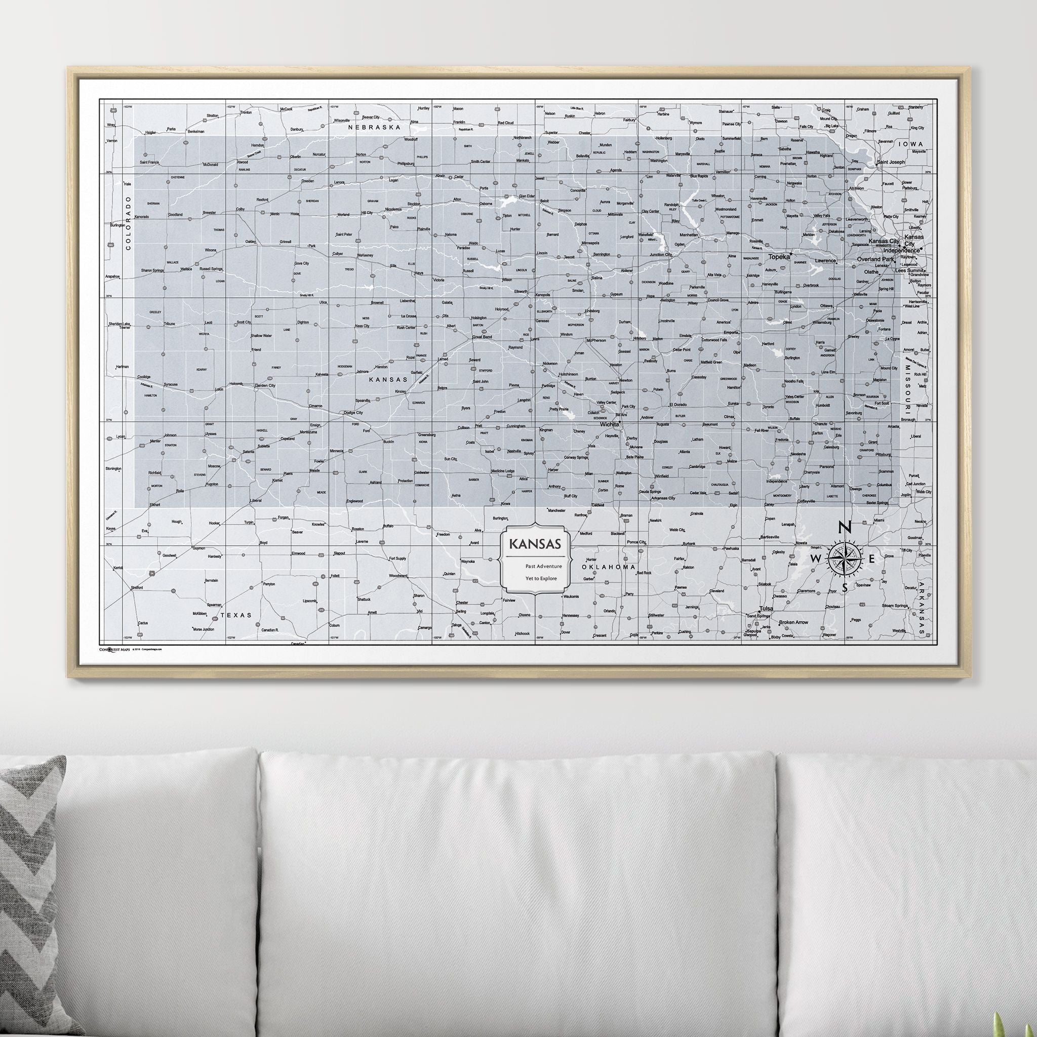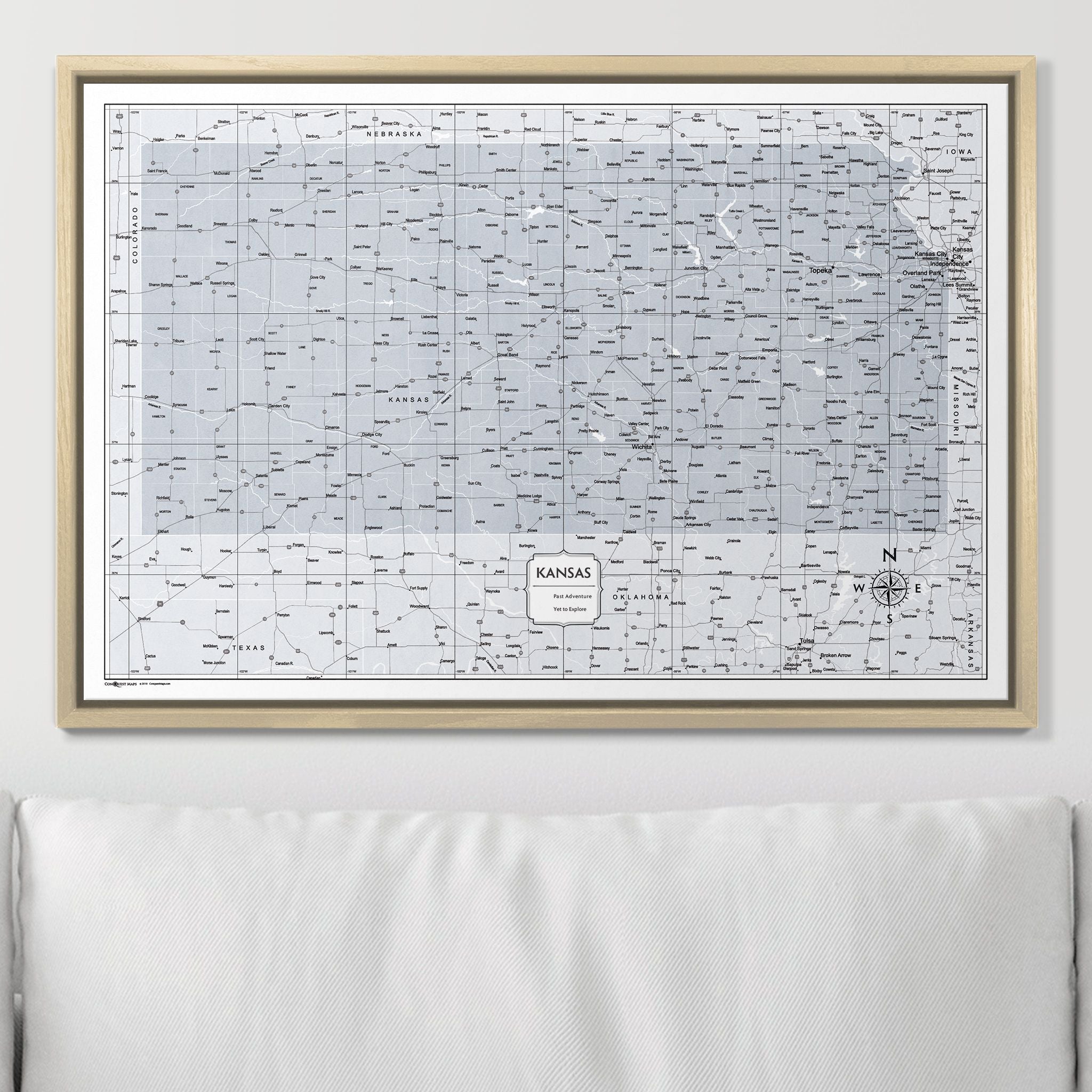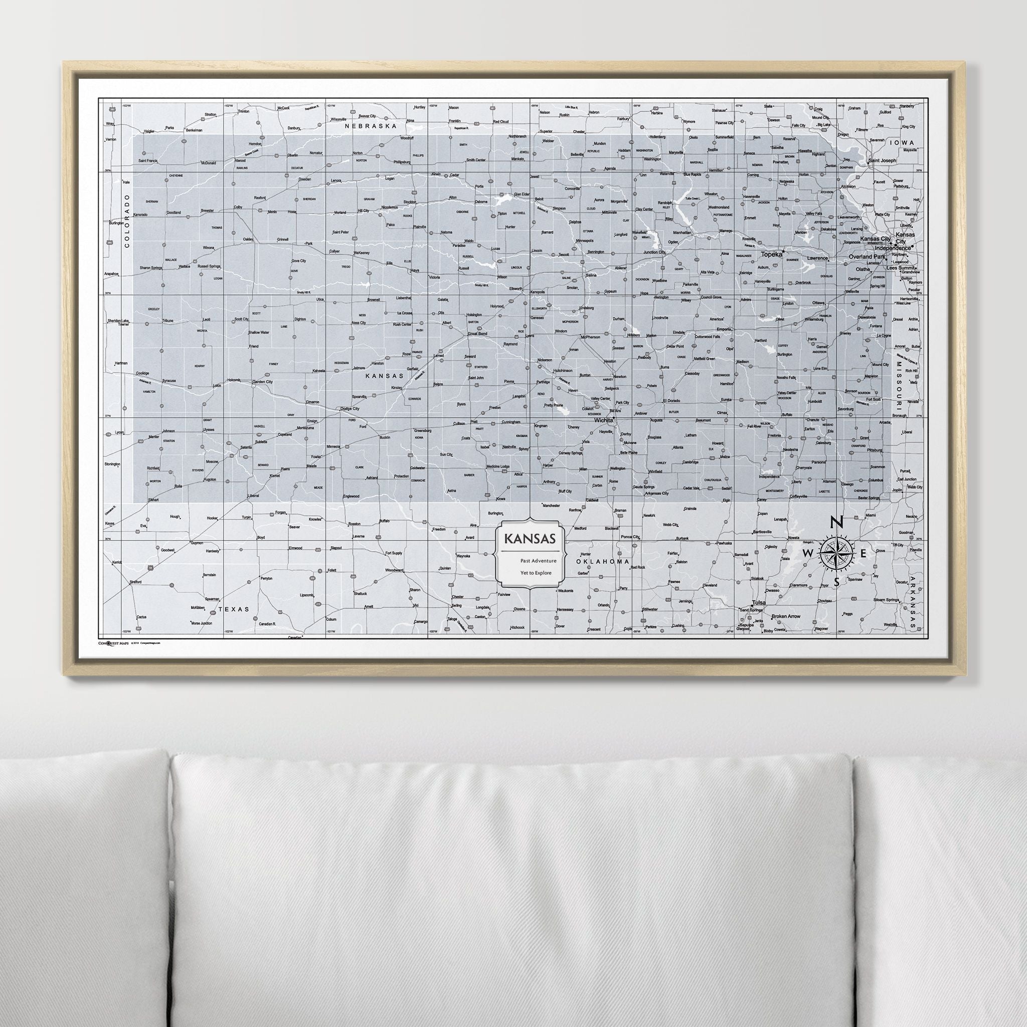 Push Pin Kansas Map (Pin Board) - Light Gray Color Splash