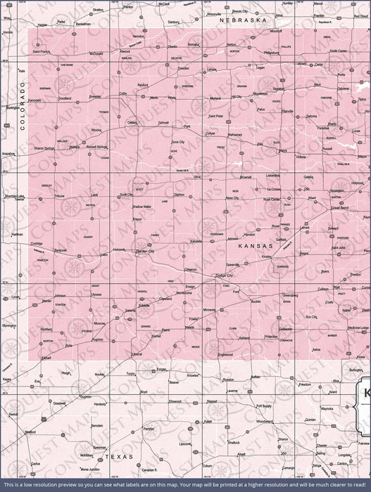 Push Pin Kansas Map (Pin Board) - Pink Color Splash
