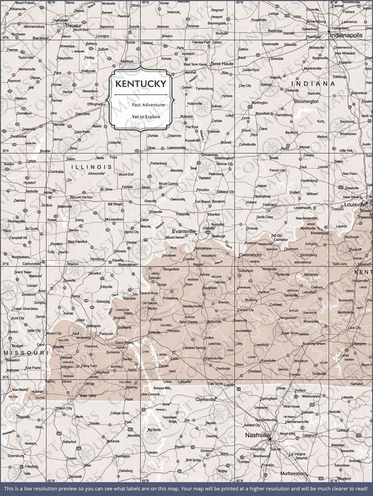 Push Pin Kentucky Map (Pin Board) - Light Brown Color Splash