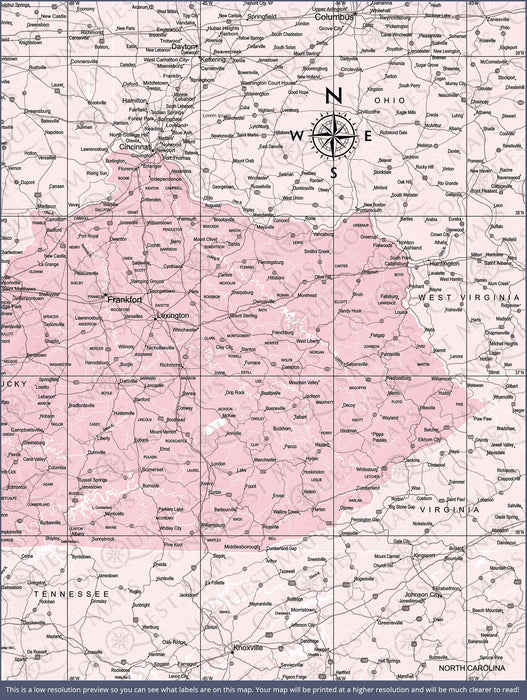 Push Pin Kentucky Map (Pin Board) - Pink Color Splash