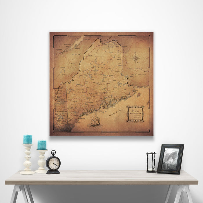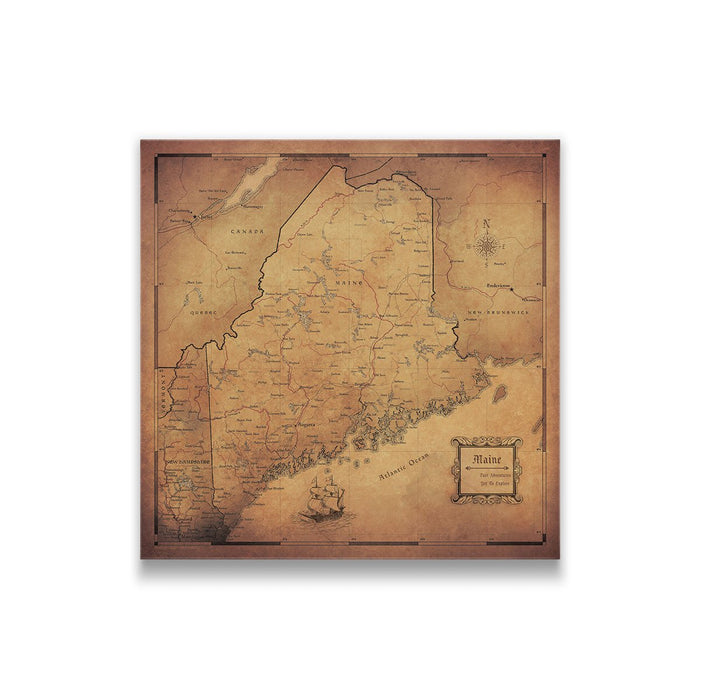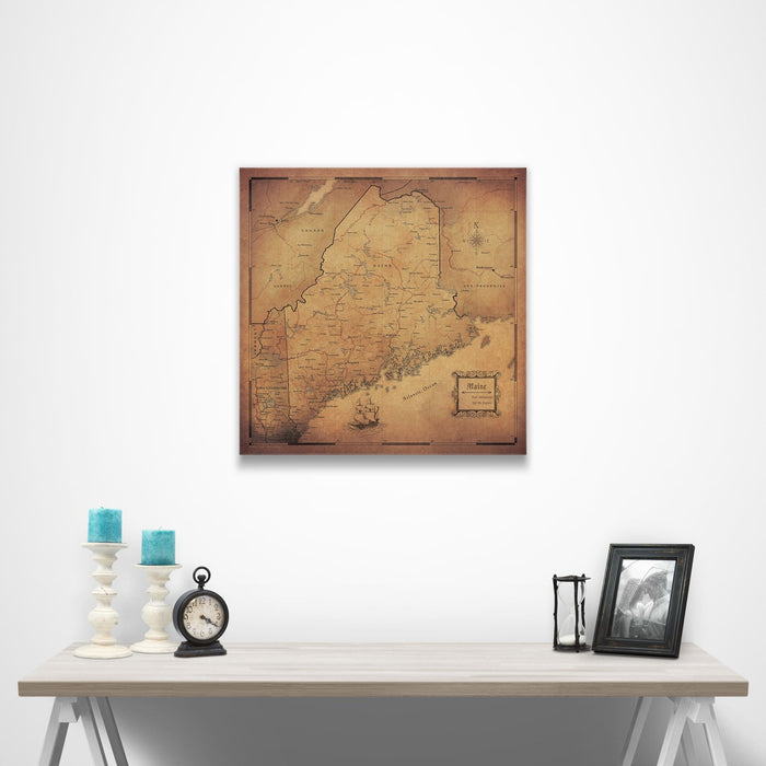 Push Pin Maine Map (Pin Board) - Golden Aged