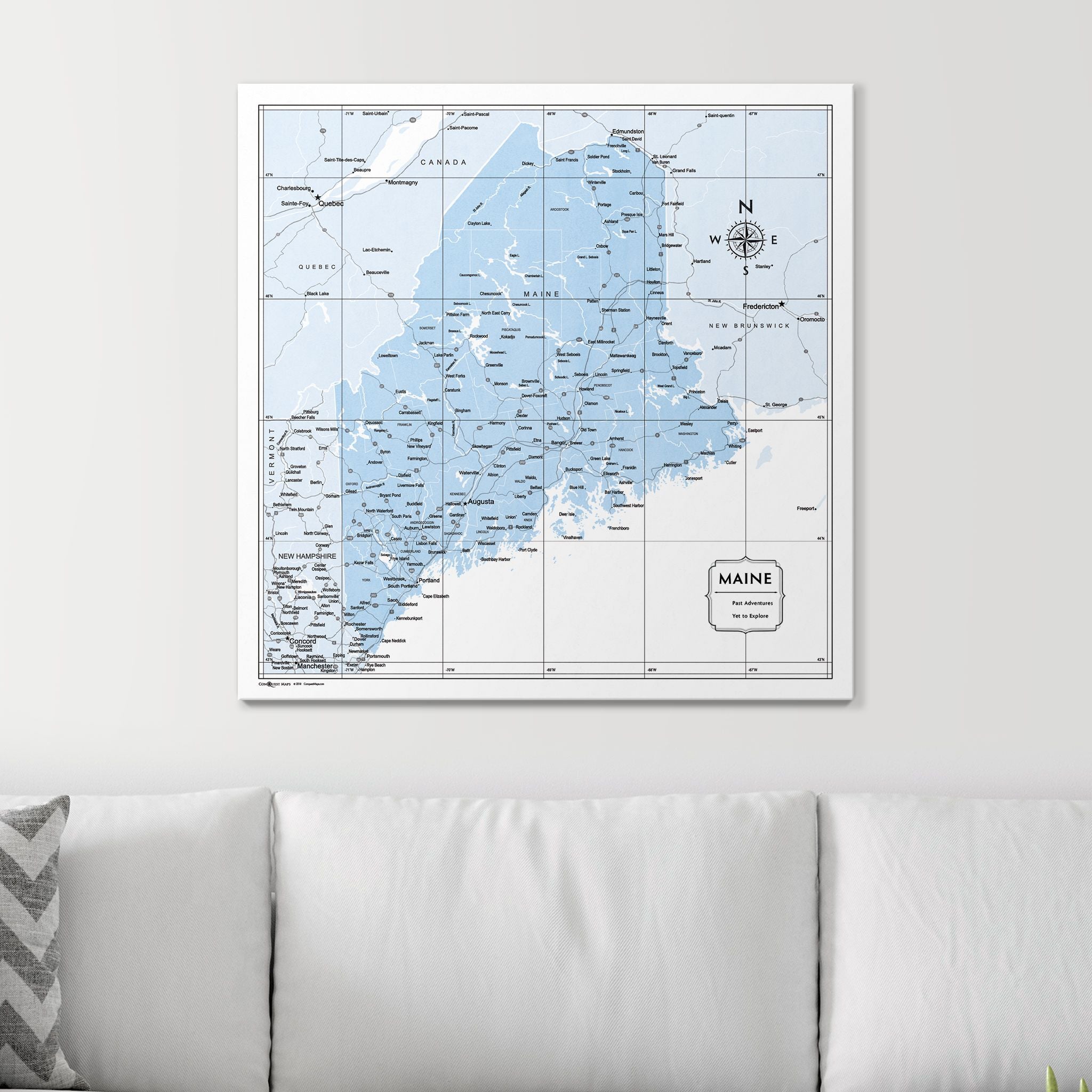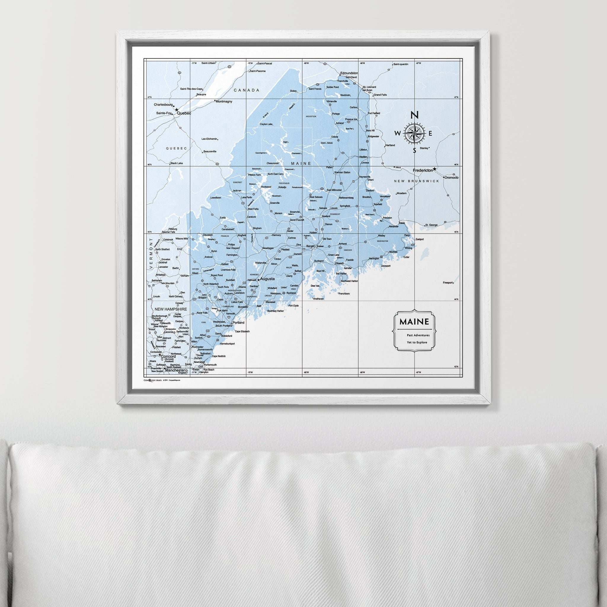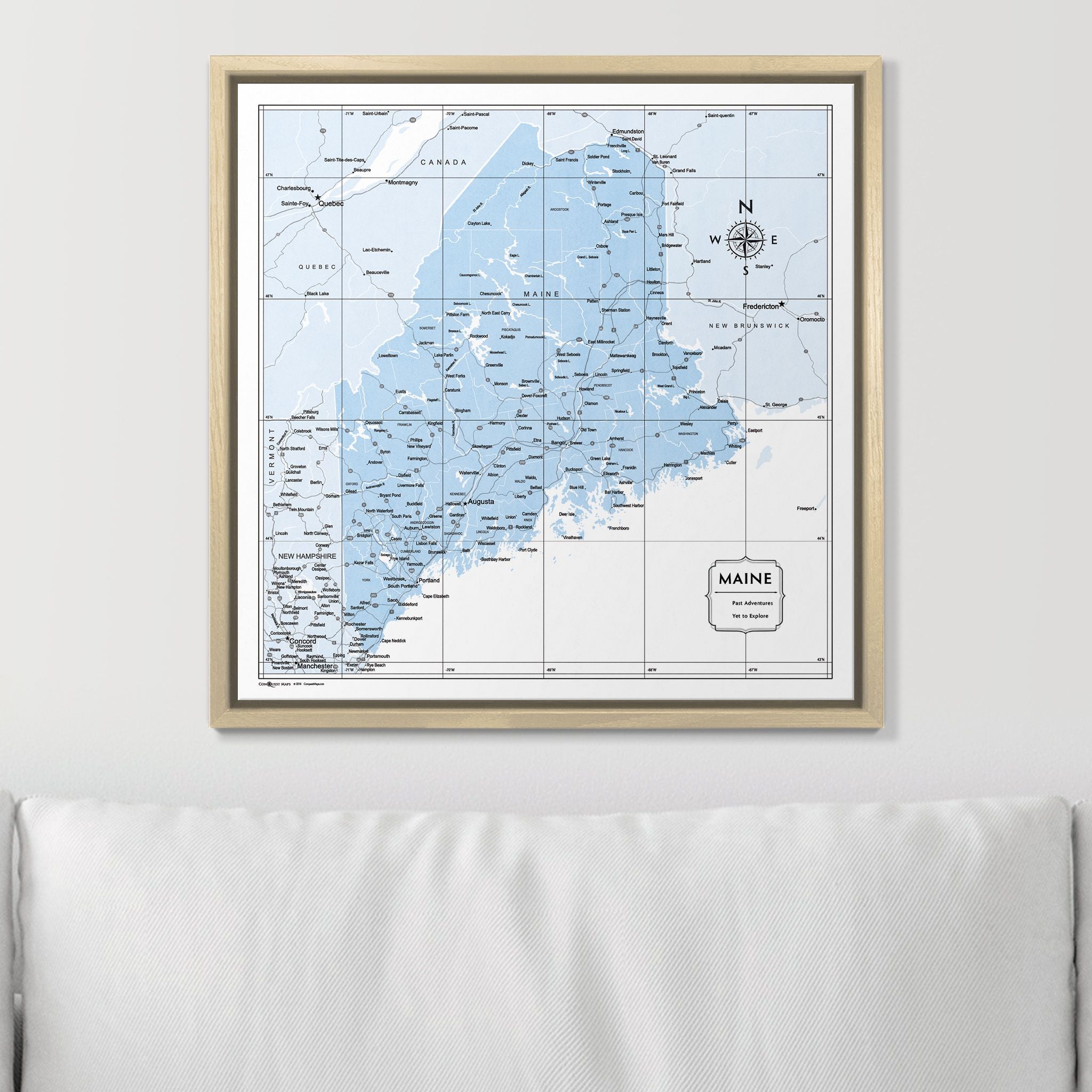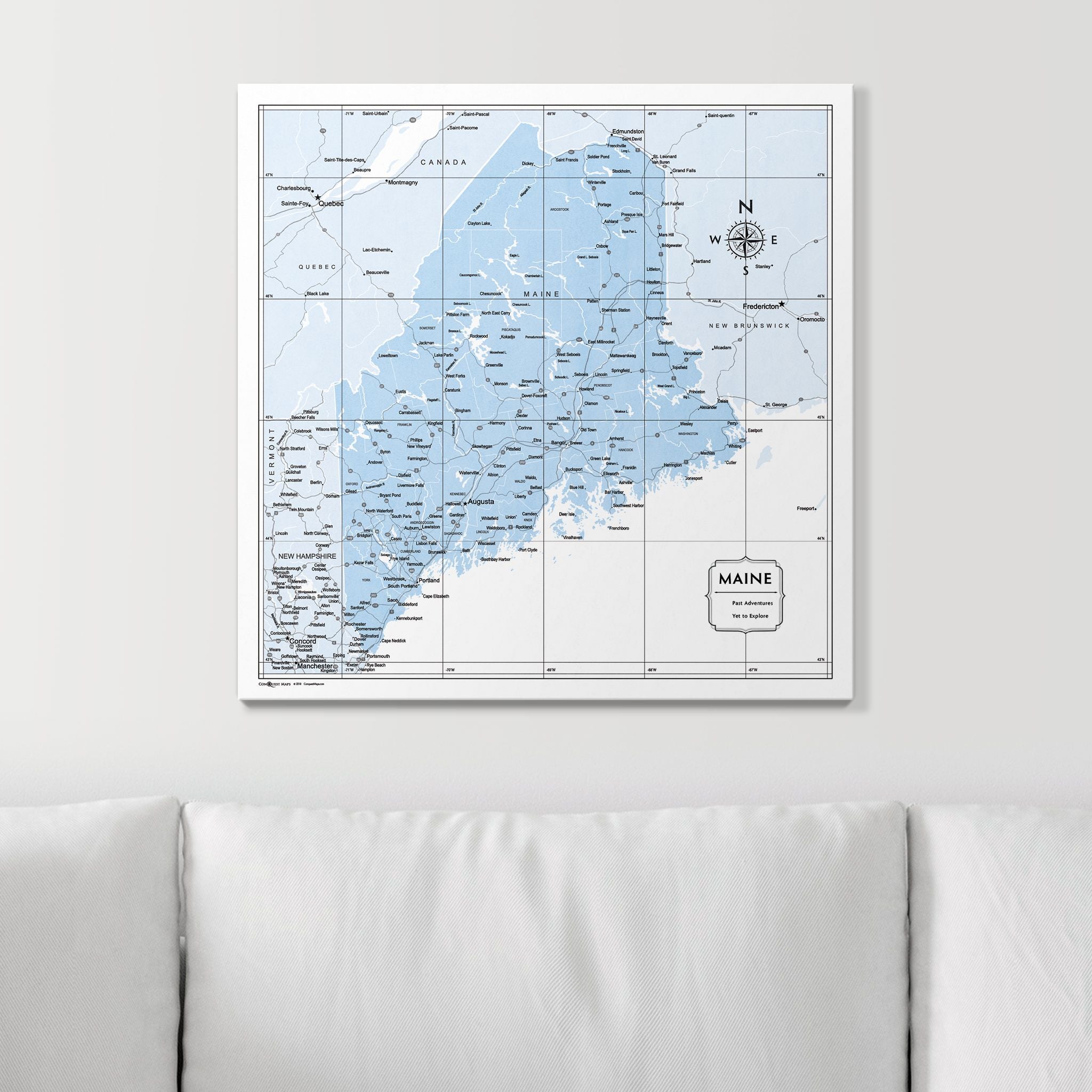 Push Pin Maine Map (Pin Board) - Light Blue Color Splash