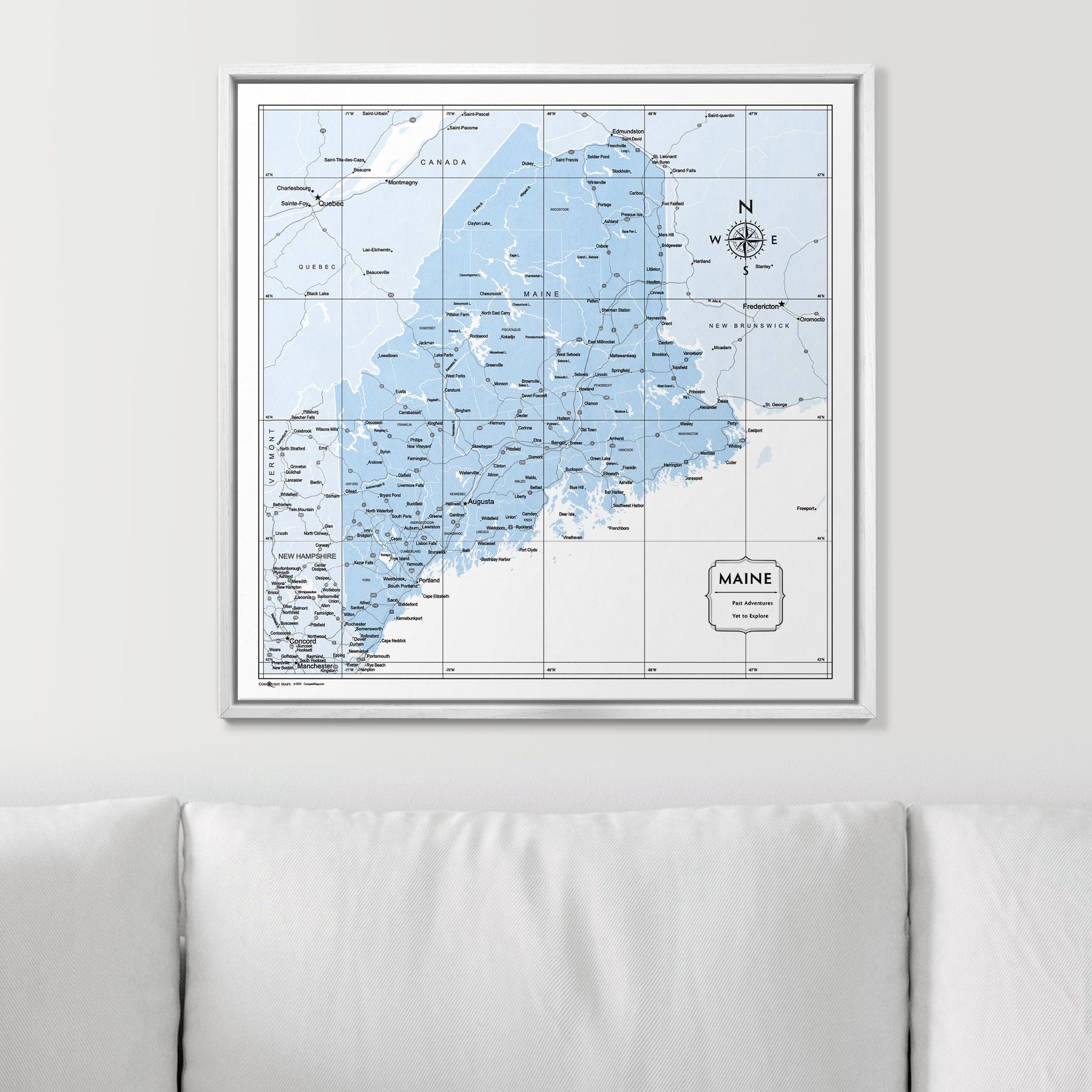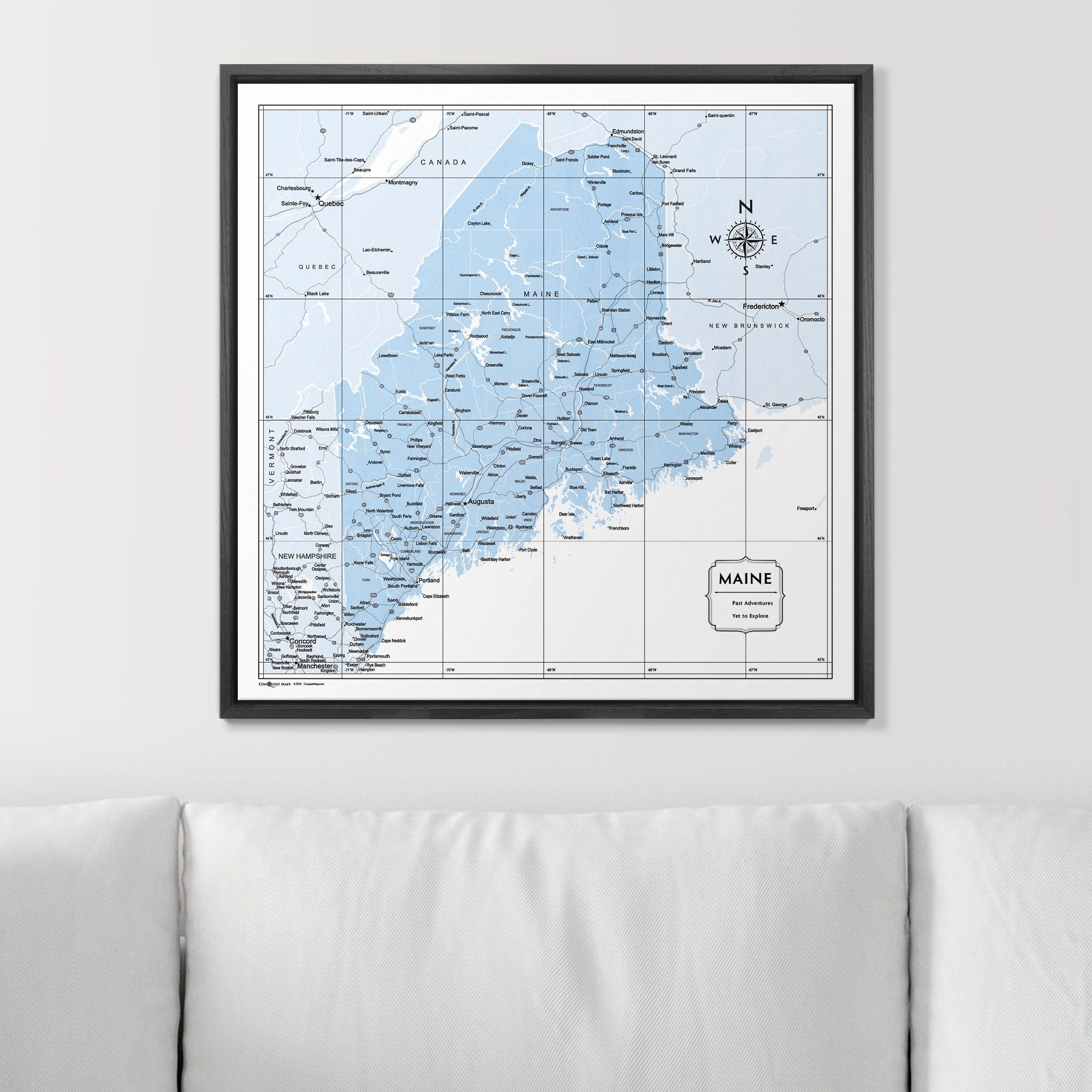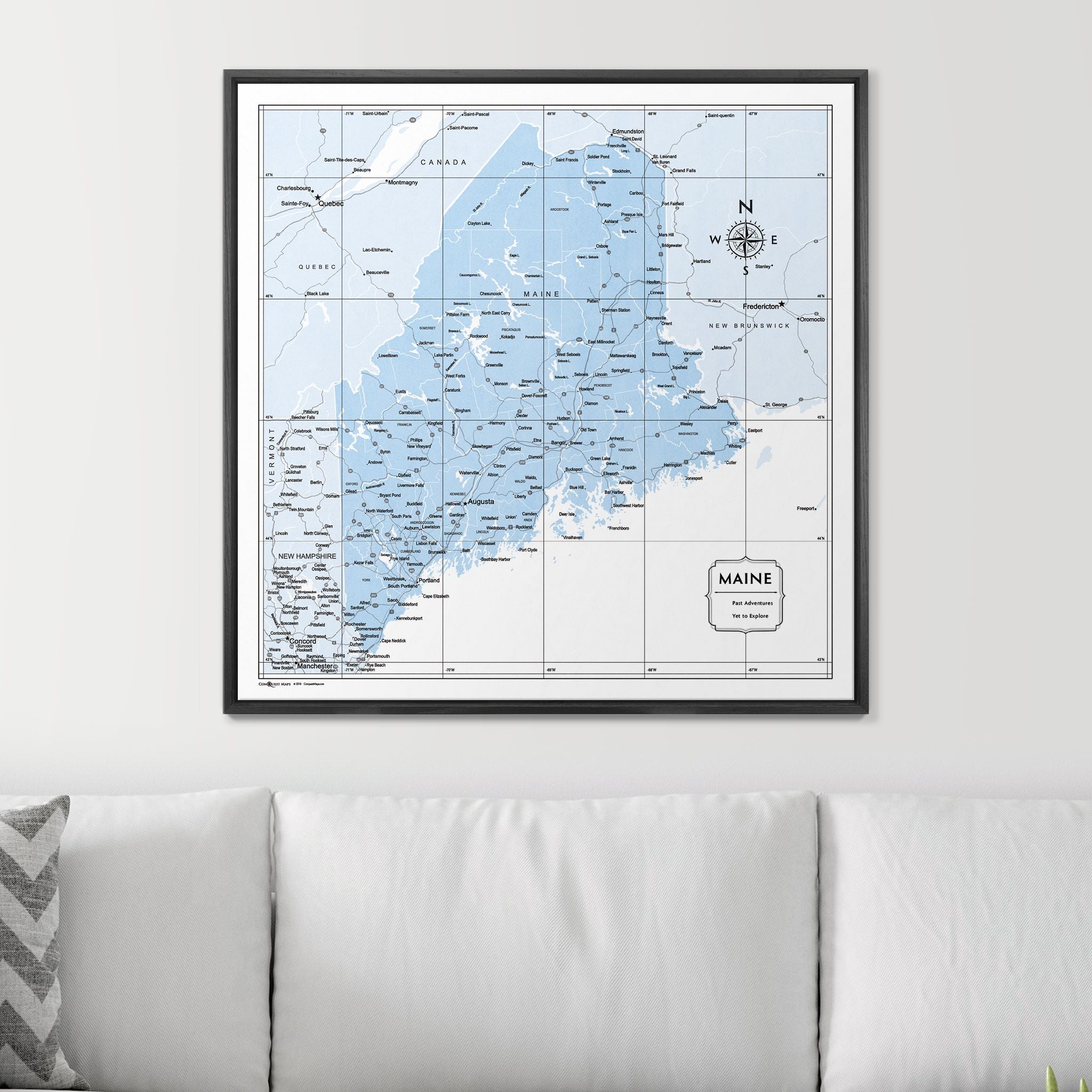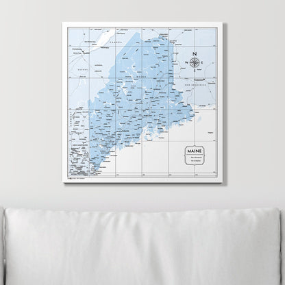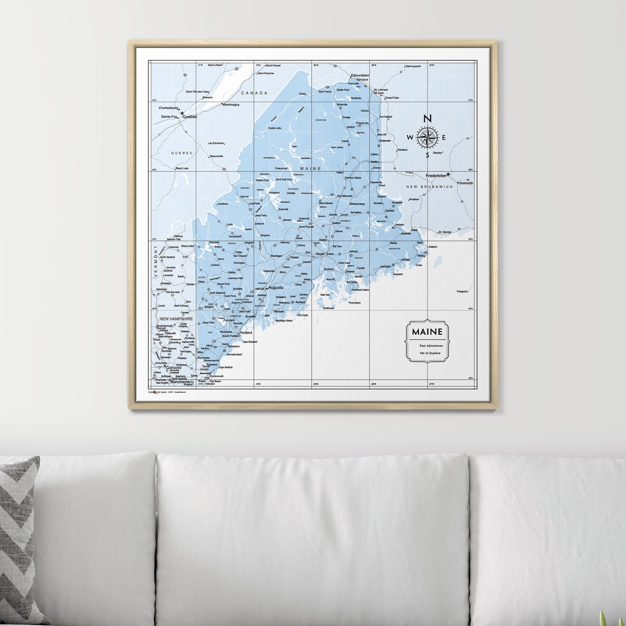 Push Pin Maine Map (Pin Board) - Light Blue Color Splash