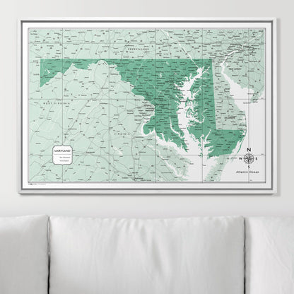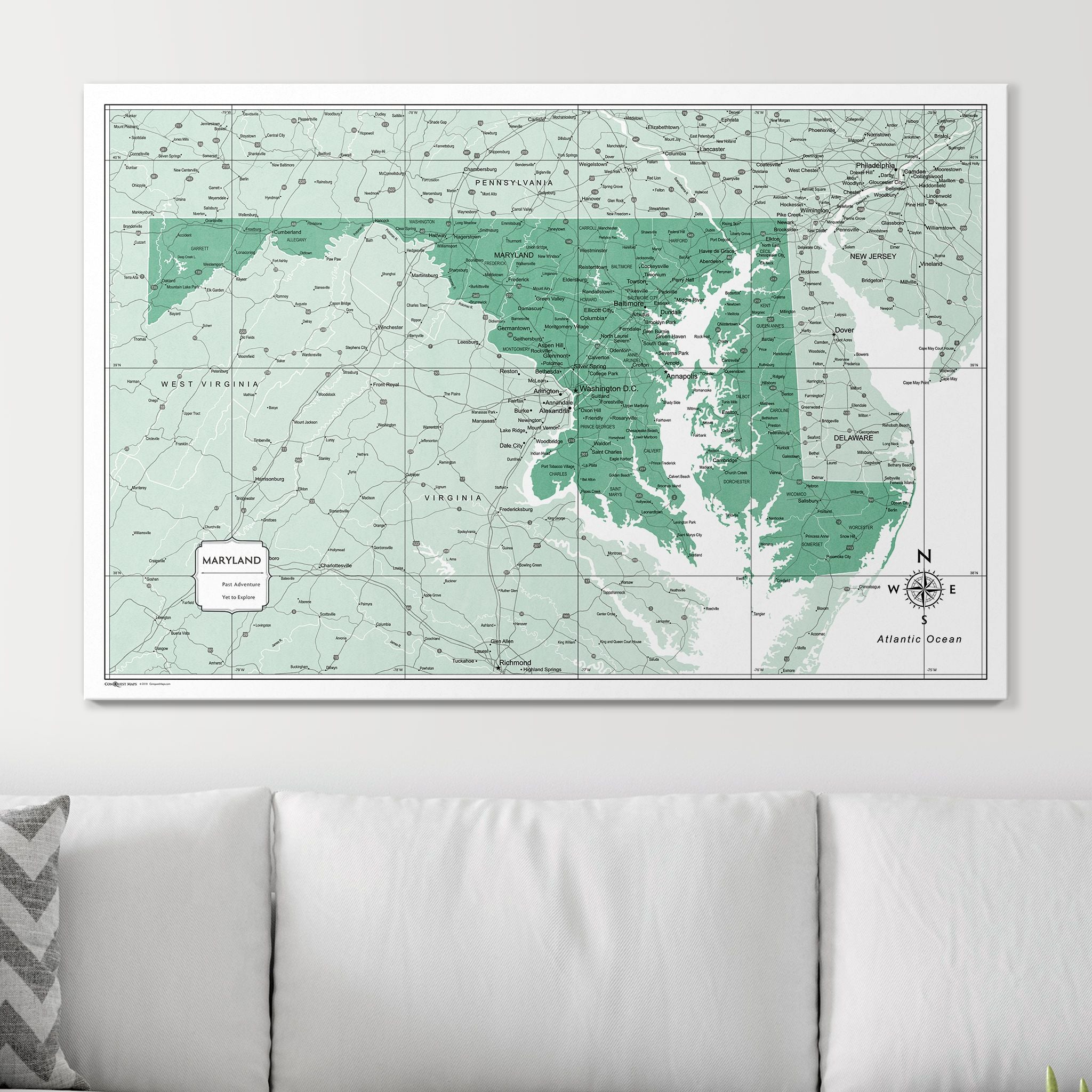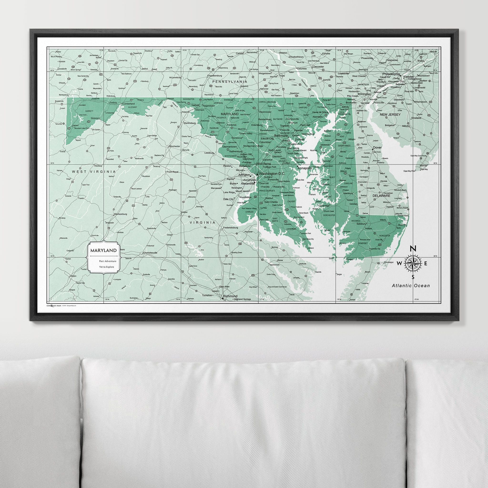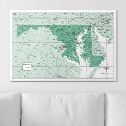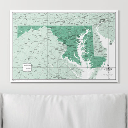 Push Pin Maryland Map (Pin Board) - Green Color Splash