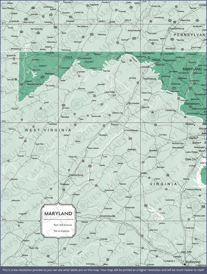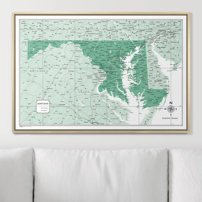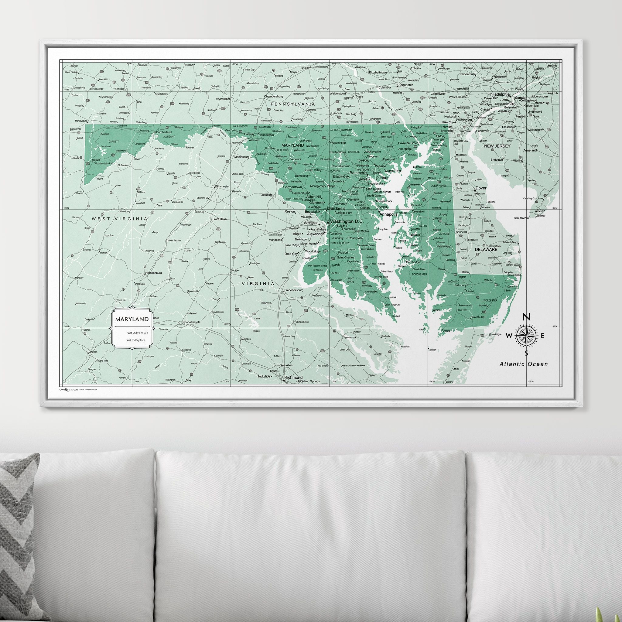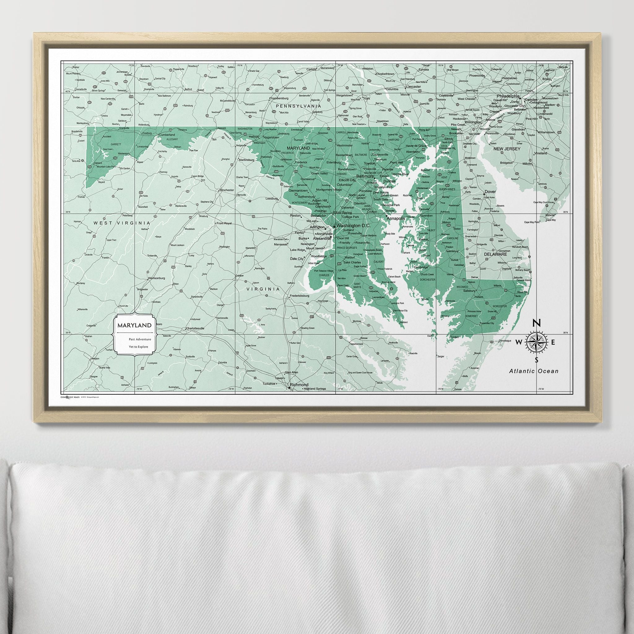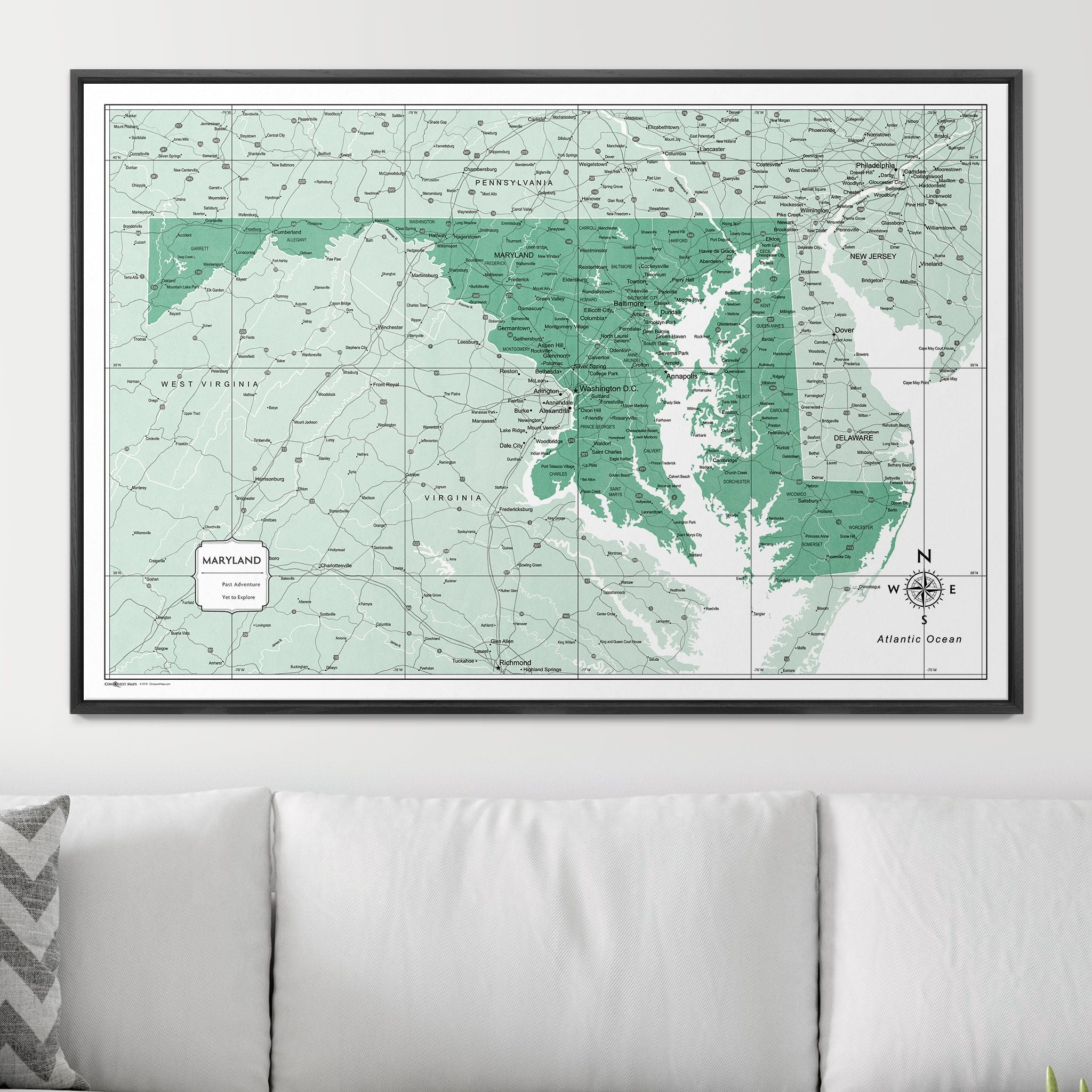 Push Pin Maryland Map (Pin Board) - Green Color Splash
