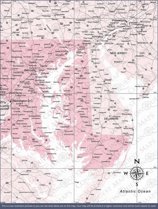 Push Pin Maryland Map (Pin Board) - Pink Color Splash