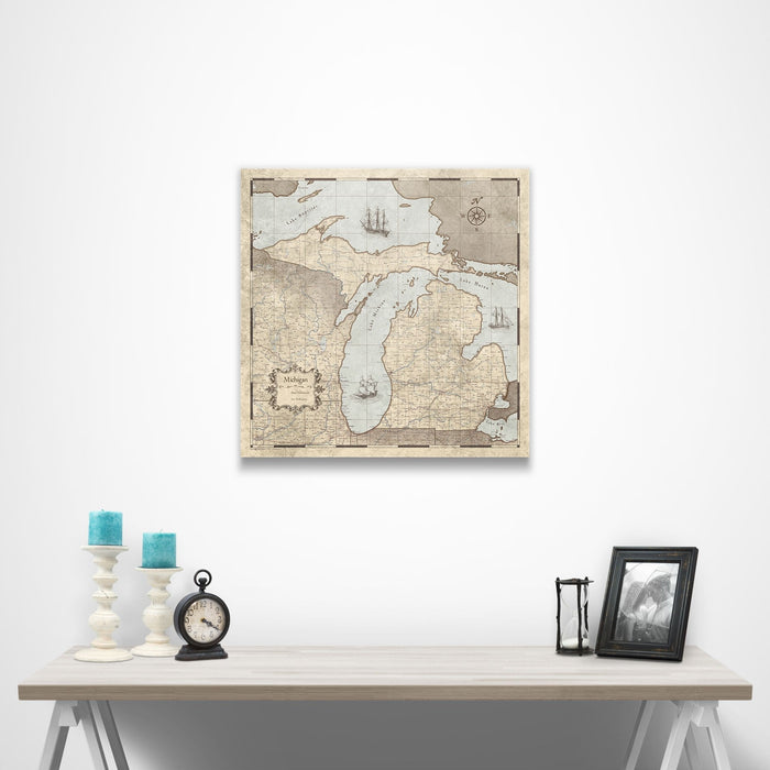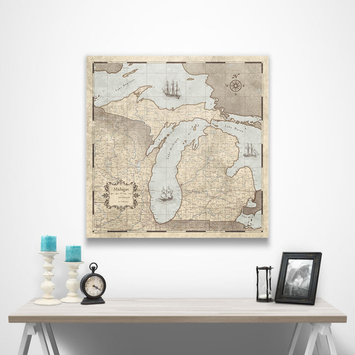 Push Pin Michigan Map (Pin Board) - Rustic Vintage