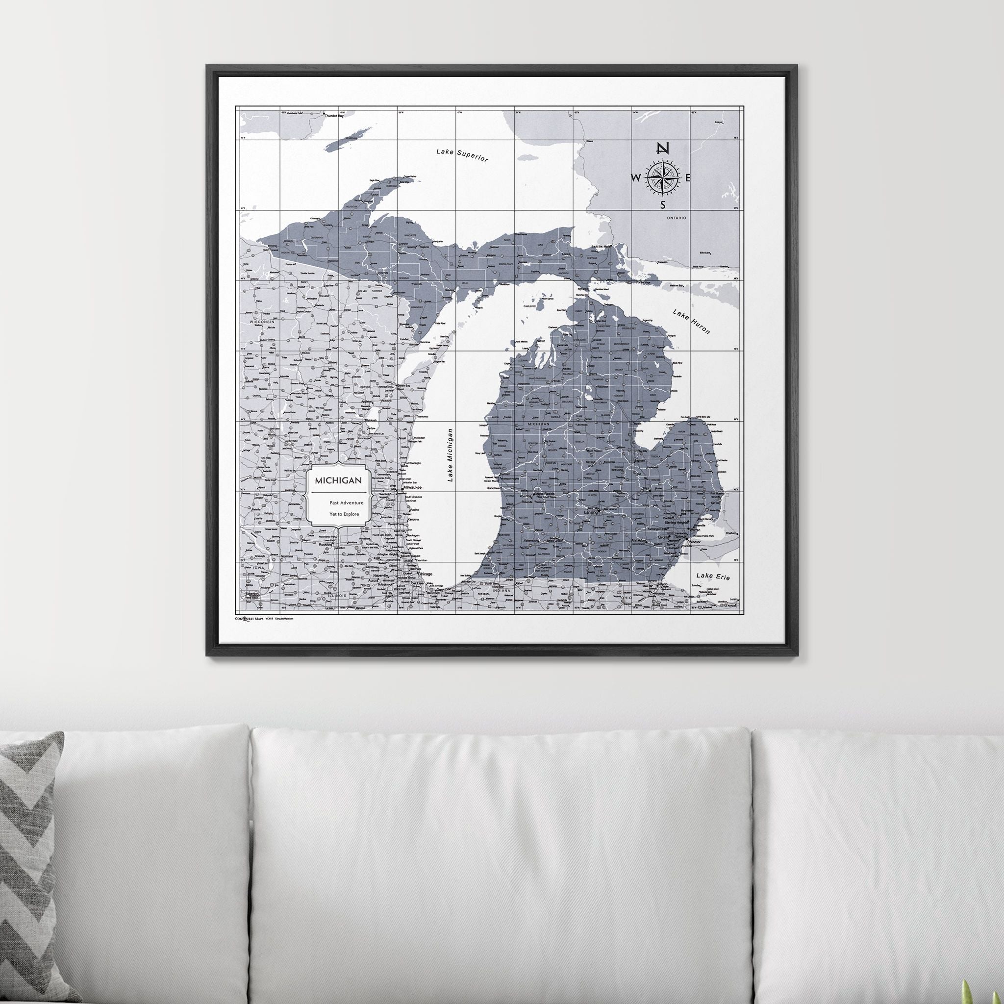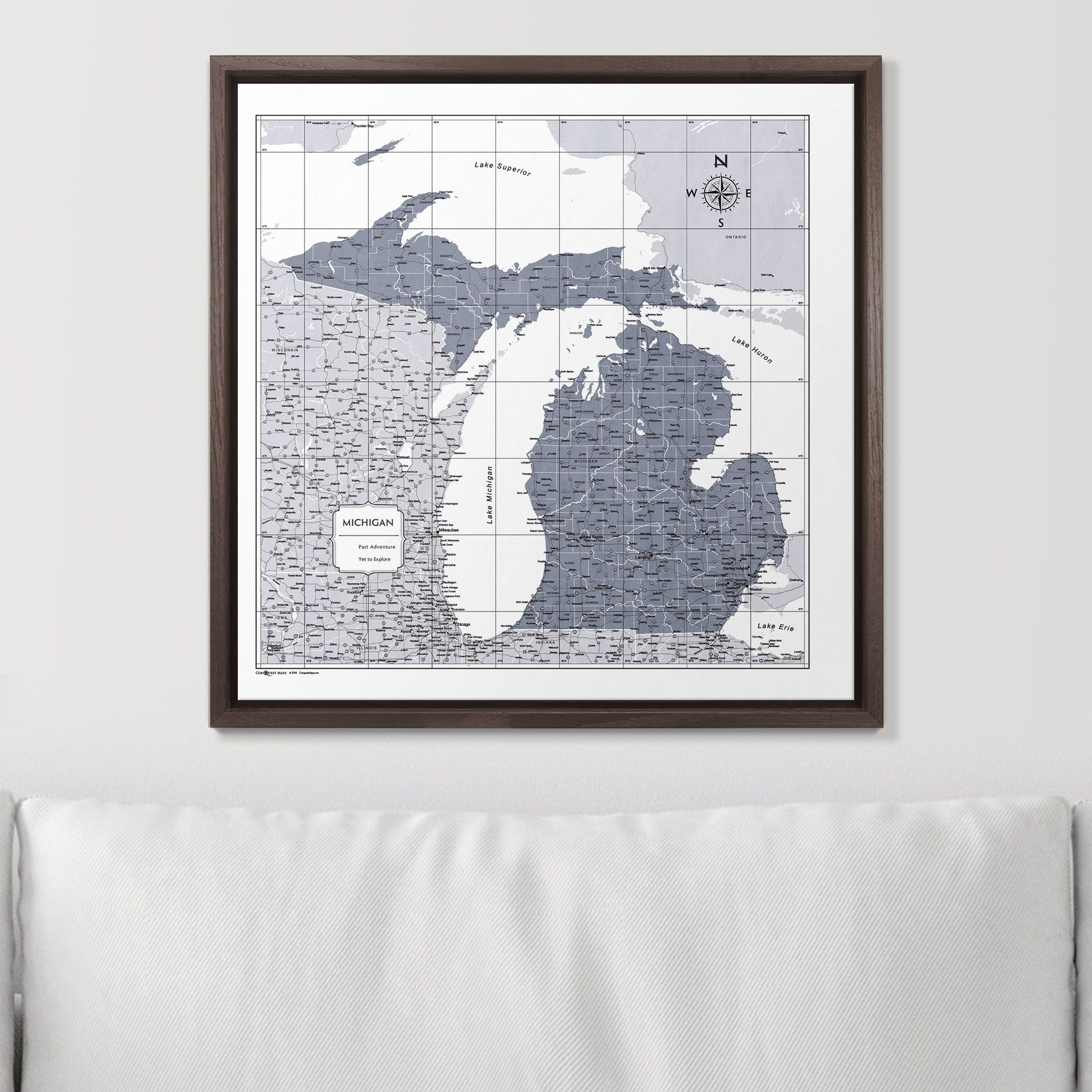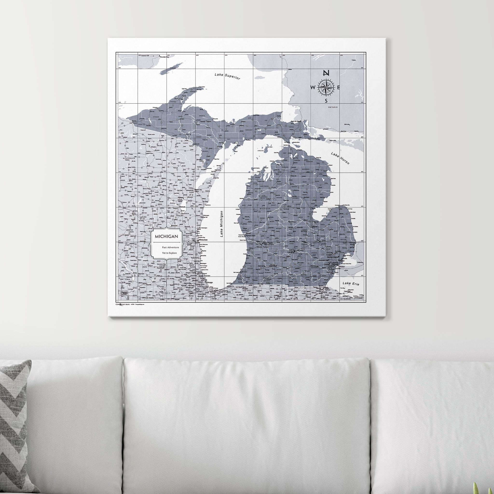 Push Pin Michigan Map (Pin Board) - Dark Gray Color Splash