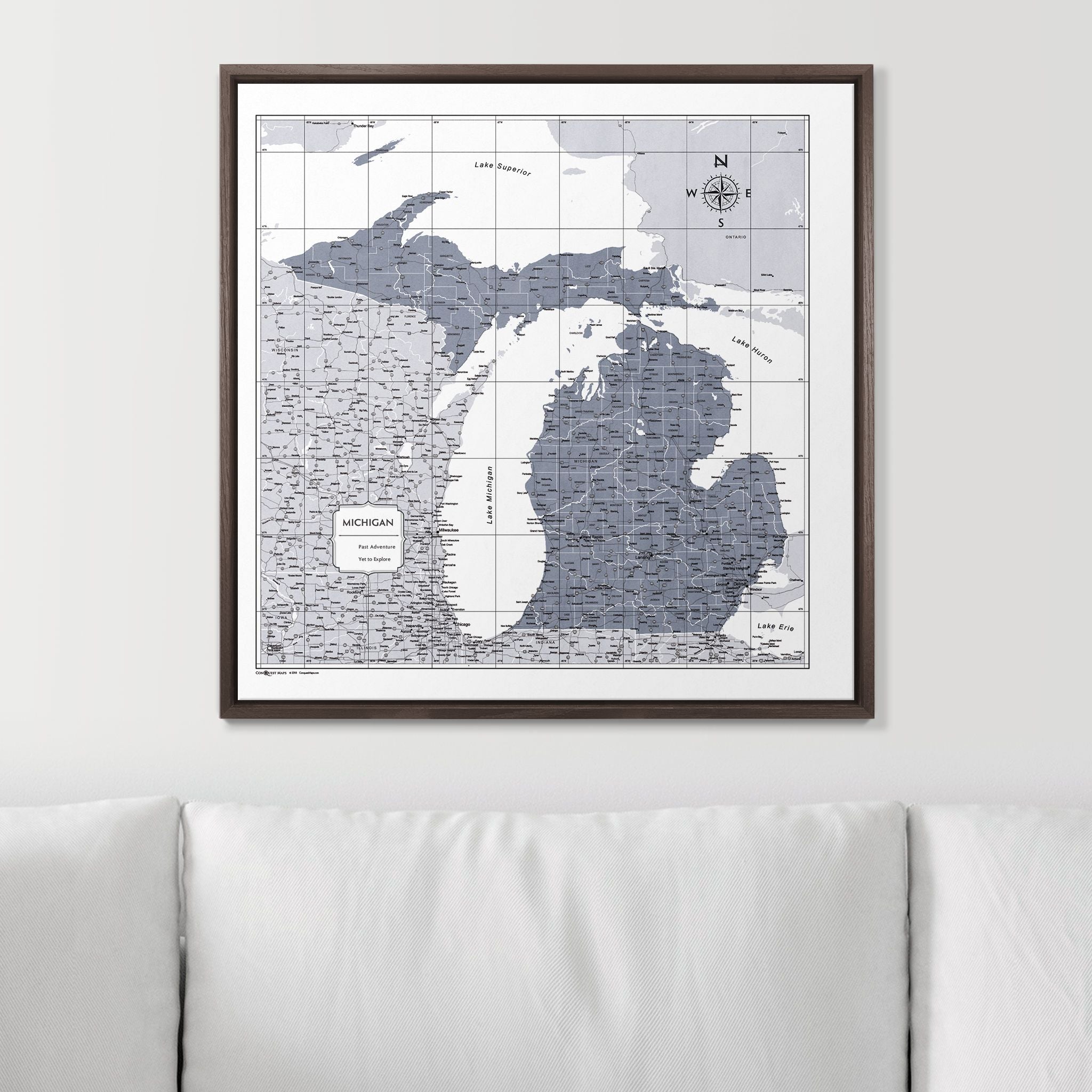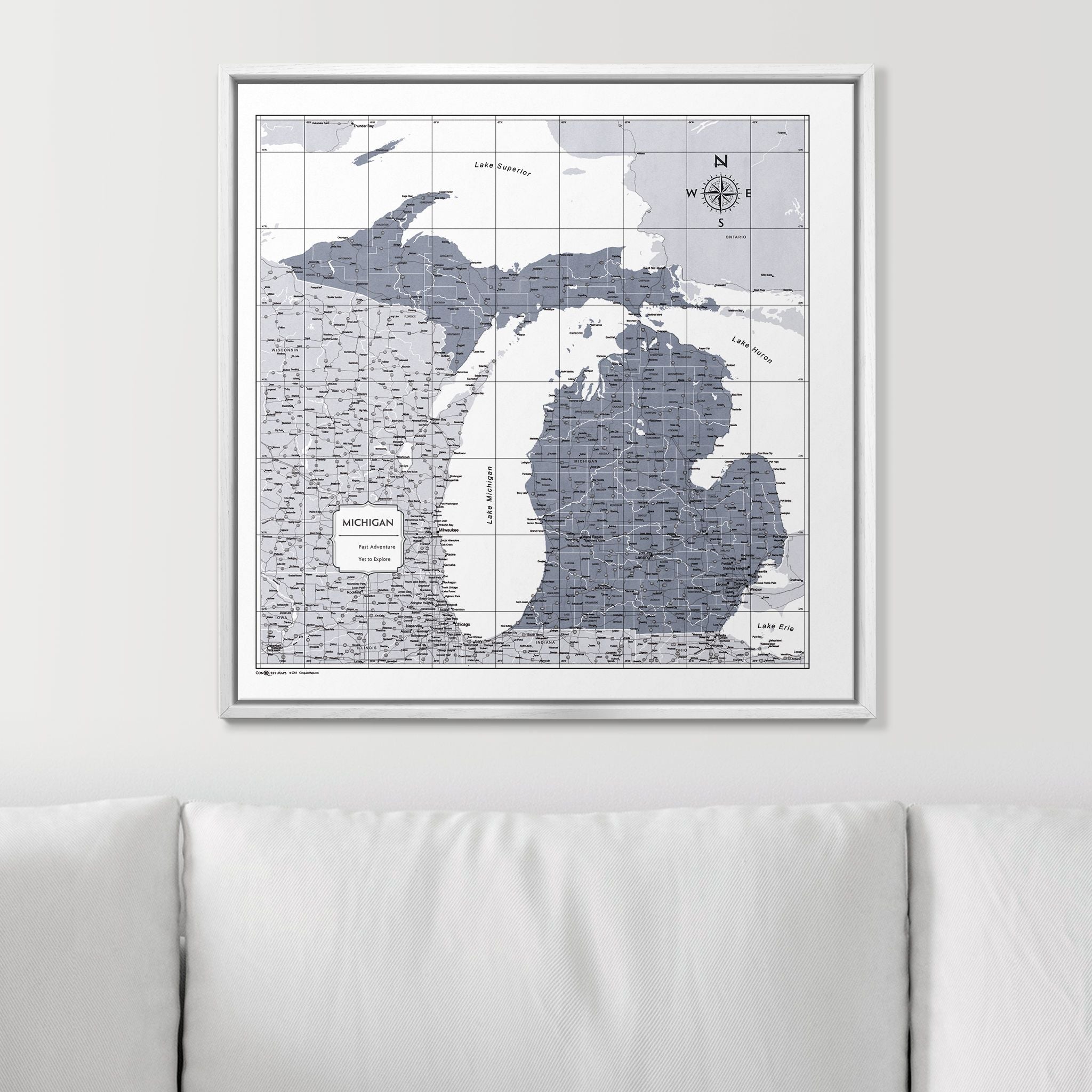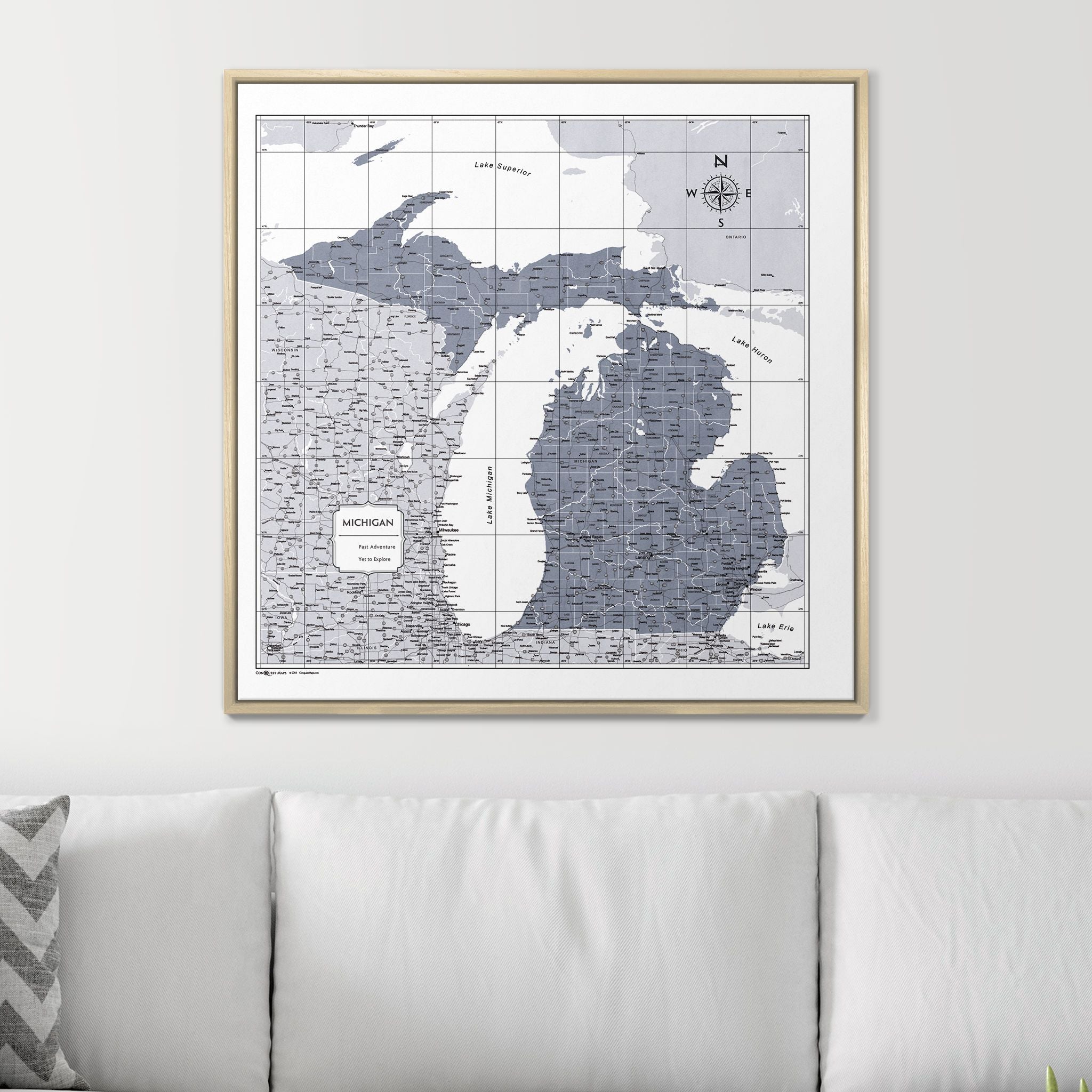 Push Pin Michigan Map (Pin Board) - Dark Gray Color Splash