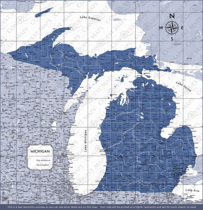Push Pin Michigan Map (Pin Board) - Navy Color Splash