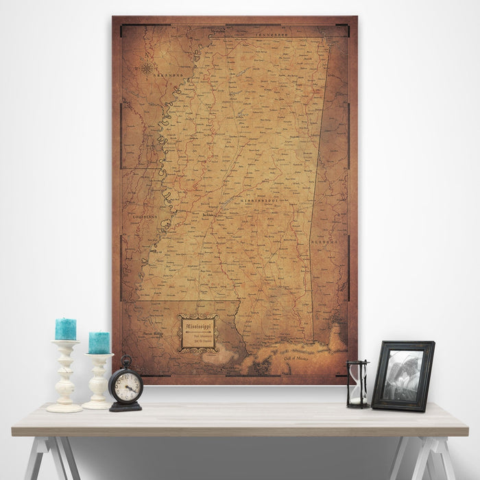 Push Pin Mississippi Map (Pin Board) - Golden Aged