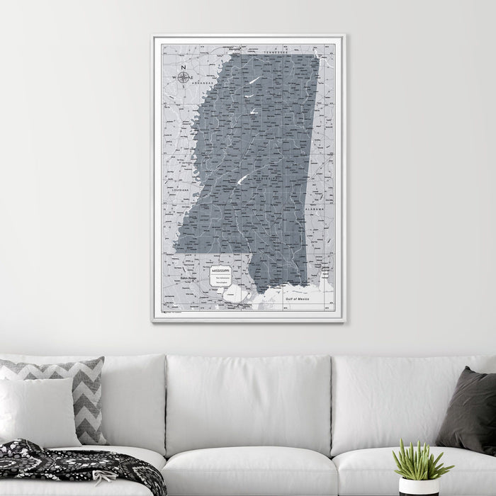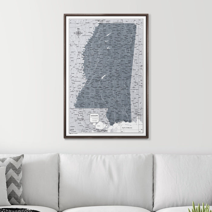 Push Pin Mississippi Map (Pin Board) - Dark Gray Color Splash