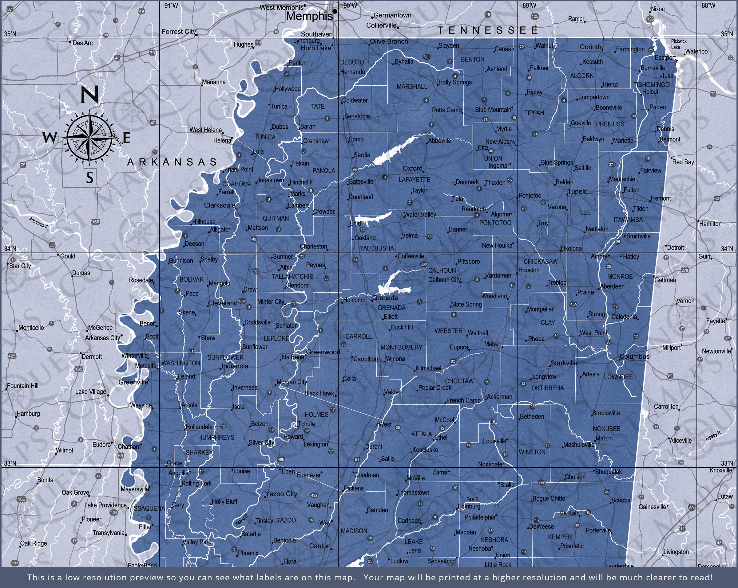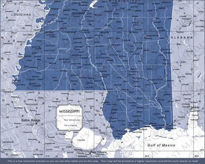 Push Pin Mississippi Map (Pin Board) - Navy Color Splash