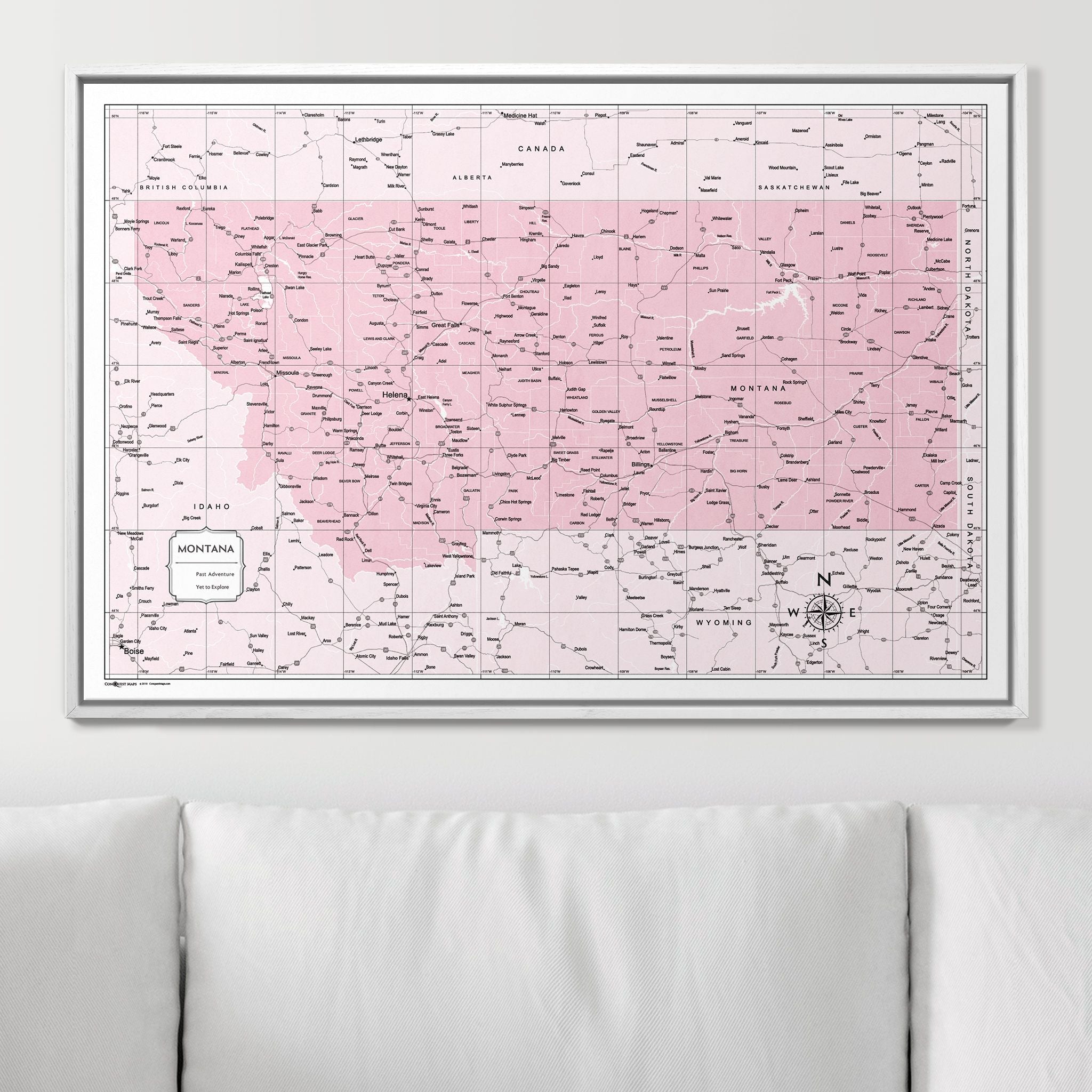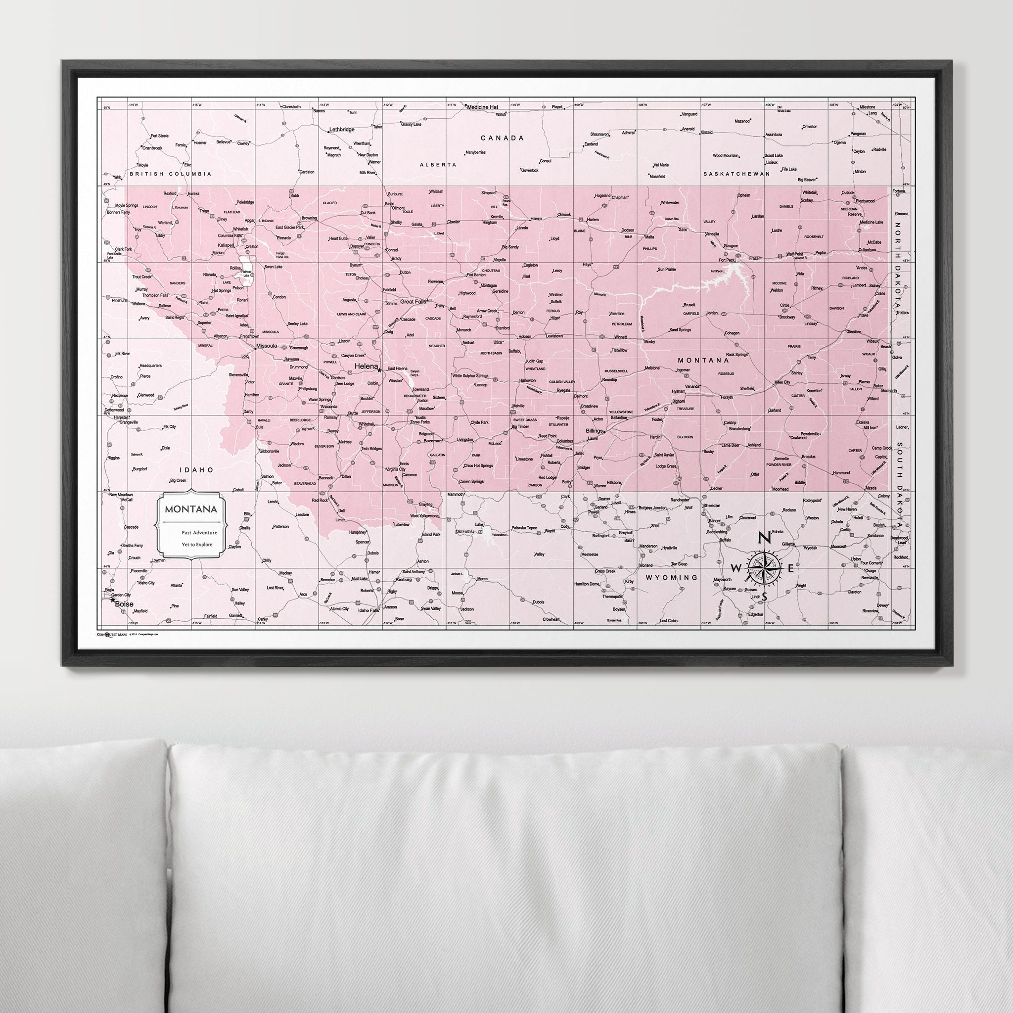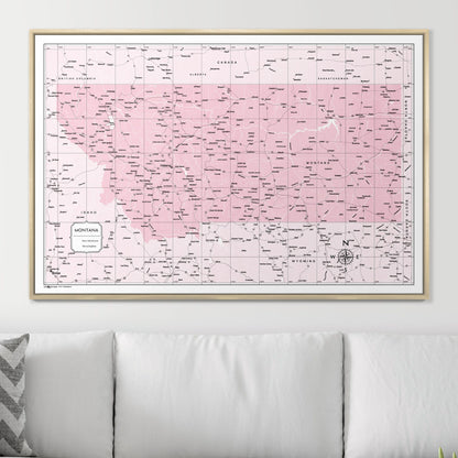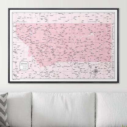 Push Pin Montana Map (Pin Board) - Pink Color Splash