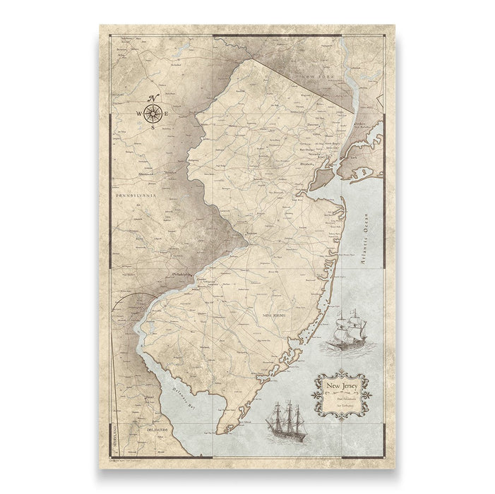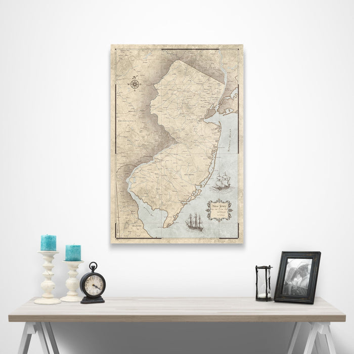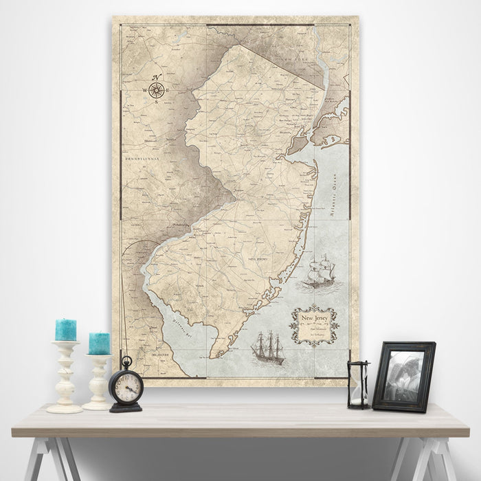 Push Pin New Jersey Map (Pin Board) - Rustic Vintage