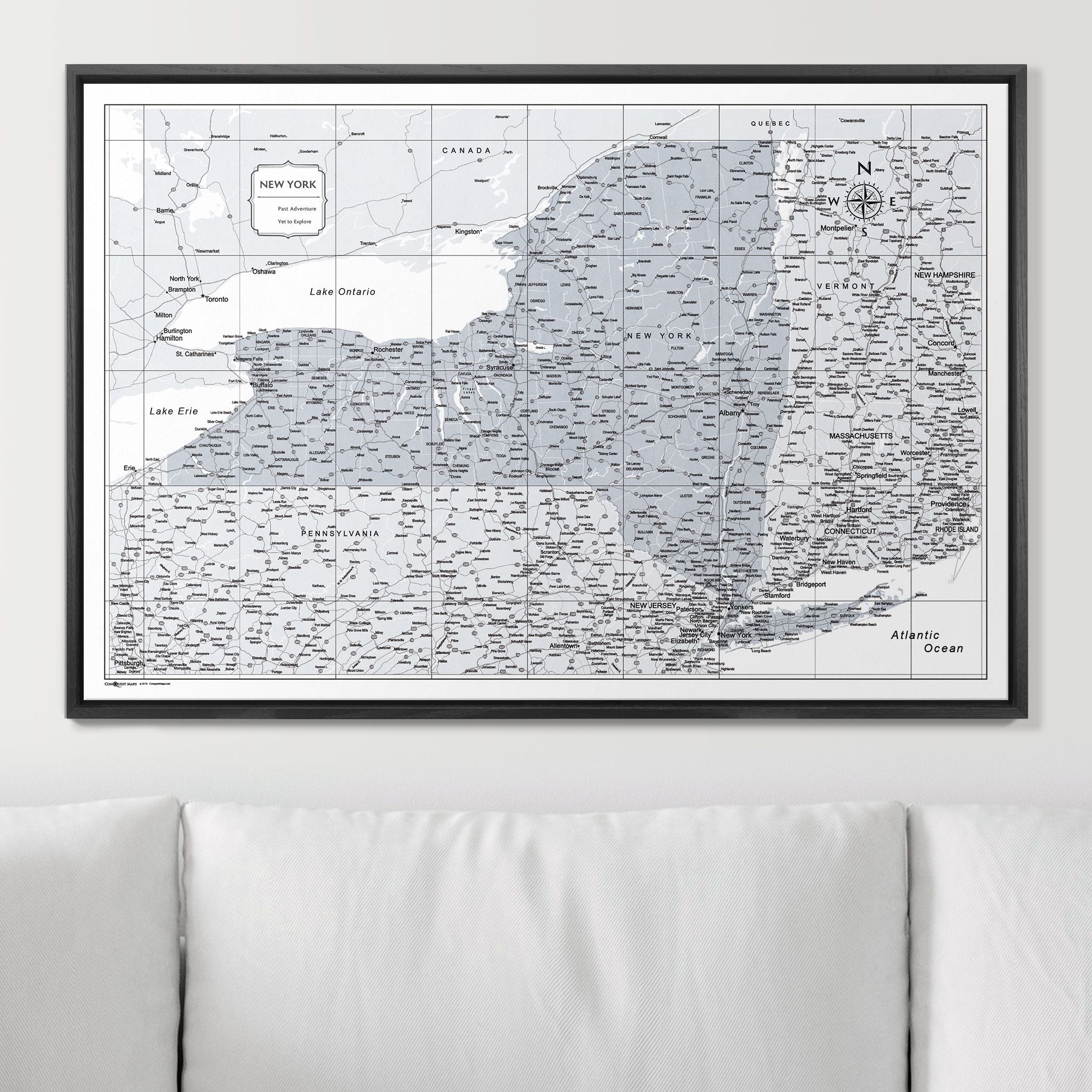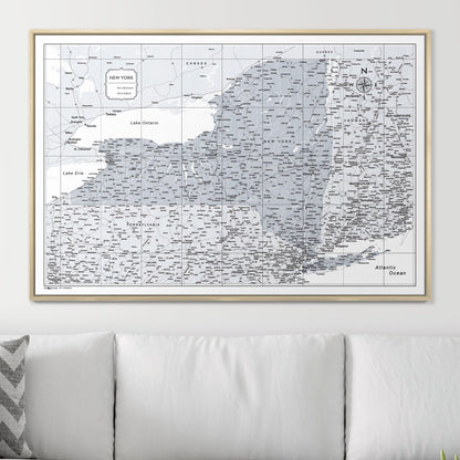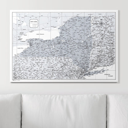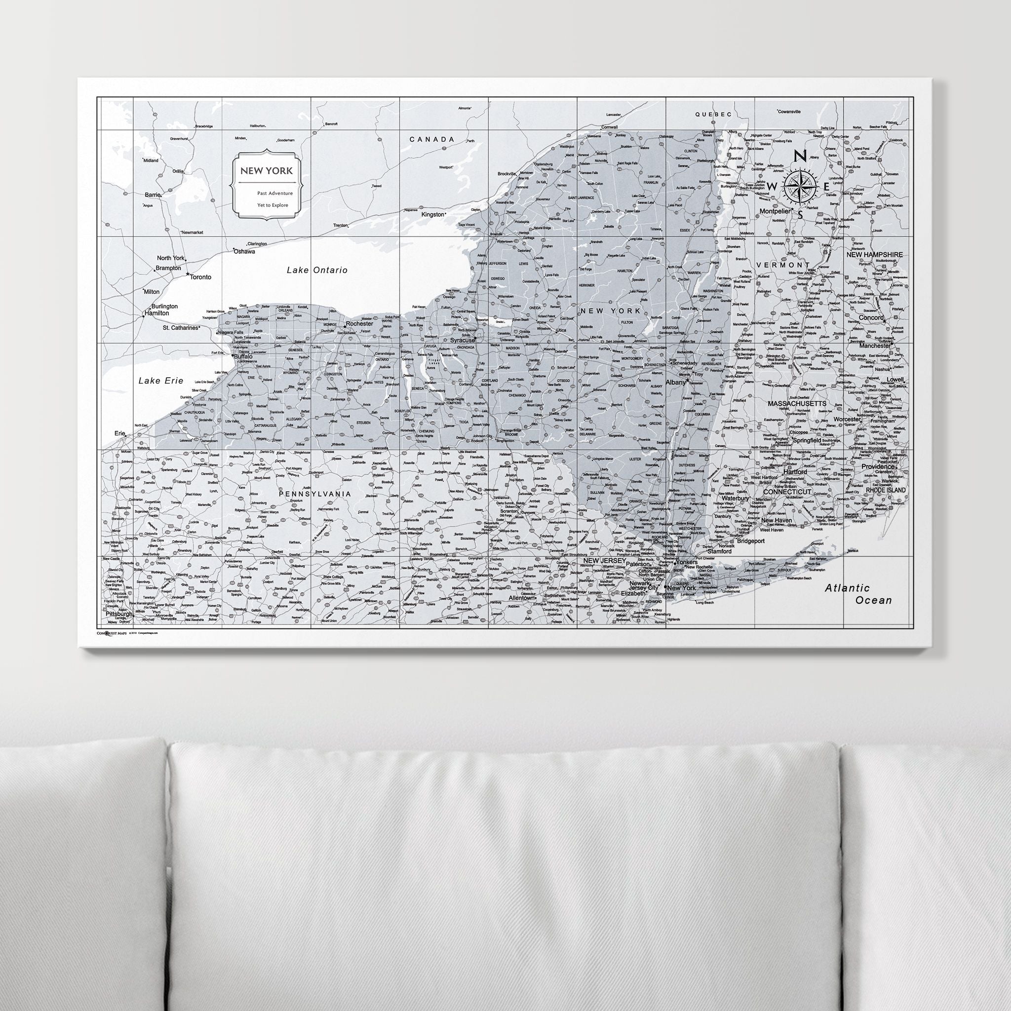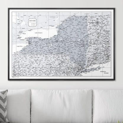 Push Pin New York Map (Pin Board) - Light Gray Color Splash