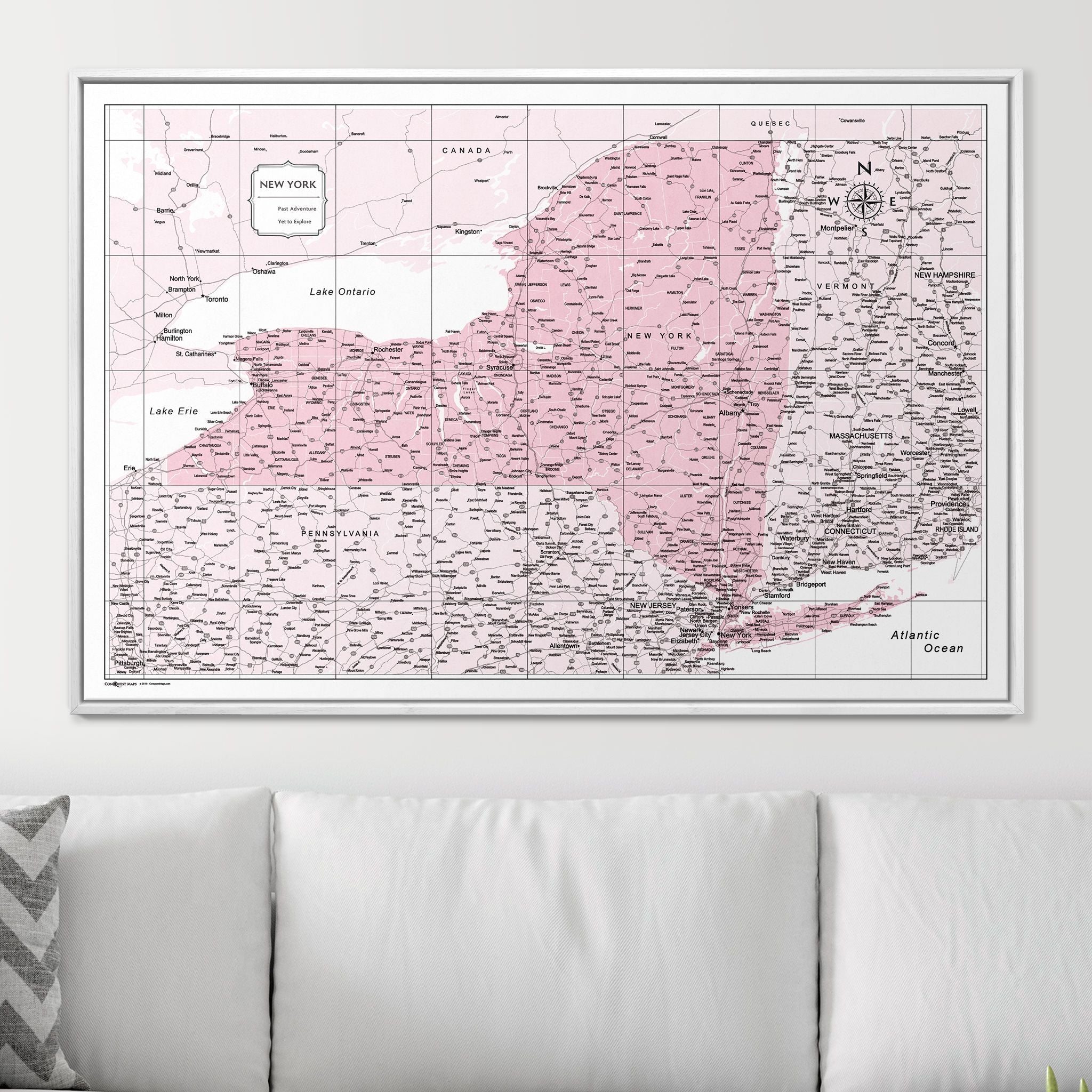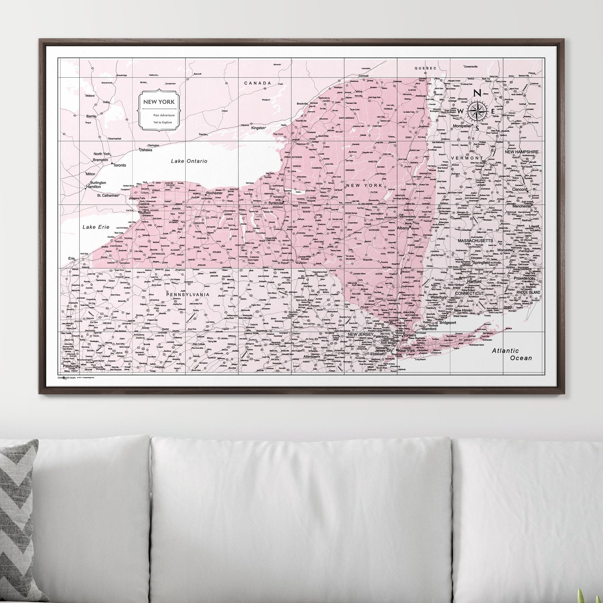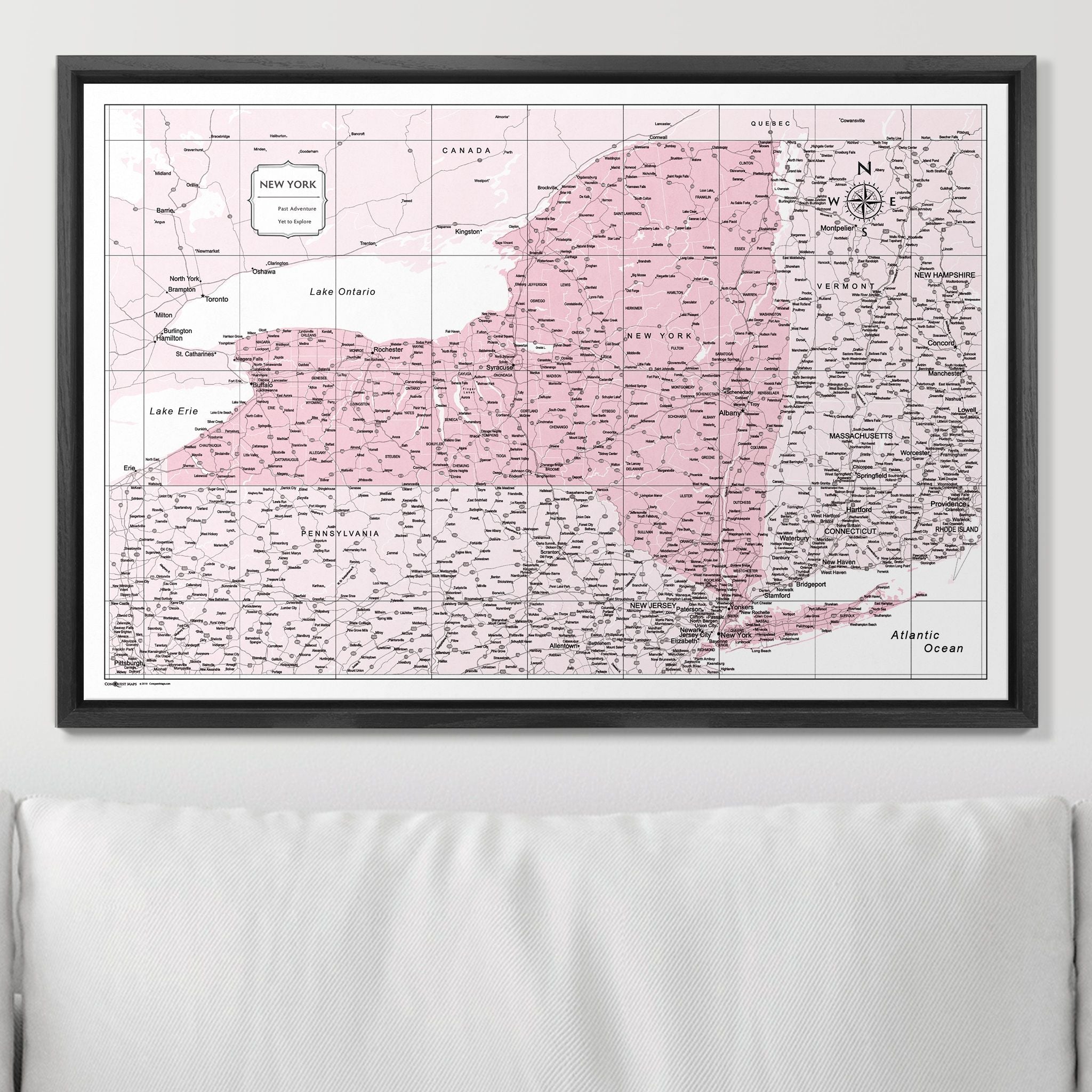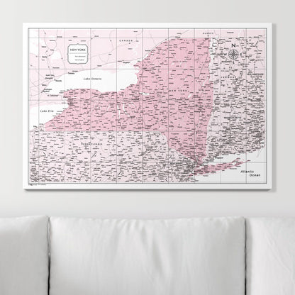 Push Pin New York Map (Pin Board) - Pink Color Splash